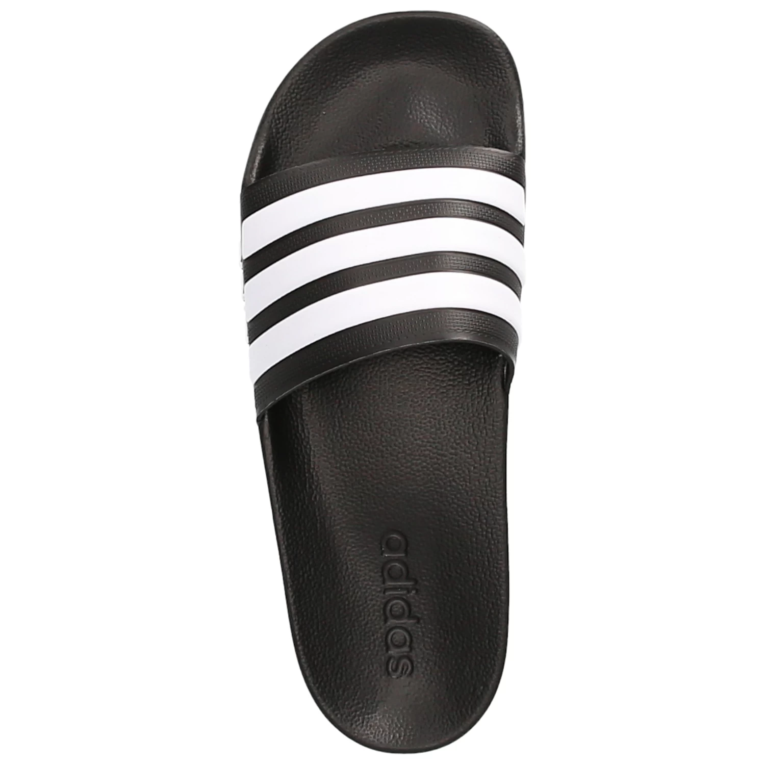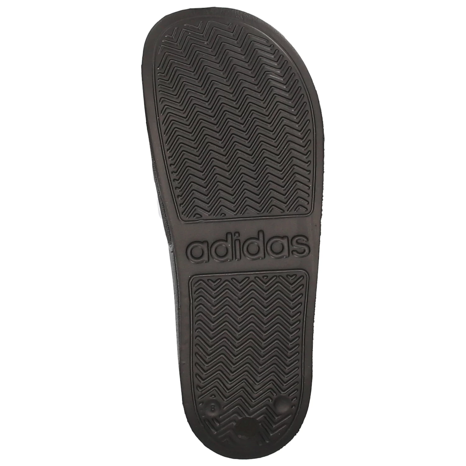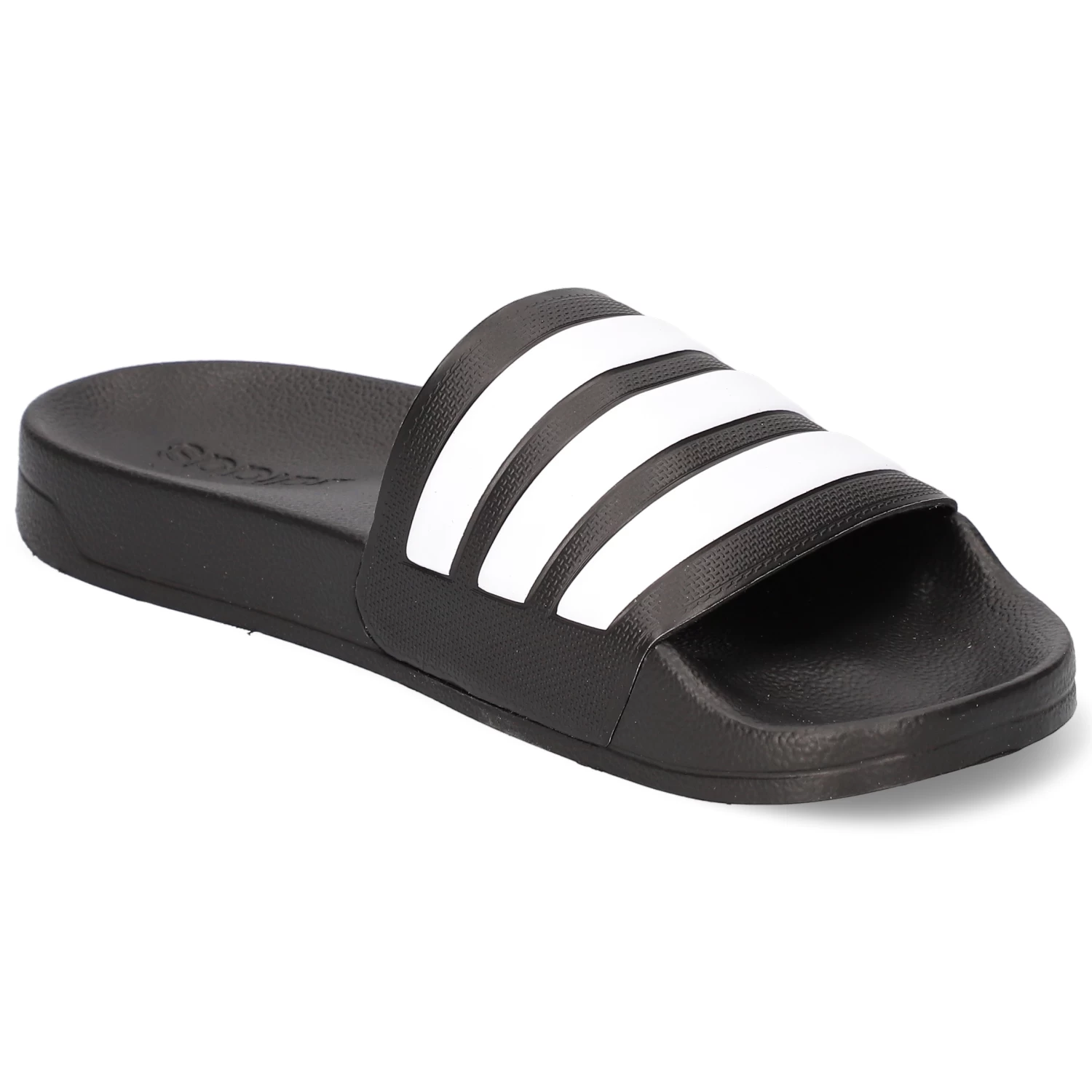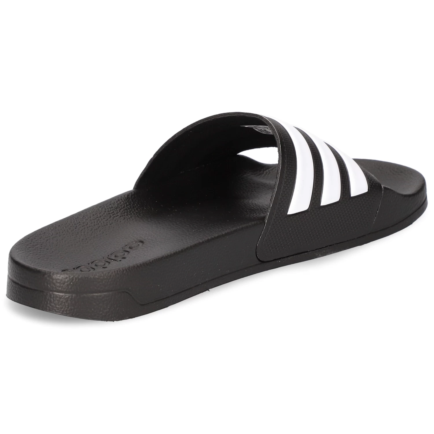Adidas Unisex Badelatschen ADILETTE SHOWER Schwarz Synthetik – drei weiĂźe Streife ĂĽber dem Spann – Logo Prägung auf der AuĂźenseite – rutschhemmende Laufsohle