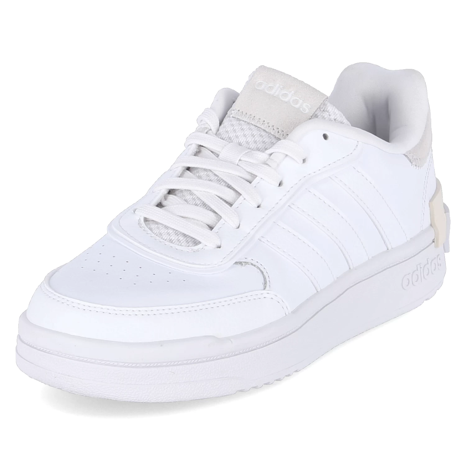 Adidas Damen Low Sneaker/ Sportschuhe/ Basketballschuhe POSTMOVE SE WeiĂź Leder-Synthetik-Mix – SchnĂĽrung – dezente Lochungen – verstärkter Zehen- und Fersenbereich – Einstiegspolster – Seitenstreifen – gepolsterte Decksohle – flexible, rutschhemmende Laufsohle