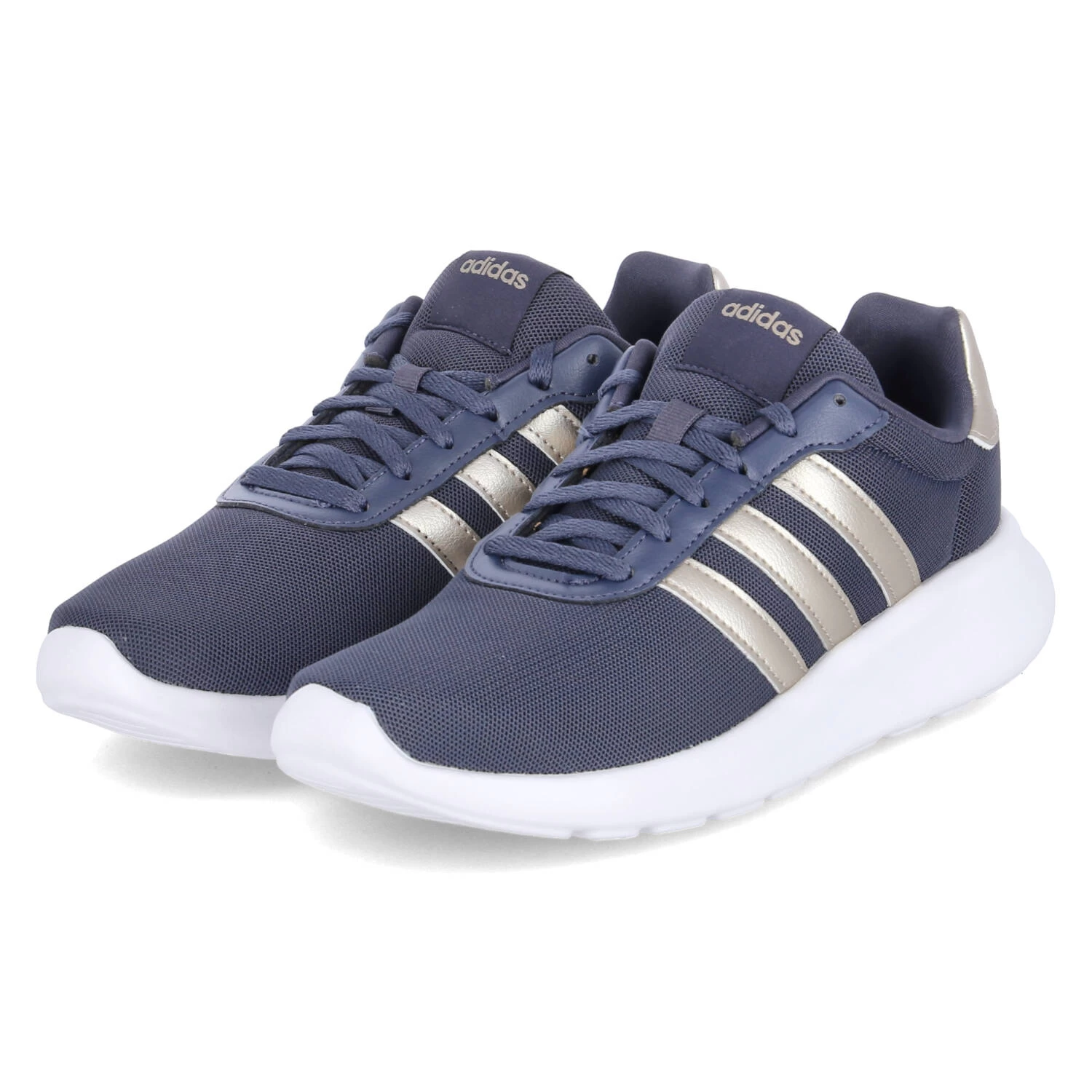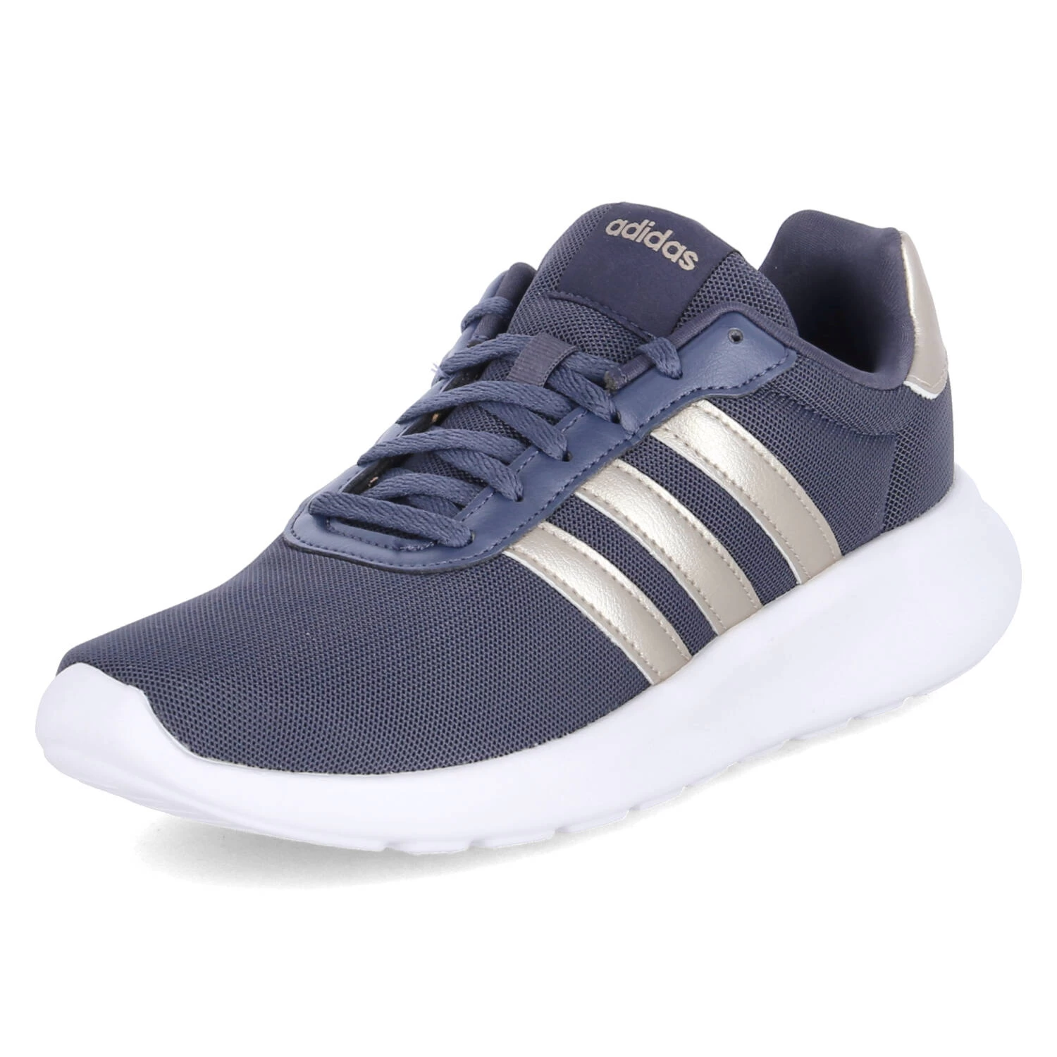 Adidas Damen Laufschuhe/ Sportschuhe/ Low Sneaker LITE RACER 3.0 Blau Textil-Synthetik-Mix – goldene Highlights – Mesh-Oberfläche – gepolsterter Einstieg – klassische Seitenstreifen –verstärkte Fersenpartie – flexible, rutschhemmende Laufsohle – gepolsterte Decksohle