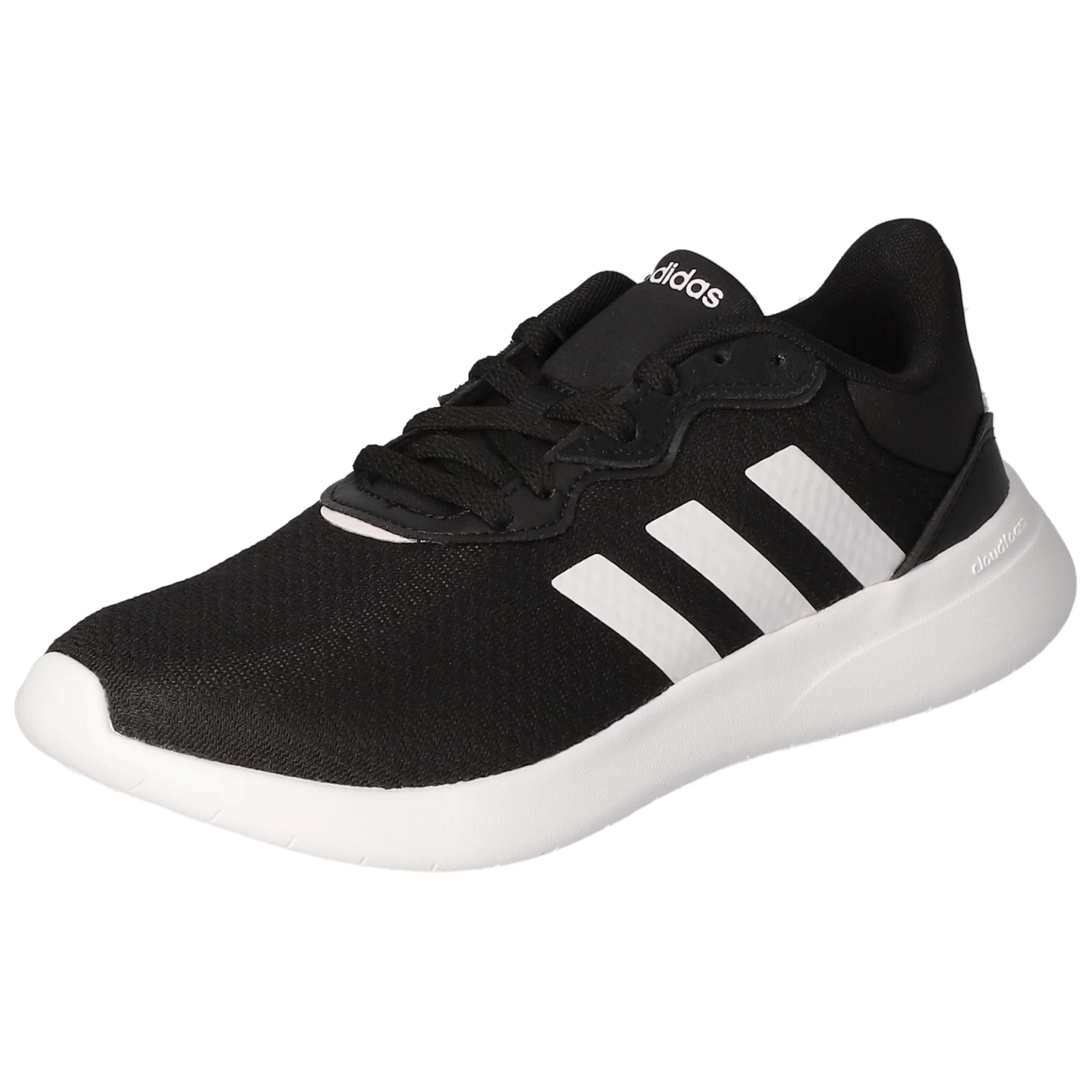 Adidas Damen sportliche Halbschuhe/ Low Sneaker QT RACER 3.0 Schwarz Textil-Synthetik-Mix – SchnĂĽrung – weiĂźe Highlights – gelabelt – gepolsterter Einstieg – gepolsterte Decksohle – flexible, rutschhemmende Laufsohle