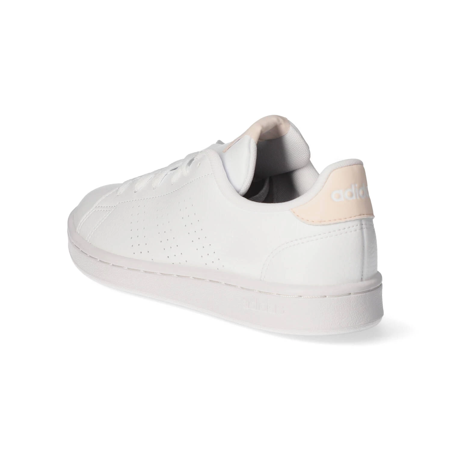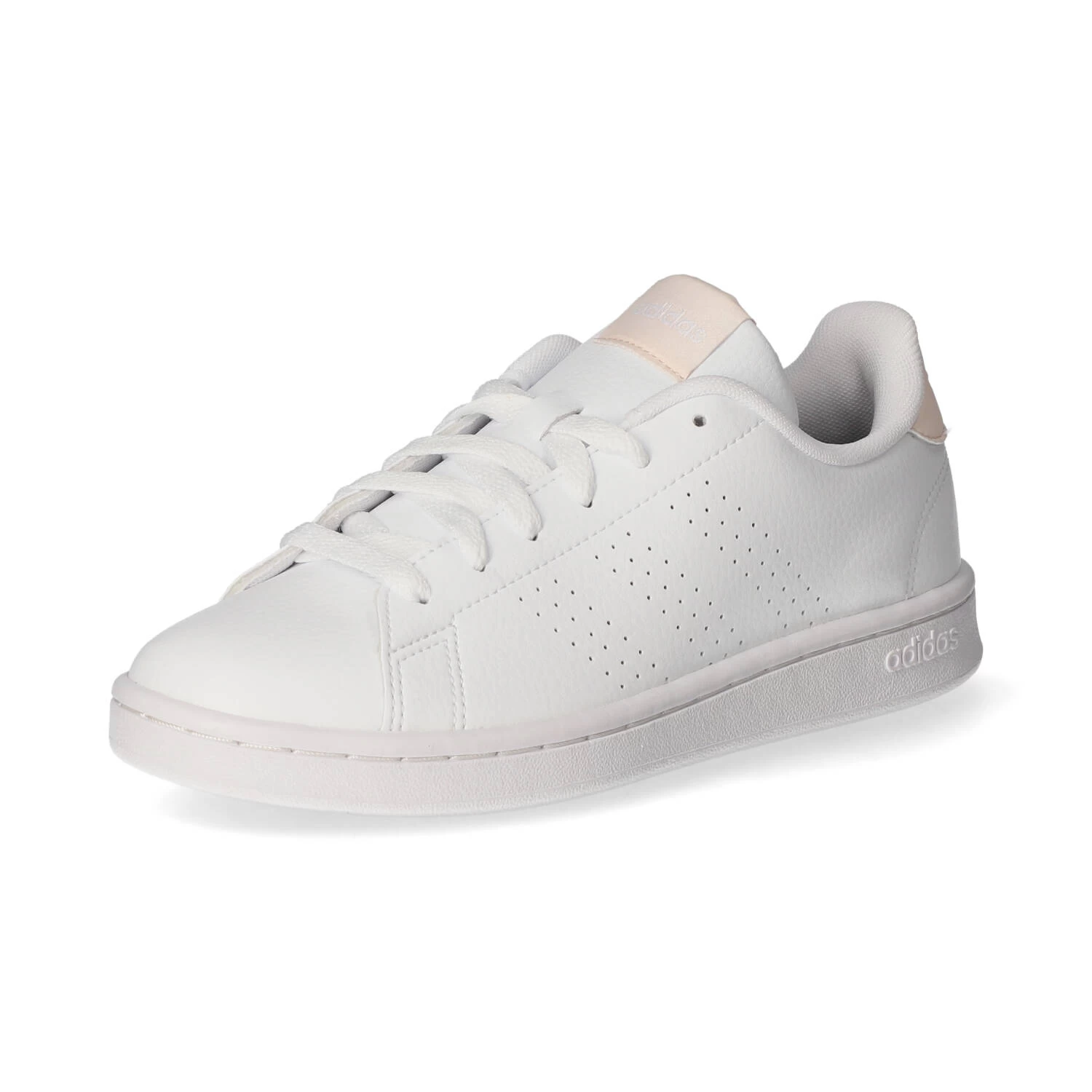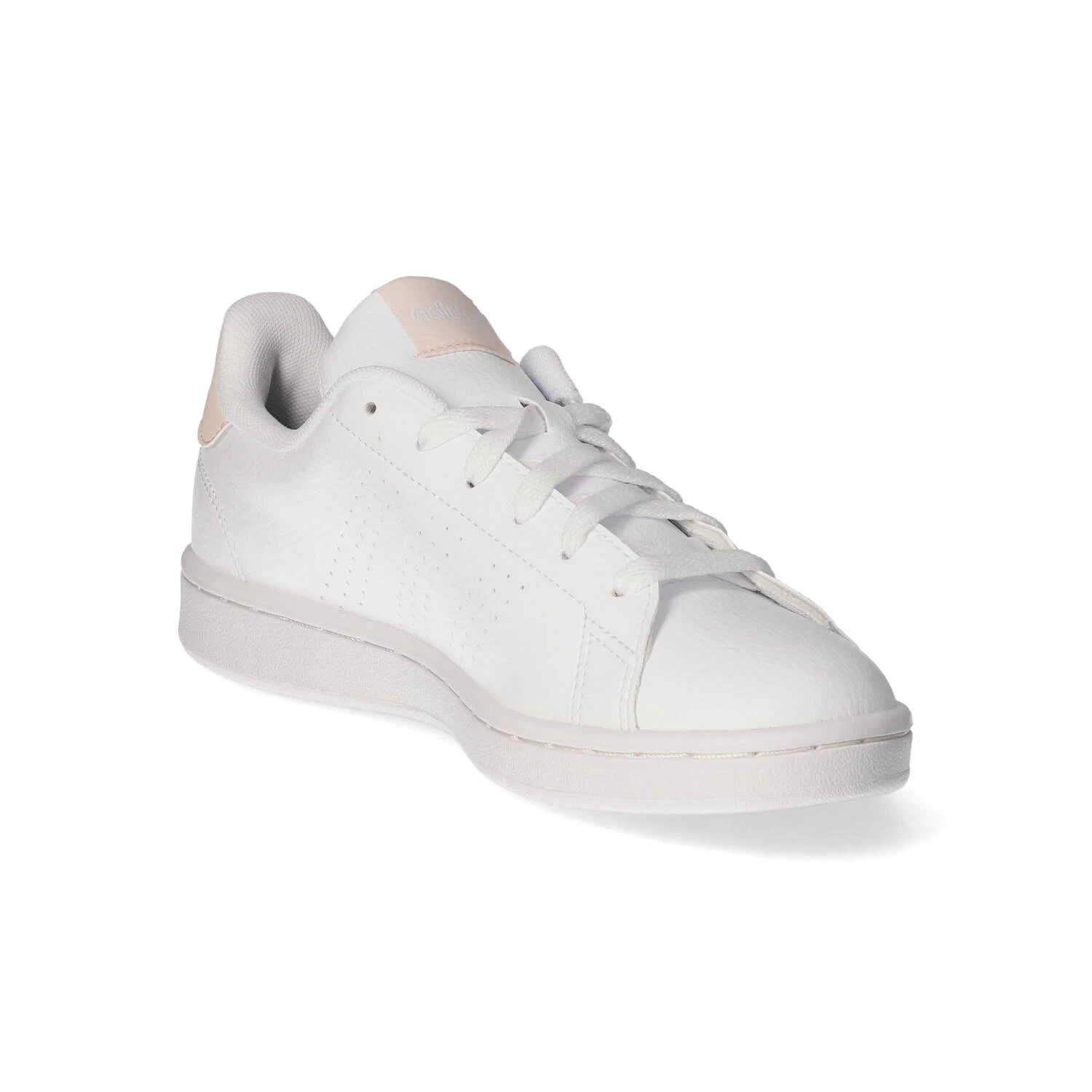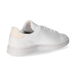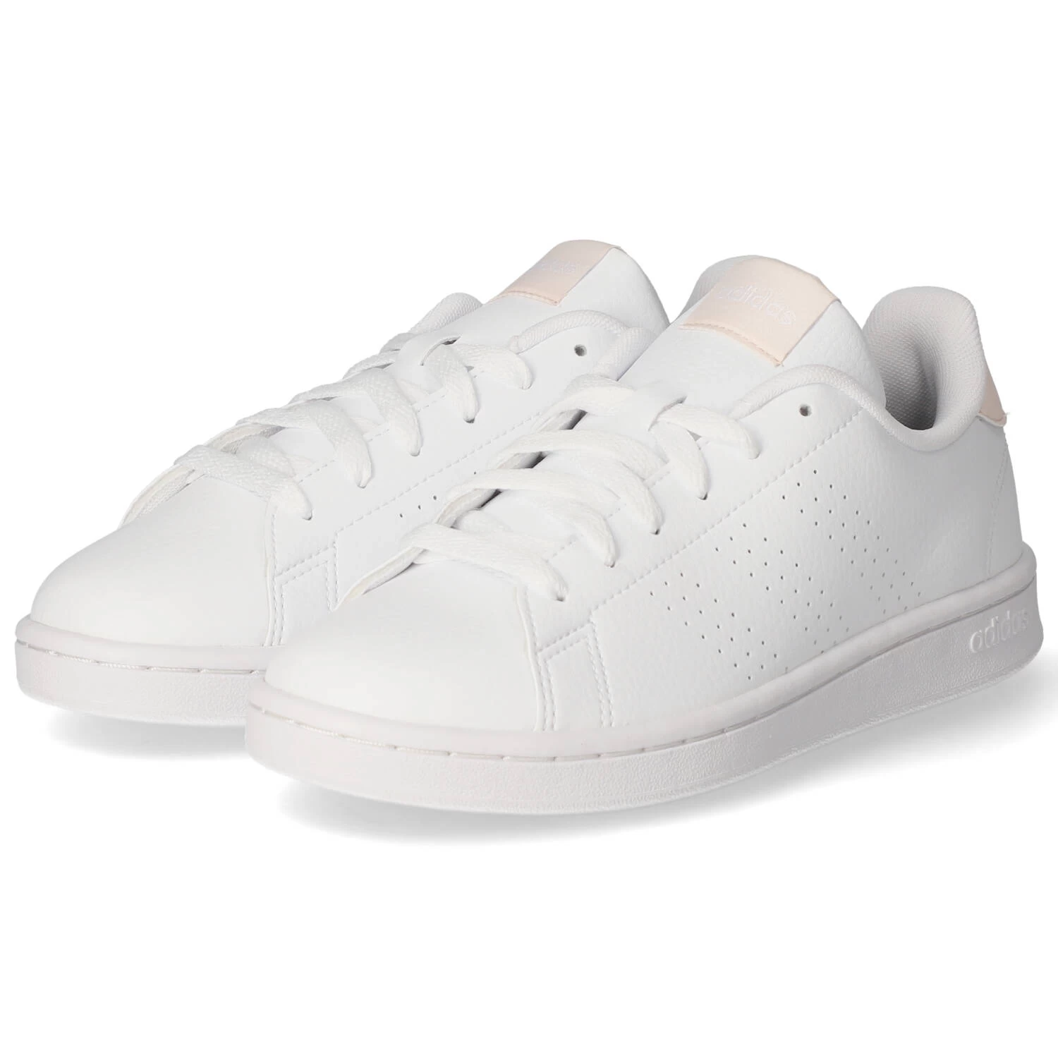 Adidas Damen Sportschuhe/ Low Sneaker ADVANTAG WeiĂź Leder-Synthetik-Mix – sportliches Design – rosa Highlights – Teile in Lochstanz – typische Markendetails – SchnĂĽrung – verstärkter Zehen- und Fersenbereich – gepolsterter Einstieg – leichtes Textilfutter – gepolsterte Decksohle – flexible, rutschhemmende Profilsohle
