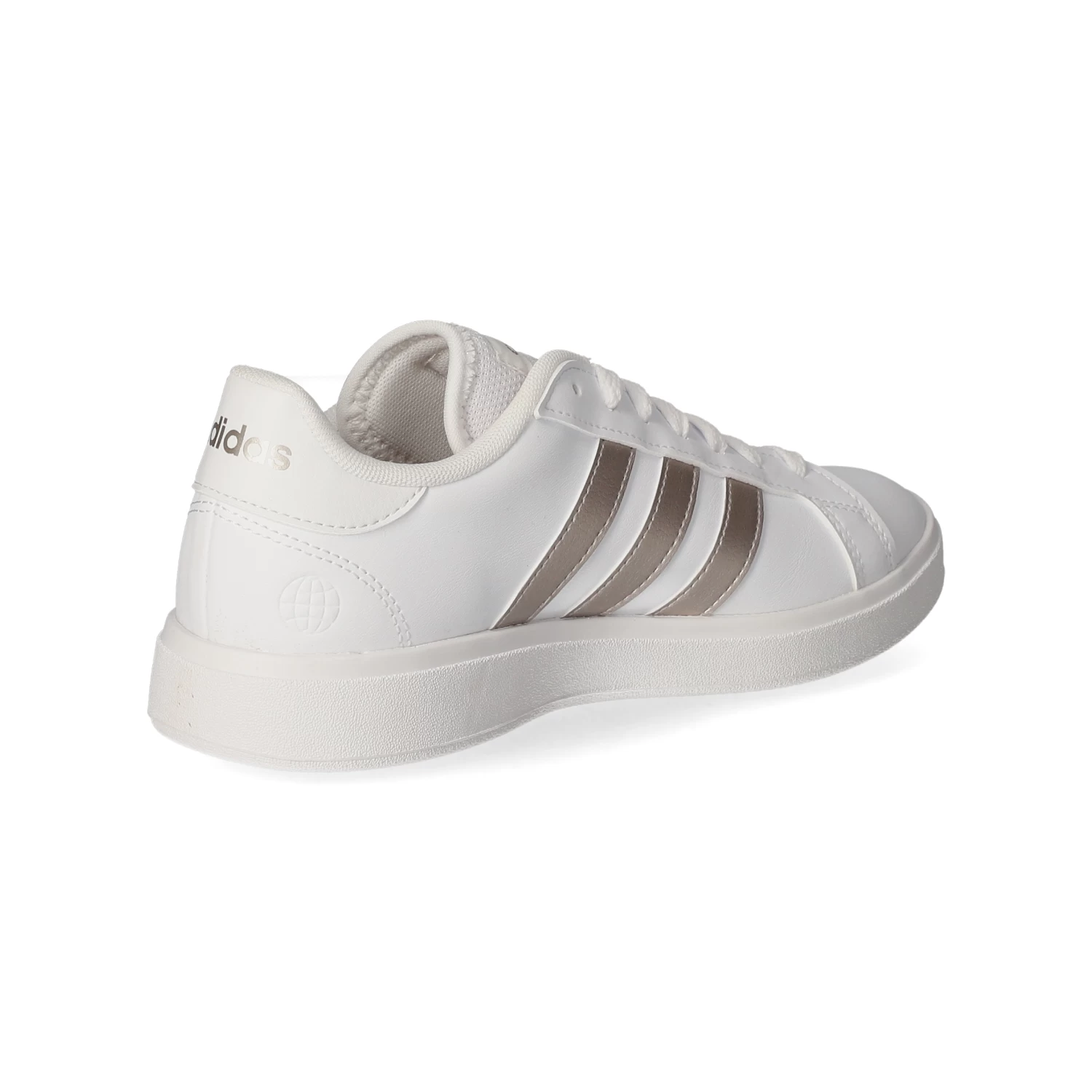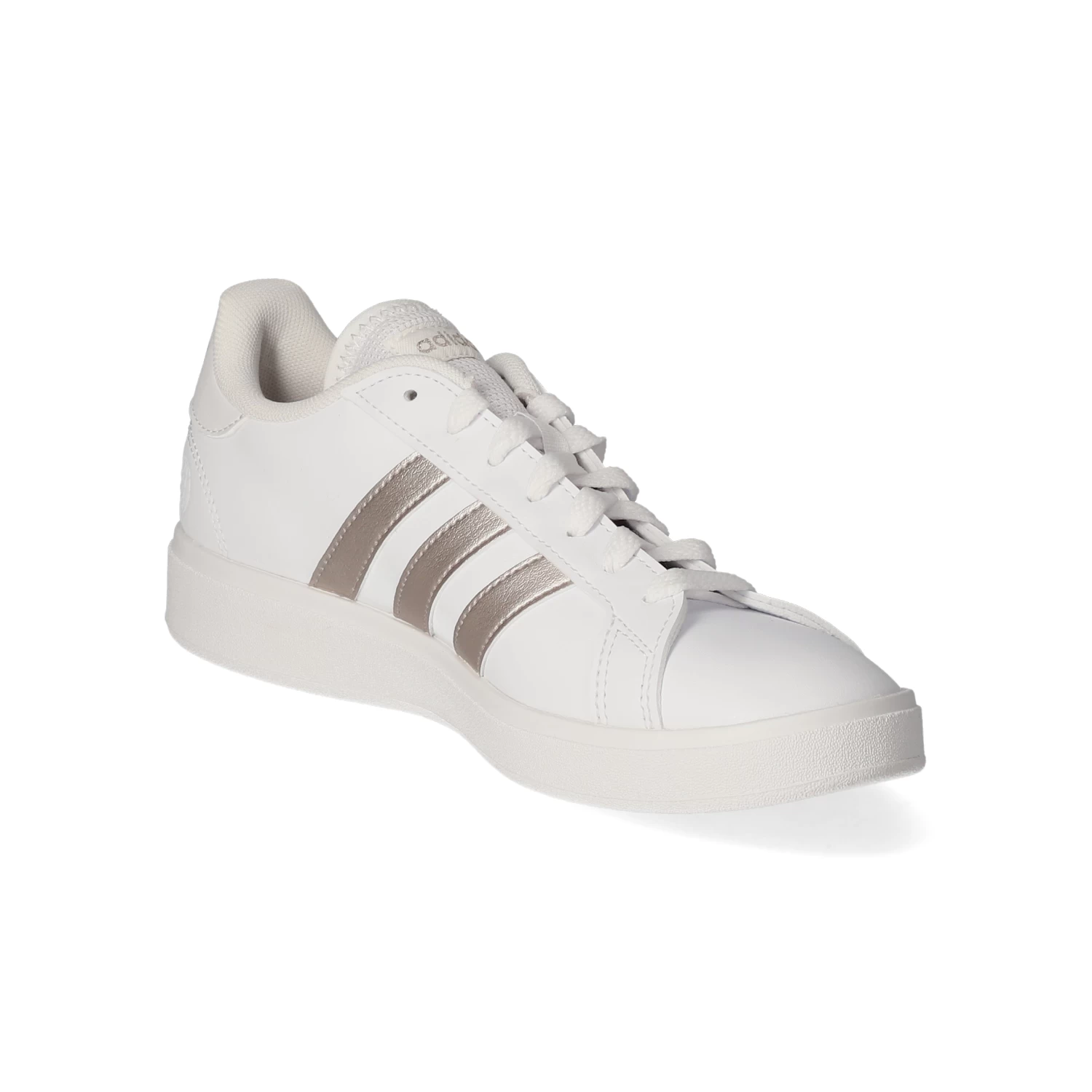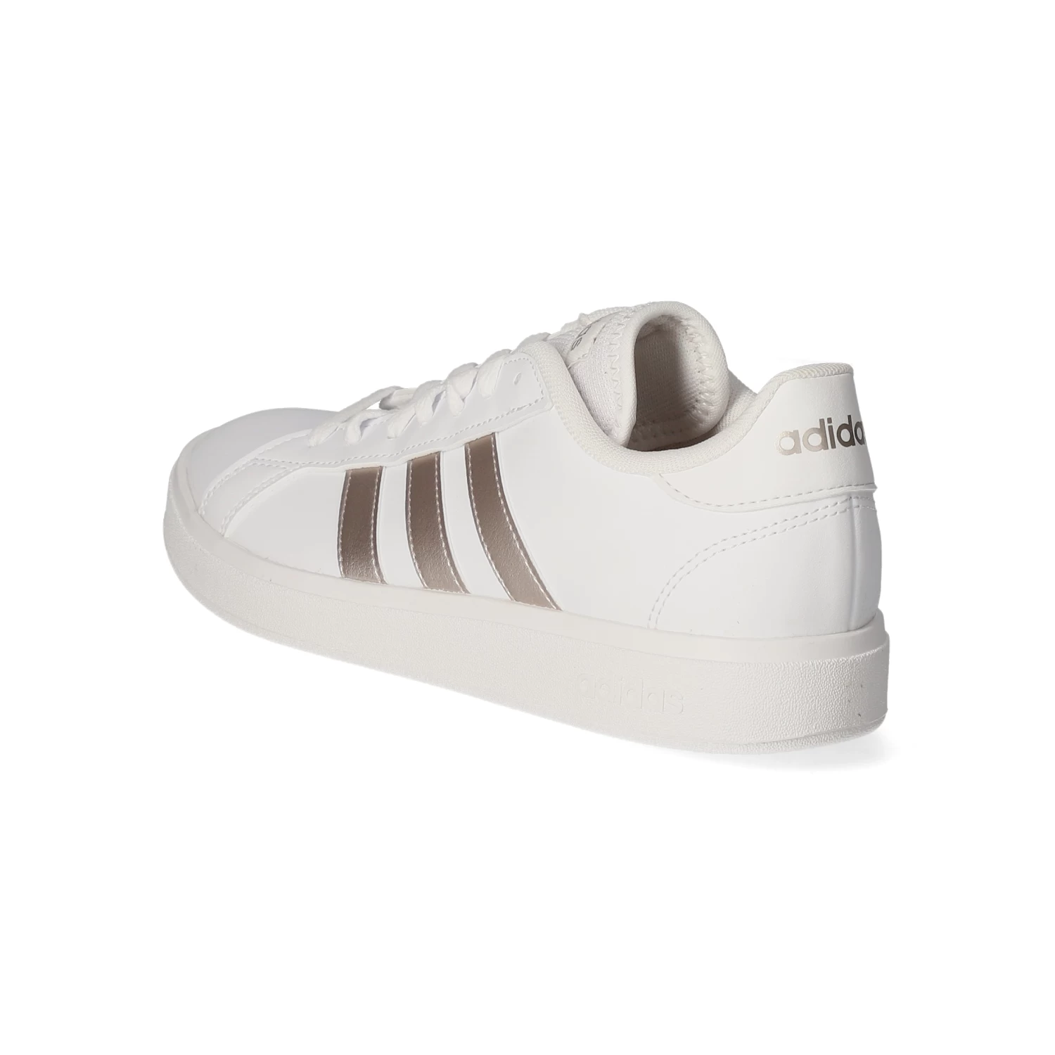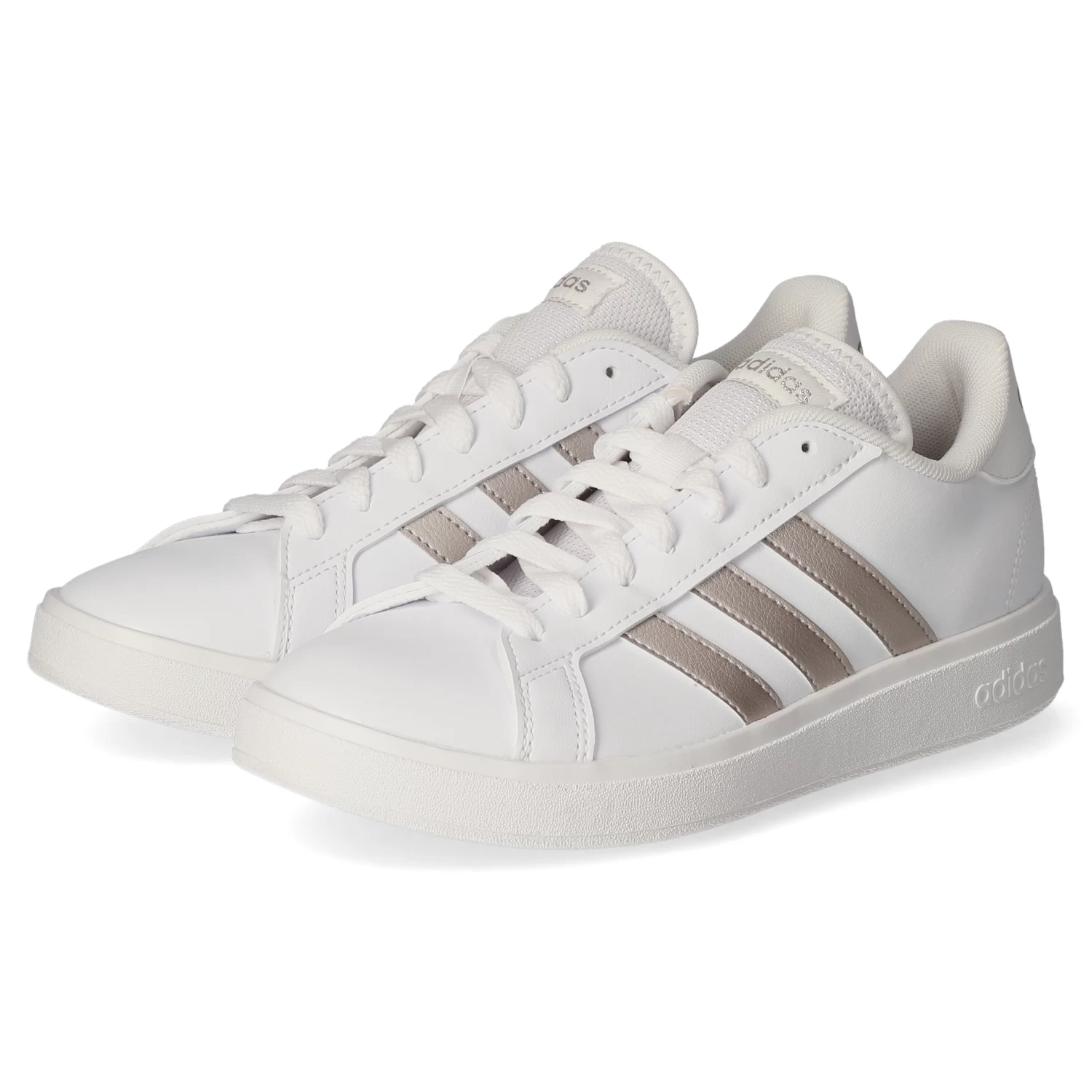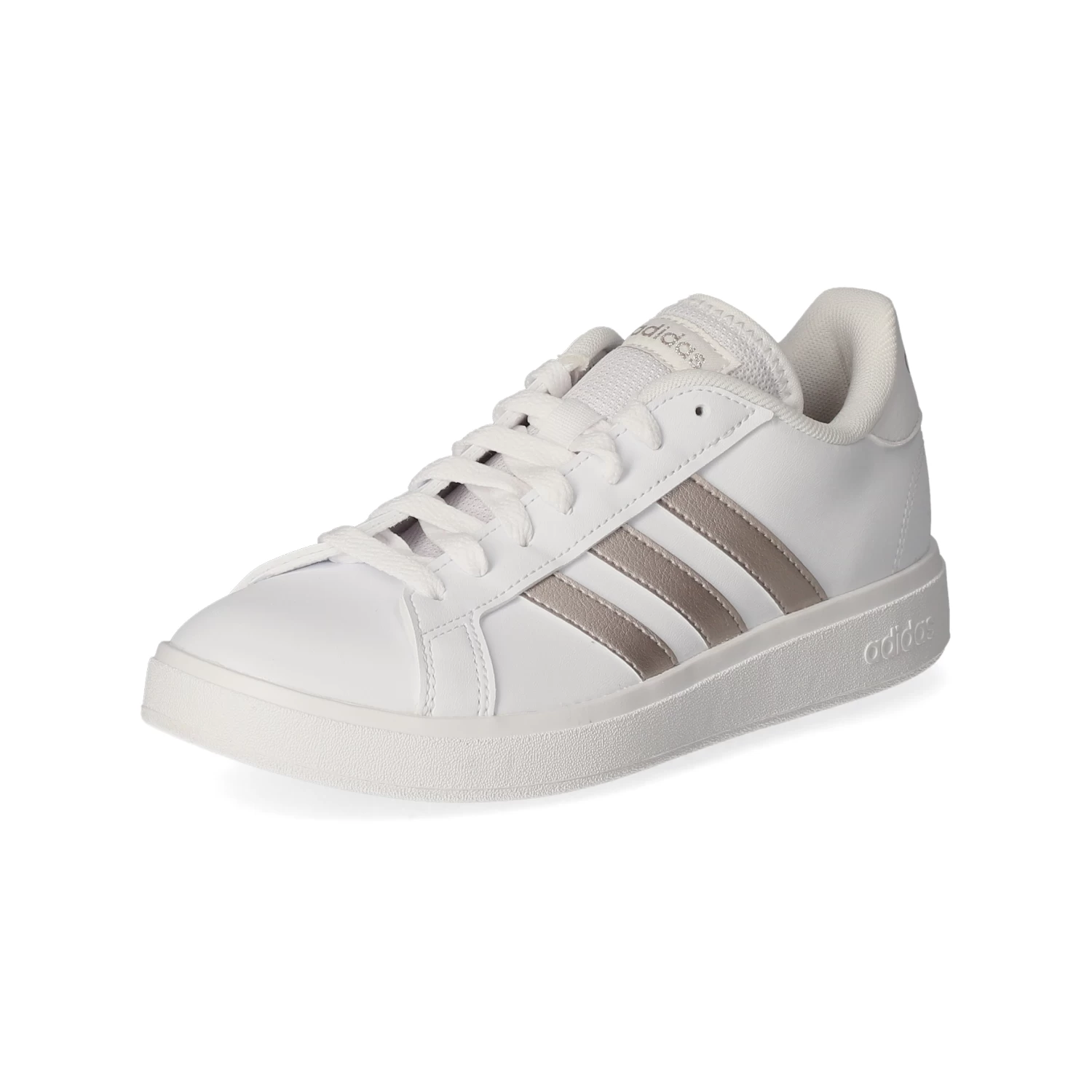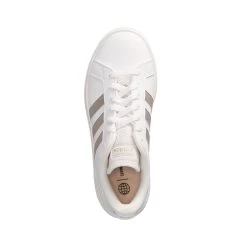 Adidas Damen Low Sneaker/ Sportschuhe GRAND COURT BASE 2.0 WeiĂź Kunstleder – sportliche Ziernähte und Zierstreifen – glänzende Highlights – gelabelt – verstärkter Fersenbereich – gepolsterter Einstieg – leichtes Textilfutter – gepolsterte Decksohle – flexible, rutschhemmende Laufsohle