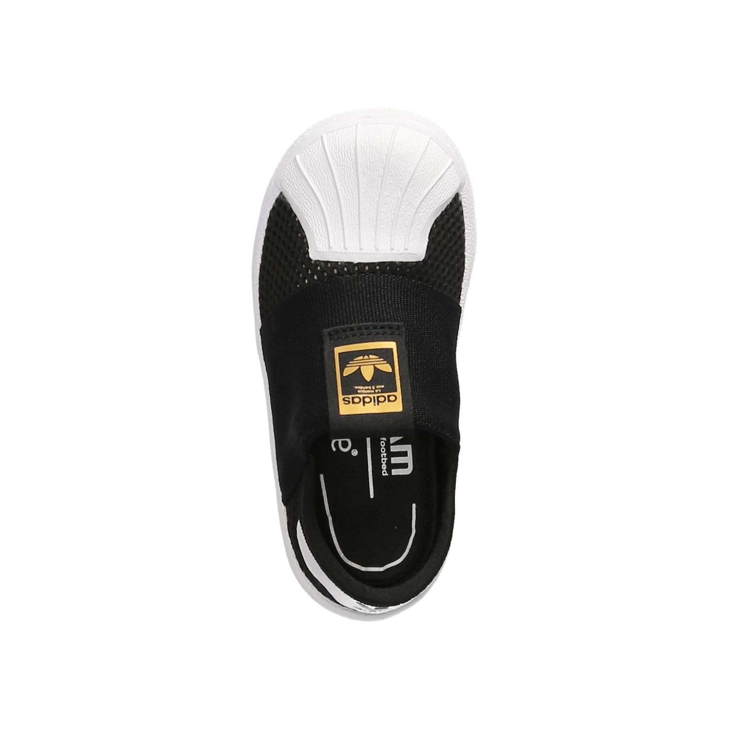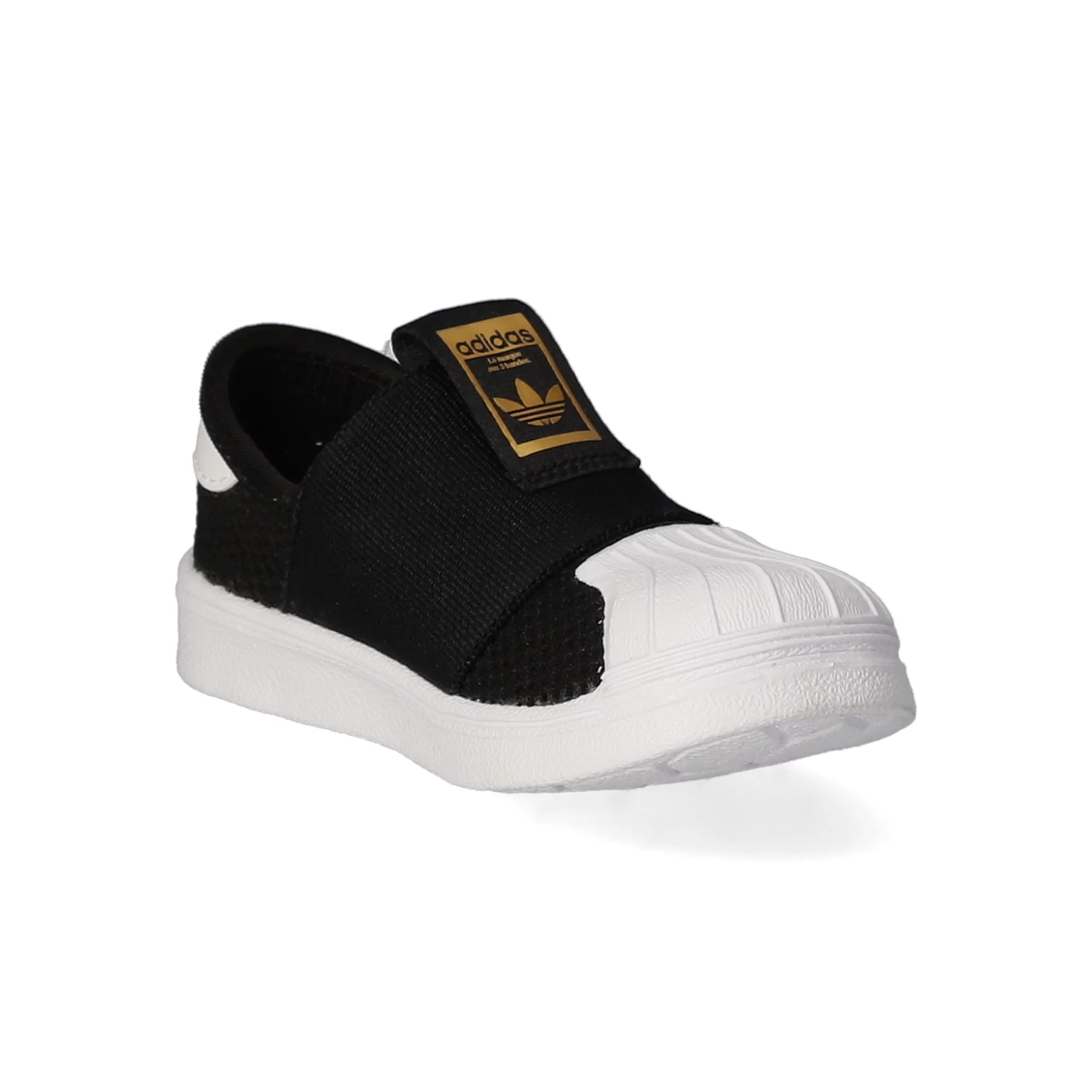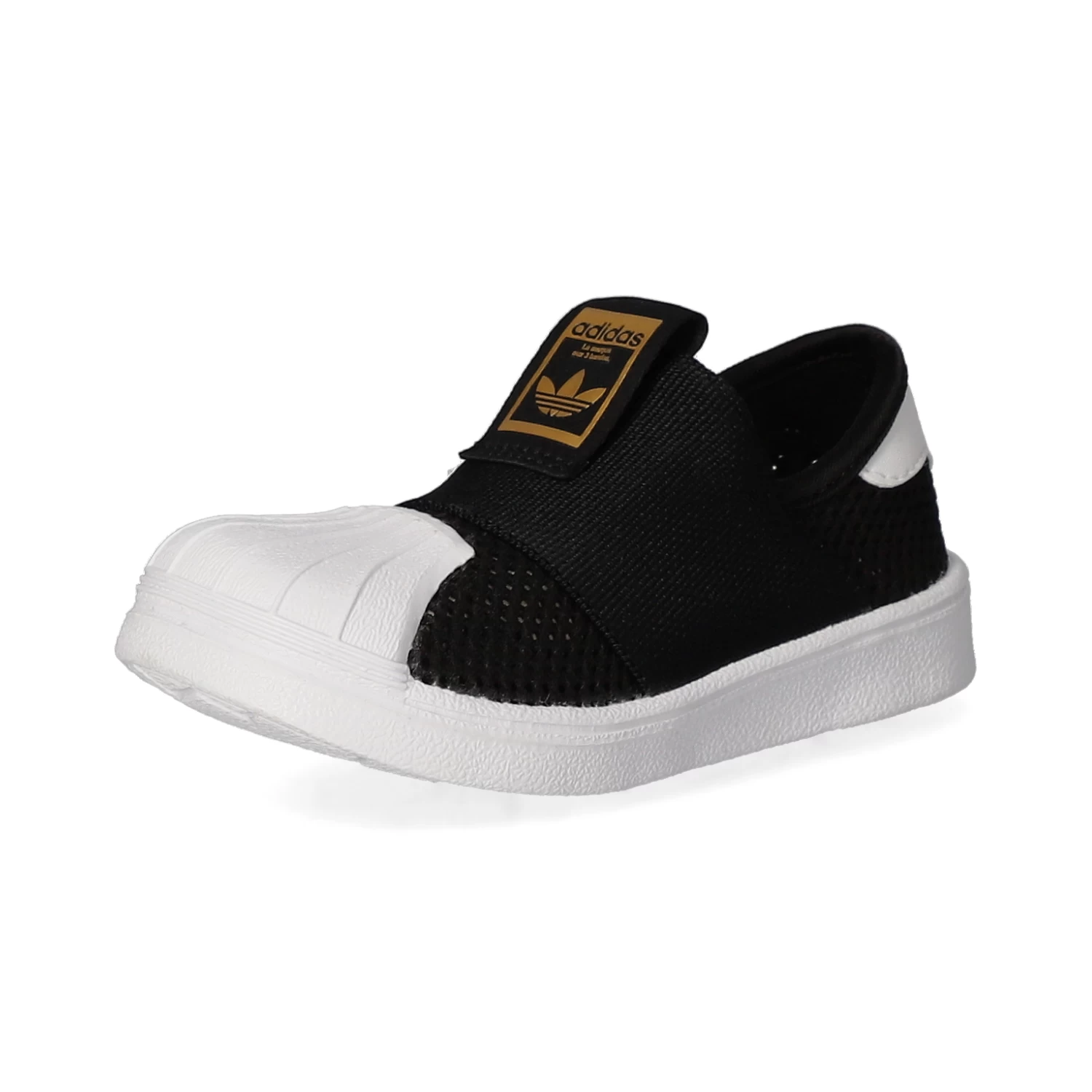Adidas Kinder Low Sneaker/ Slip-On Sneaker/ Sportschuhe SUPERSTAR SMR 360 Schwarz Synthetik-Textil-Mix – sportliches Design – typische Markendetails – verstärkter Zehenbereich – gepolsterte Decksohle – flexible, rutschhemmende Laufsohle mit leichtem Profil – schmal geschnittener Fersenbereich