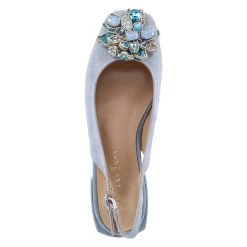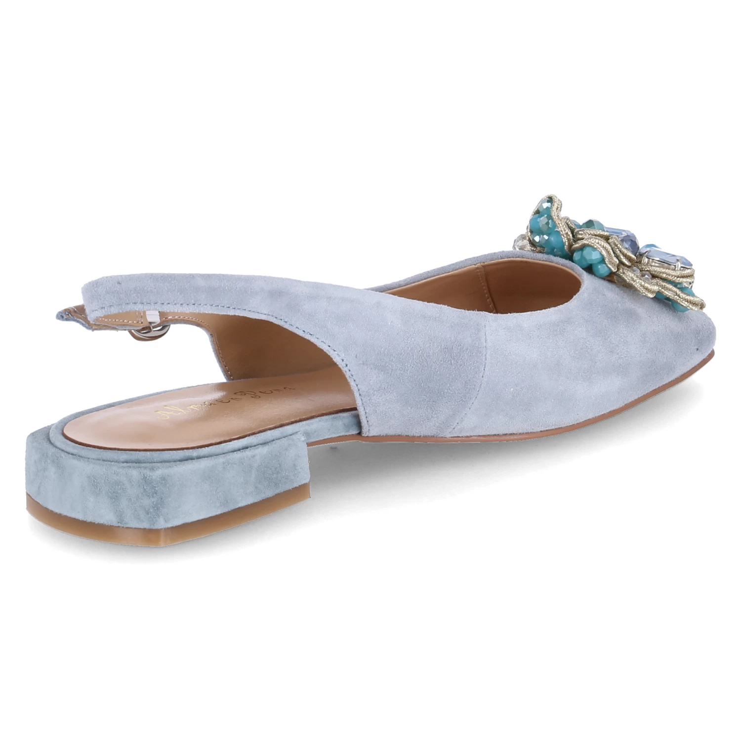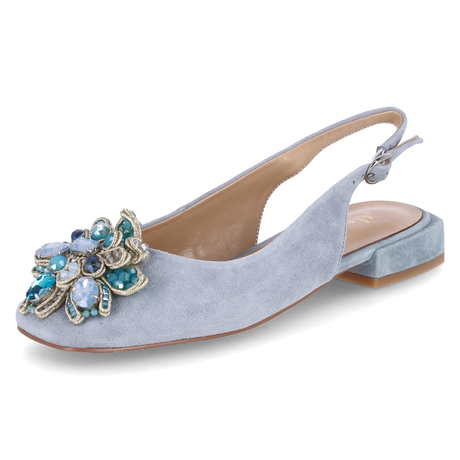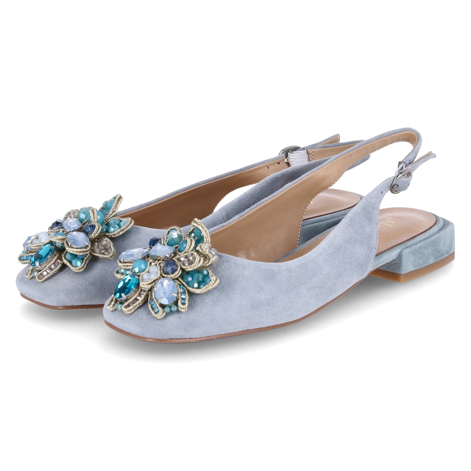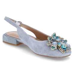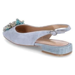 Alma en Pena Damen Sling-Ballerinas Blau Rauleder – elegantes Design – Zierbrosche mit Kunststeinbesatz – Schnalle mit Elastikeinsatz – angenehmes Lederfutter – Lederdecksohle mit Fersenpolster – flexible, rutschhemmende Laufsohle