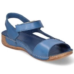 Andrea Conti Damen Sandaletten Blau Leder – praktischer Klettverschluss – Verbindungselemente aus Metall als Dreiecke – gepolsterte Decksohle – flexible, rutschhemmende Laufsohle