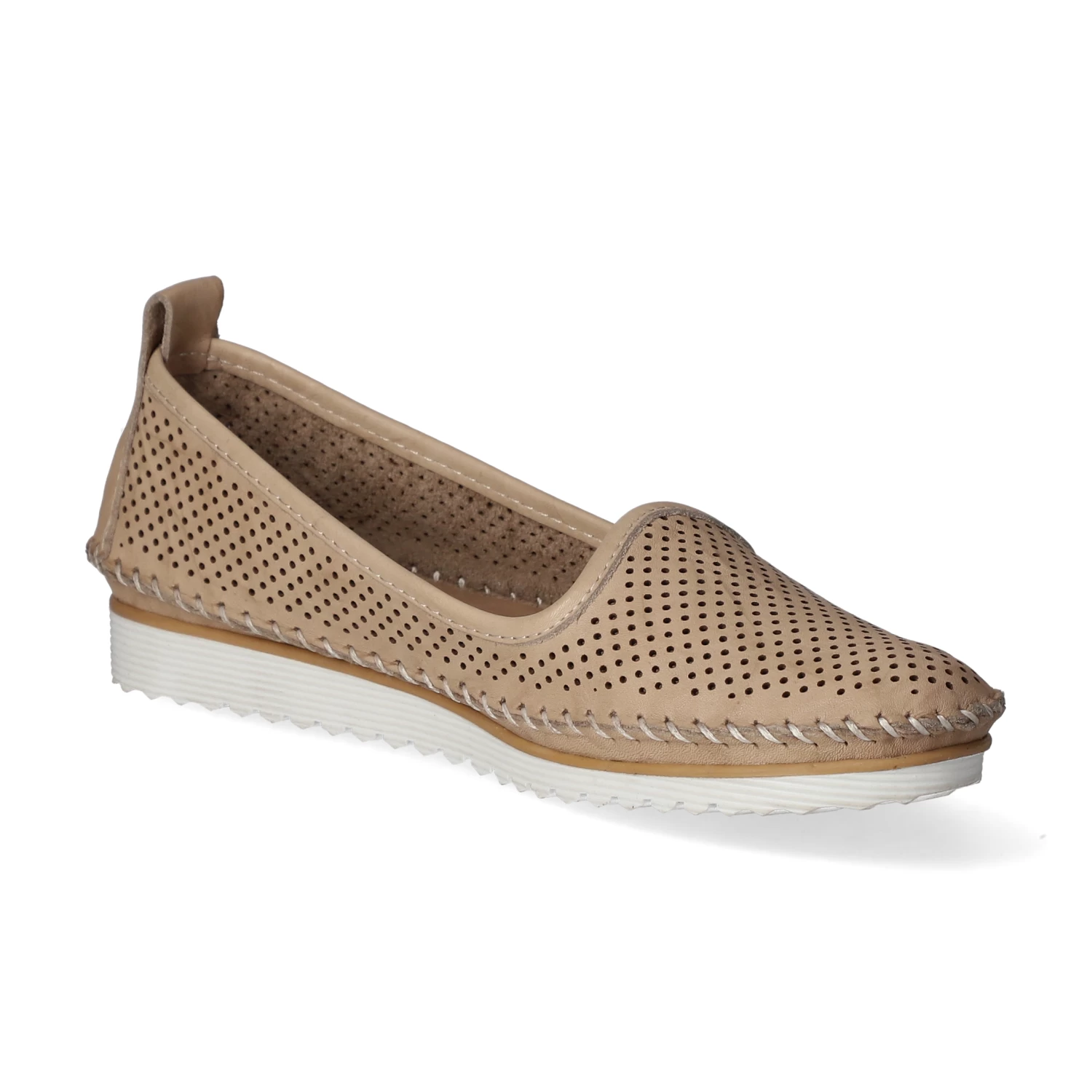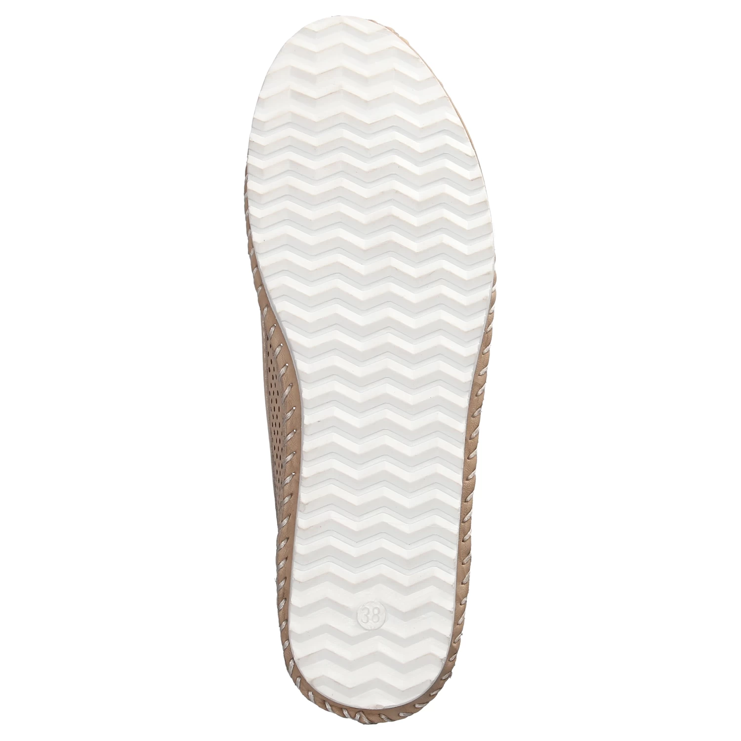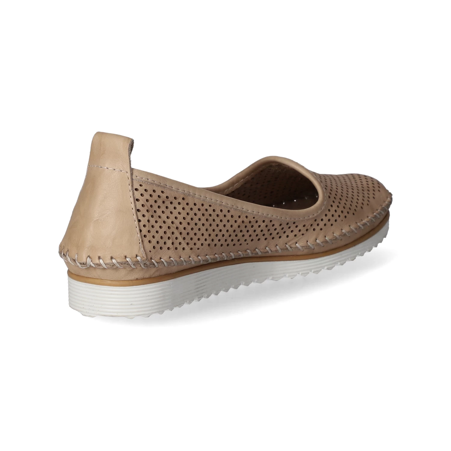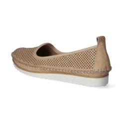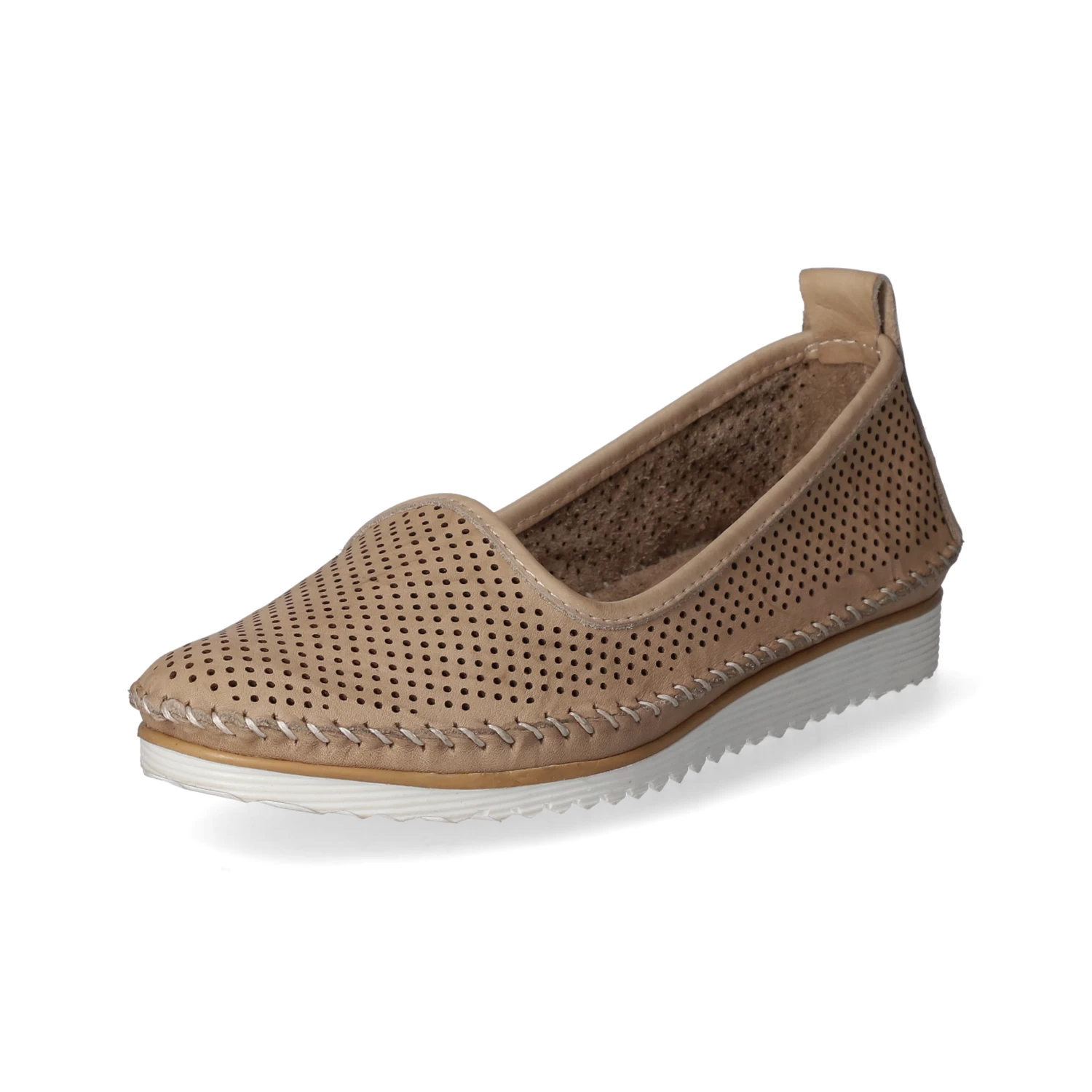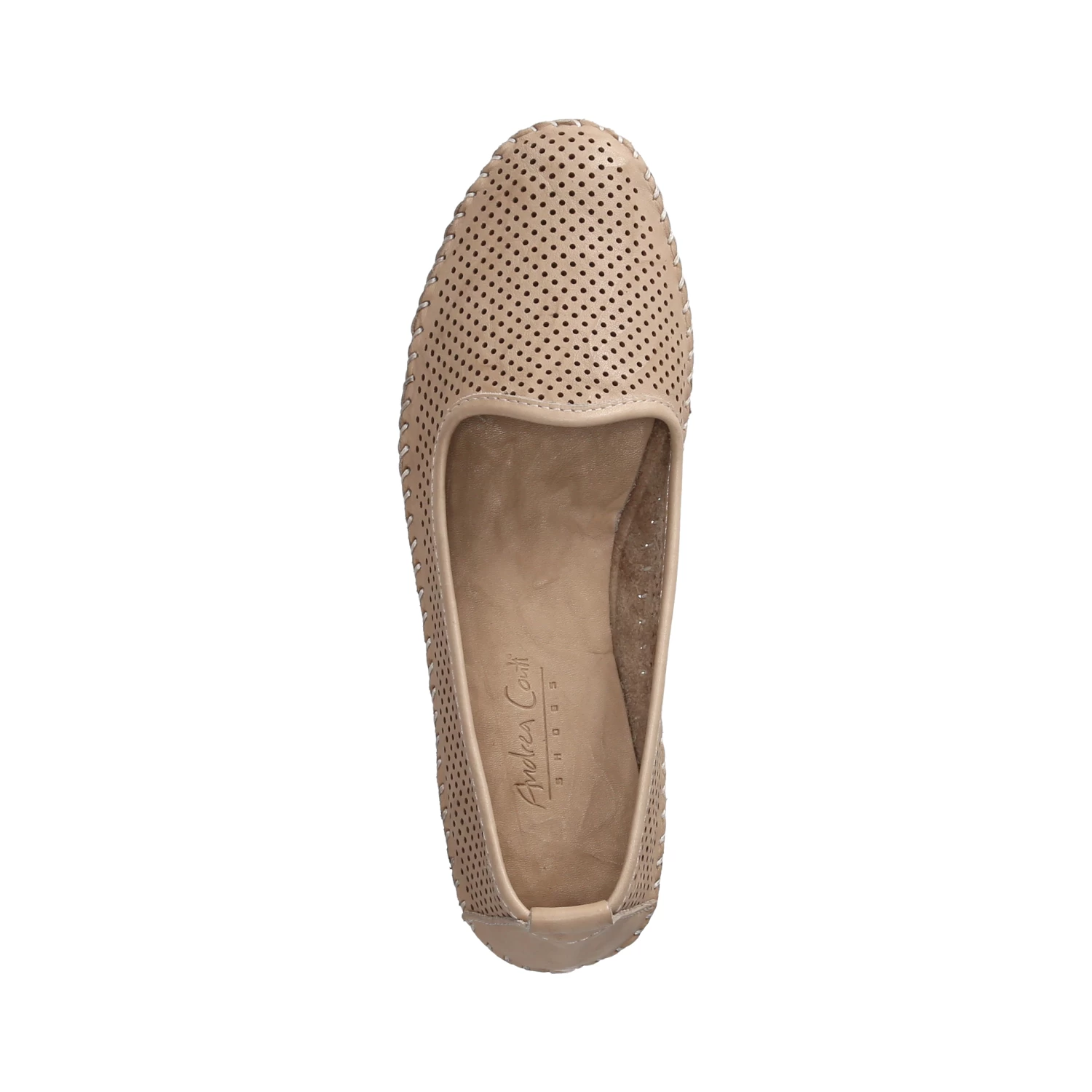 Andrea Conti Damen Slipper Beige Glattleder – moderner Lochung – Anziehlasche – verstärkter Fersenbereich – leicht gepolsterte Wechseldecksohle – flexible, rutschhemmende Profilsohle