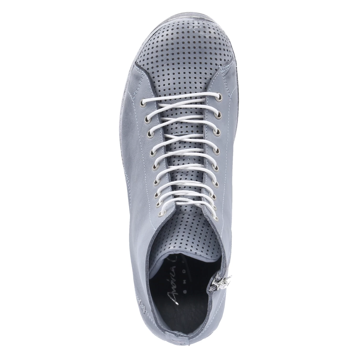 Andrea Conti Damen Stiefeletten/ SchnĂĽr-Boots Grau Glattleder – geringes Gewicht – teilweise gelochtes Obermaterial – ReiĂźverschluss und SchnĂĽrung – Lederfutter – gepolsterte, herausnehmbare Lederdecksohle – verstärkter Fersenbereich – flexible, vernähte und rutschhemmende Laufsohle – Farbe kann je nach Beleuchtung Blau wirken
