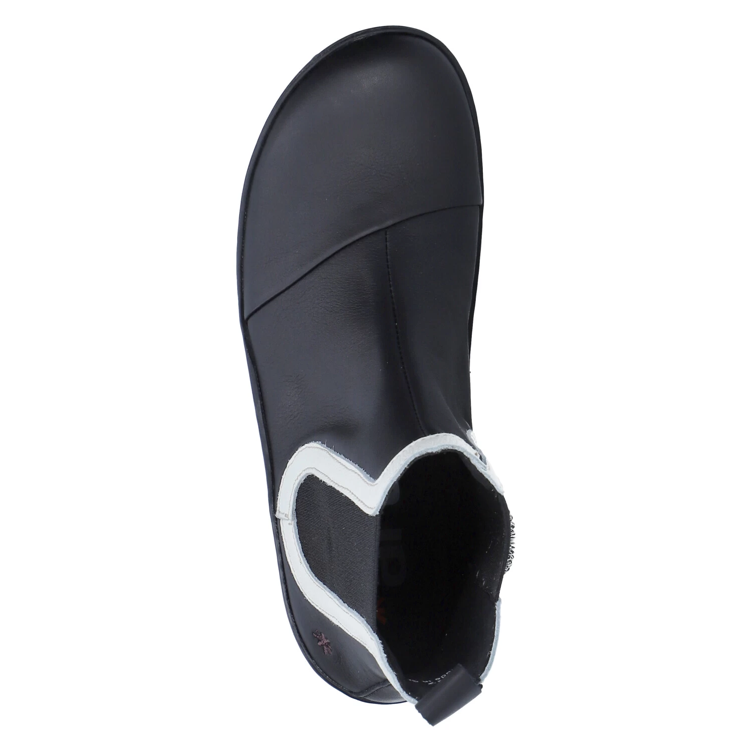 Art Damen Stiefeletten/ Chelsea Boots ANTIBES Schwarz Glattleder – moderne Ziernähte – zwei Elastikeinsätze – weiĂźe Akzente – Anziehlasche – dezente Markendetails – verstärkter Zehen- und Fersenbereich – gepolsterte Wechseldecksohle mit Lochung – flexible, rutschhemmende Laufsohle mit Profil