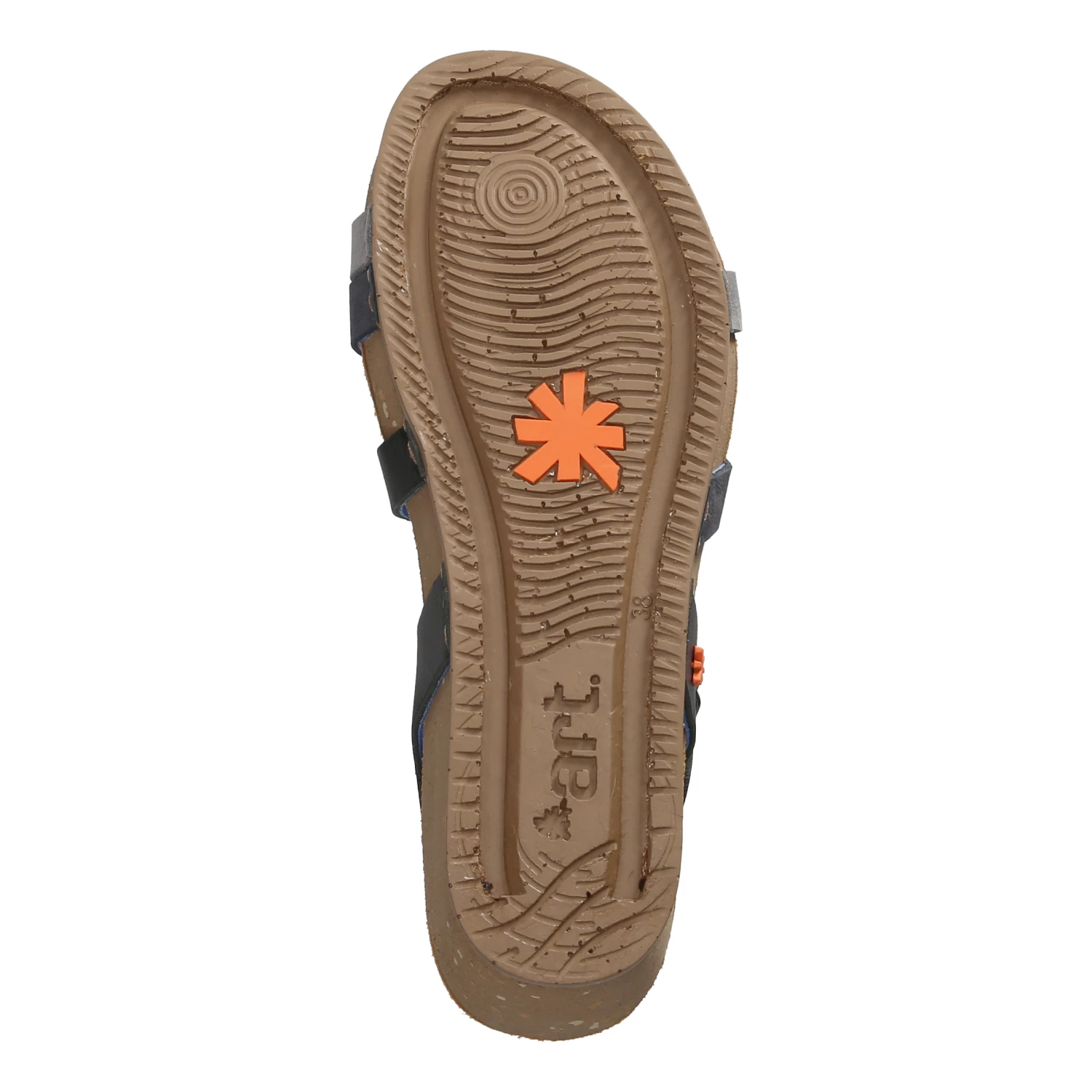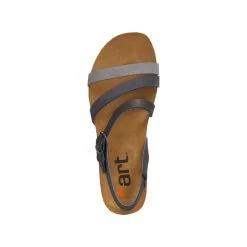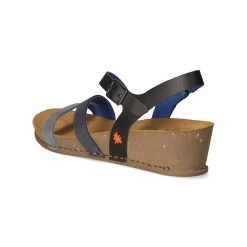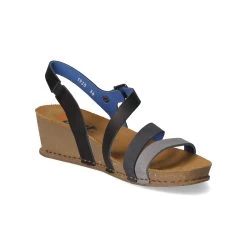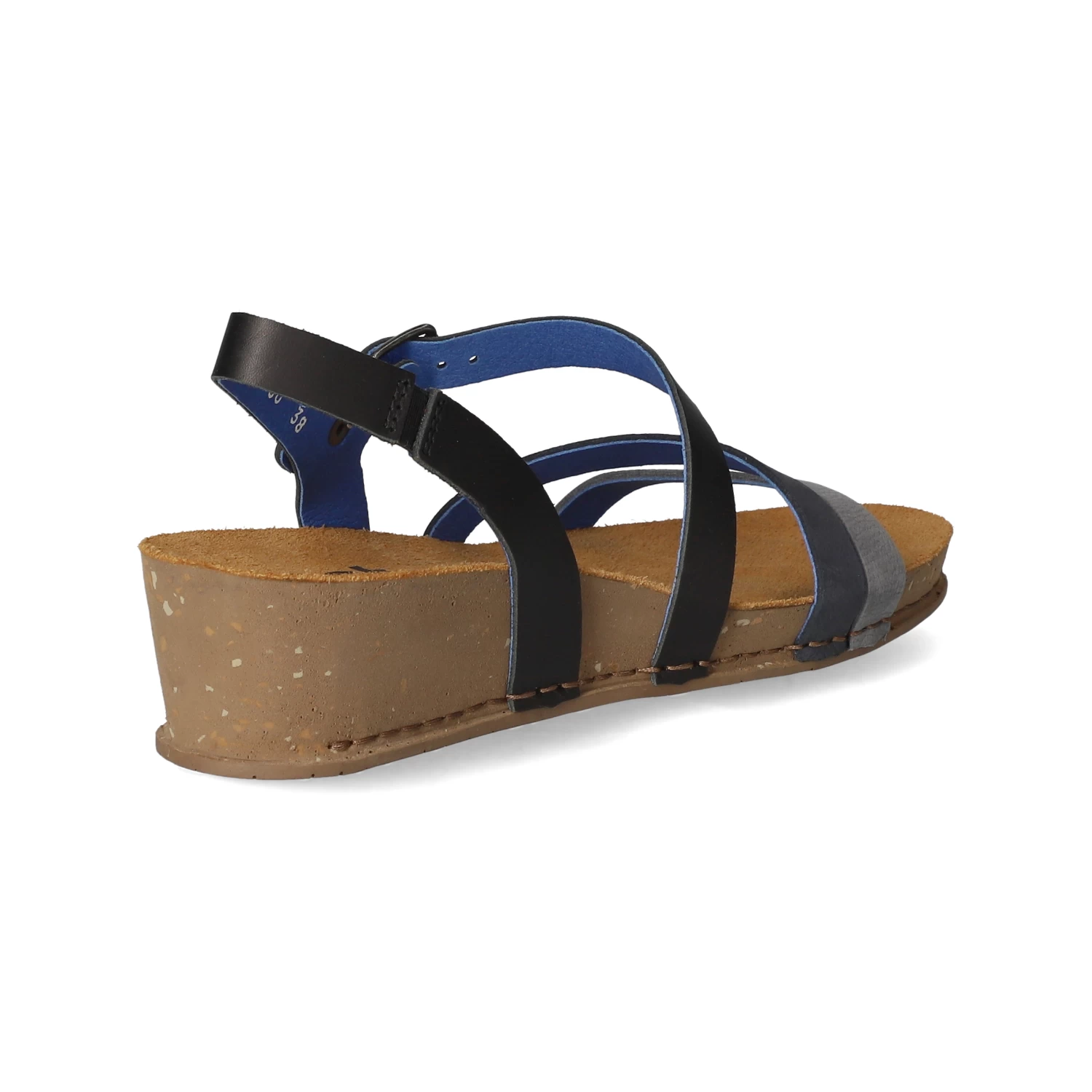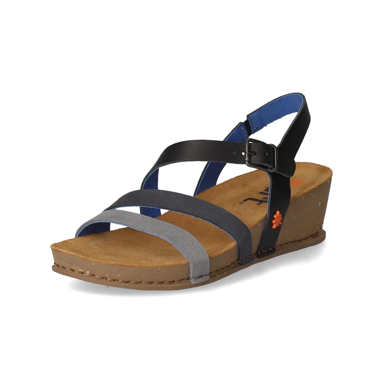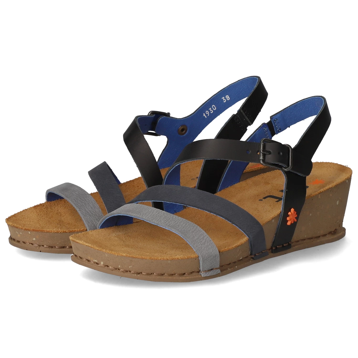 Art Damen Sandaletten/ Keilsandaletten/ Wedges I LIVE Schwarz/Blau Glattleder – Knöchelriemen mit Schnalle, Dornverschluss und Elastikeinsatz – leicht vorgeformtes FuĂźbett – flexible, rutschhemmende Profilsohle – stabiler Keilabsatz