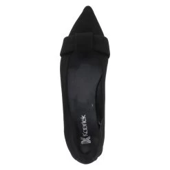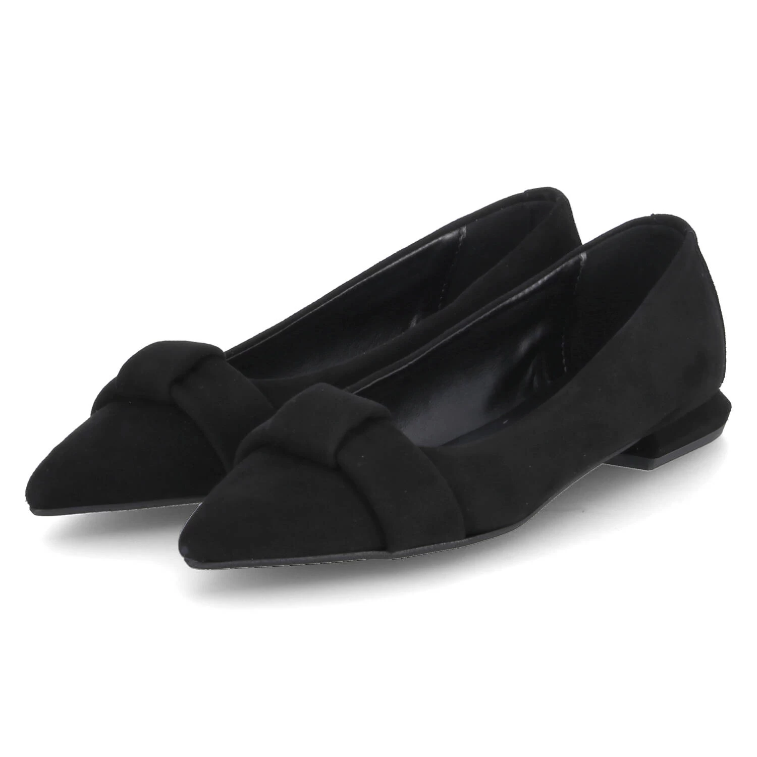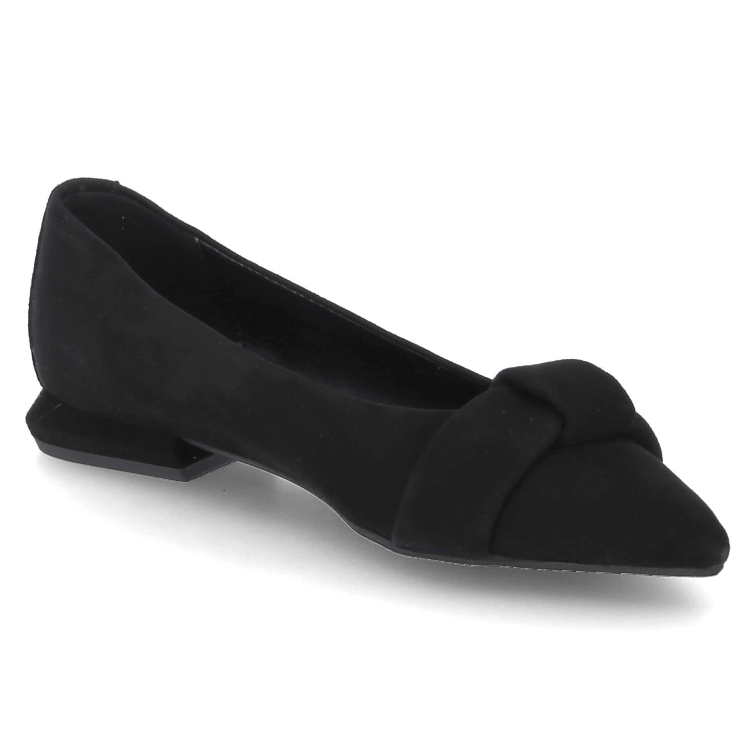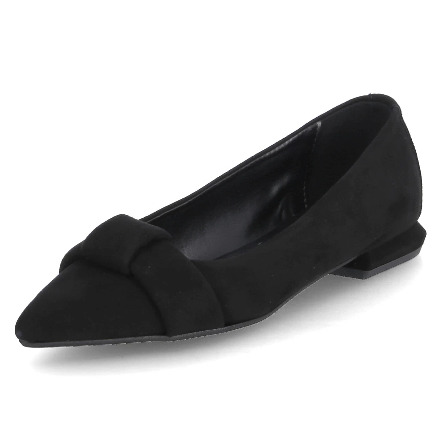Kaerlek Damen Ballerinas BAMBI Schwarz Rauleder – verstärkte Ferse – Zierelement mit Knotendetail ĂĽber dem Zehenbereich – Decksohle mit dezentem Fersenpolster – sehr flexible, rutschhemmende Laufsohle – kleiner Blockabsatz