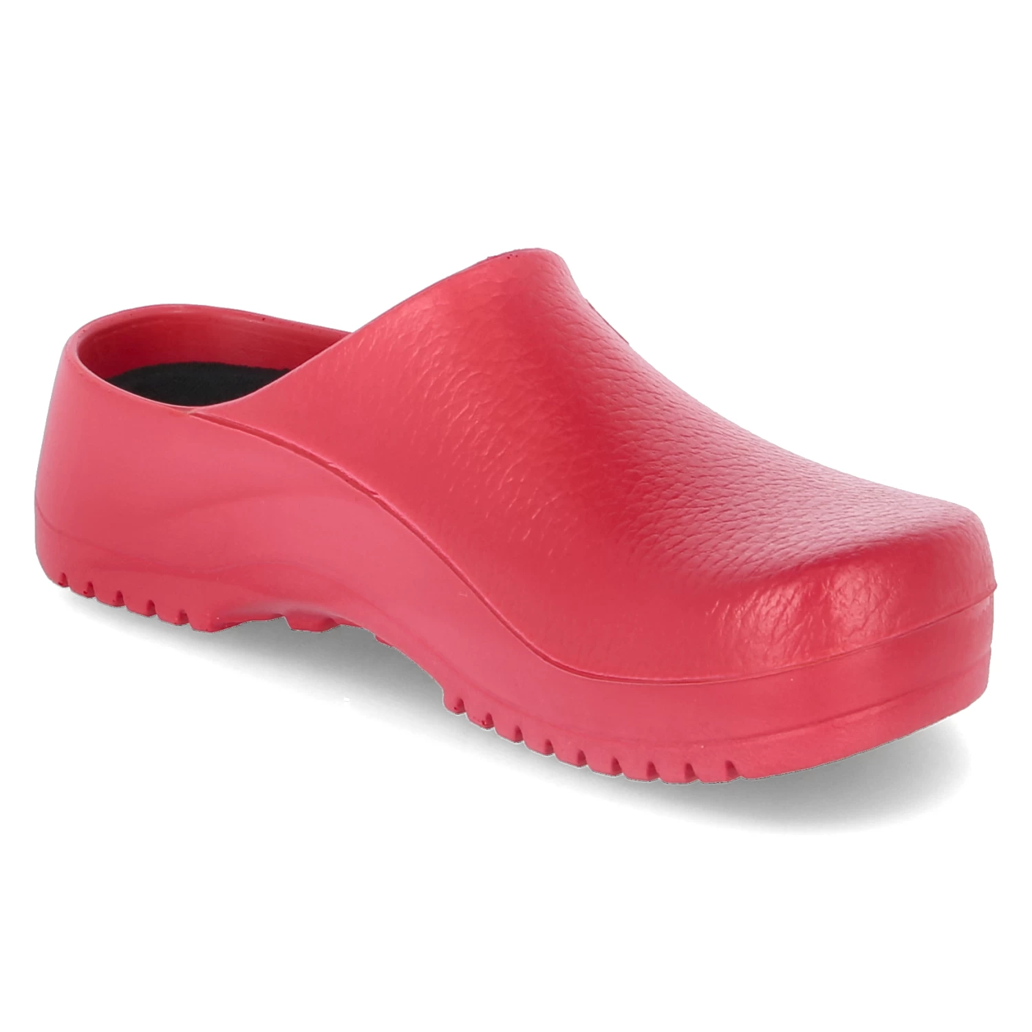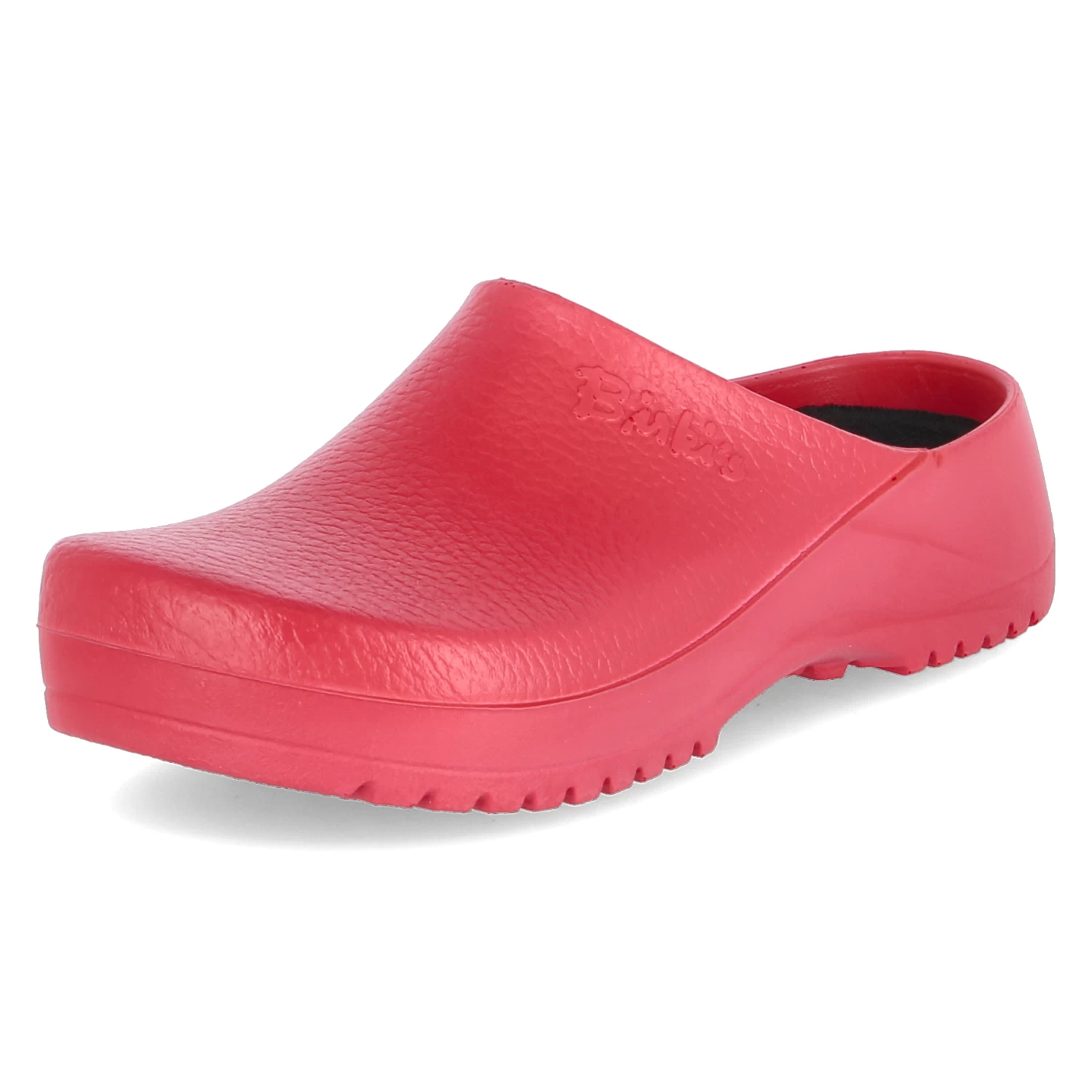Birkenstock Damen Pantoletten/ Clogs SUPER-BIRKI Rot Synthetik – herausnehmbares, vorgeformtes Kork-TieffuĂźbett mit Textilbezug – Profilsohle