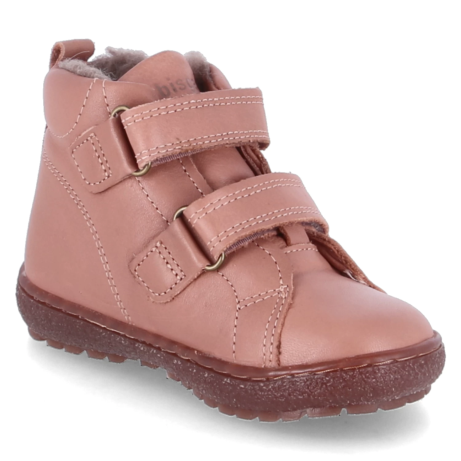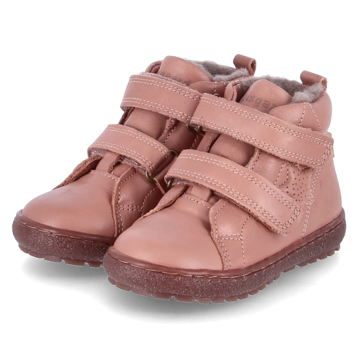 Bisgaard Kinder Winter-/ Klettschuhe ELI Rosa Glattleder – wasserfest, atmungsaktiv – zwei KlettverschlĂĽsse – verstärkter Zehen- und Fersenbereich – Ziernähteund Sternapplikation – gepolsterter Einstieg – gepolsterte und herausnehmbare Decksohle – flexible Laufsohle mit rutschhemmenden Eigenschaften – warmes Wollfutter