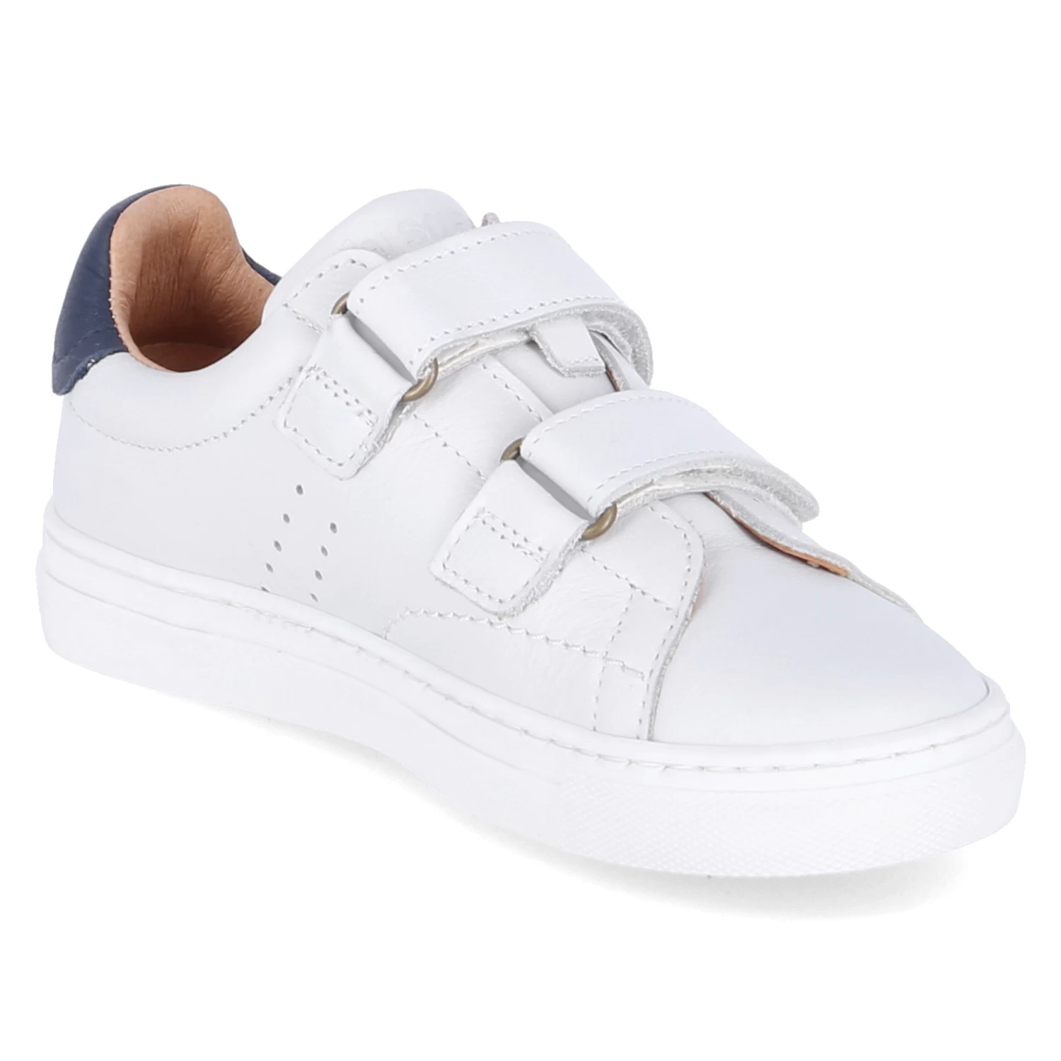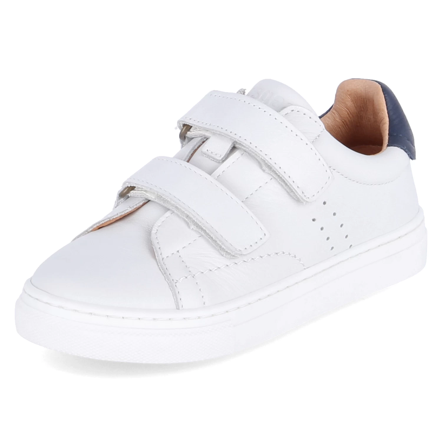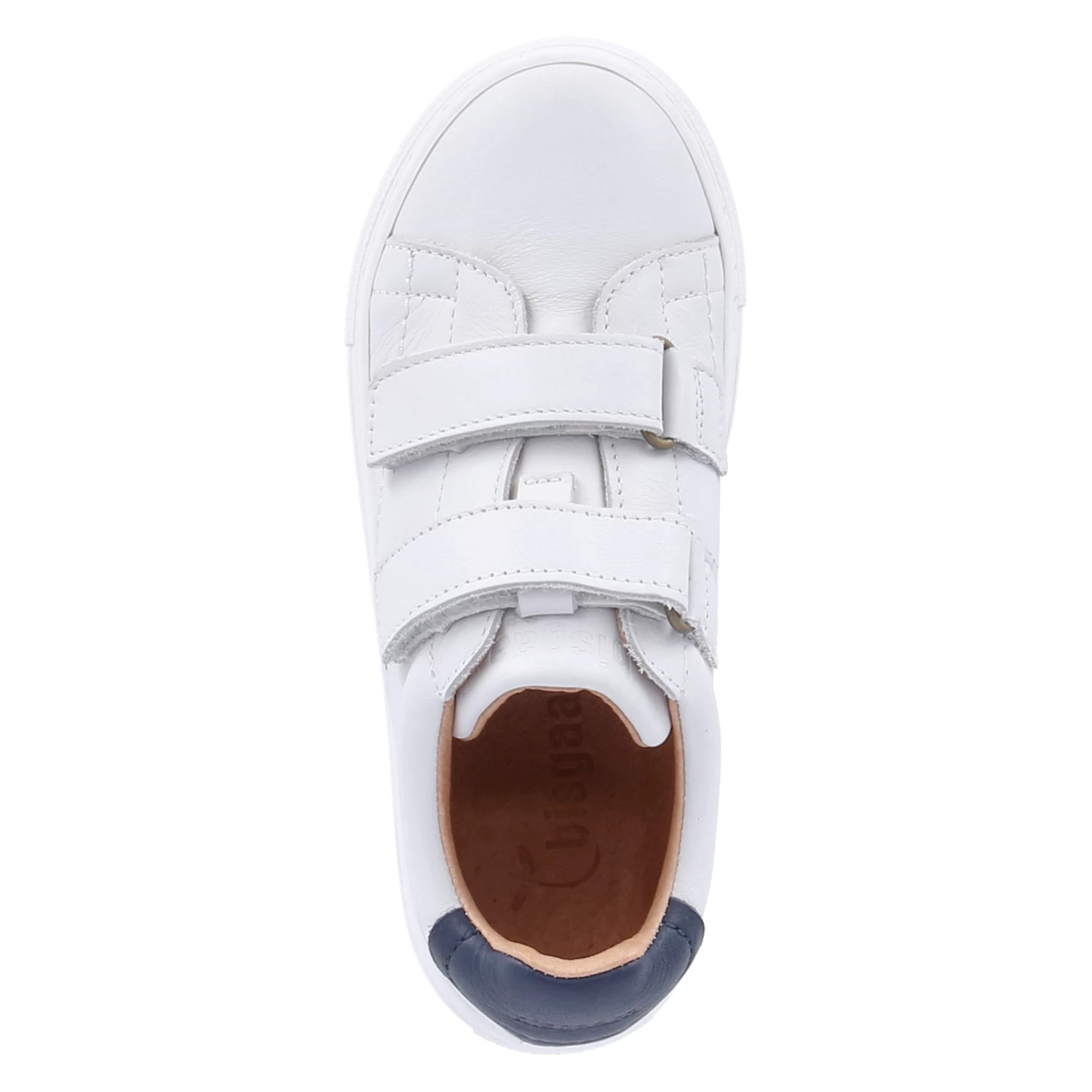 Bisgaard Kinder Klettschuhe/ Low Sneaker JAYDEN E WeiĂź Glattleder – zwei Klettriemen – gepolsterter Einstieg – seitliche Lochung – Ziernähte – Markendetails – verstärkter Fersenbereich – Lederfutter – herausnehmbare Lederdecksohle – flexible, rutschhemmende Cupsohle mit Bumper