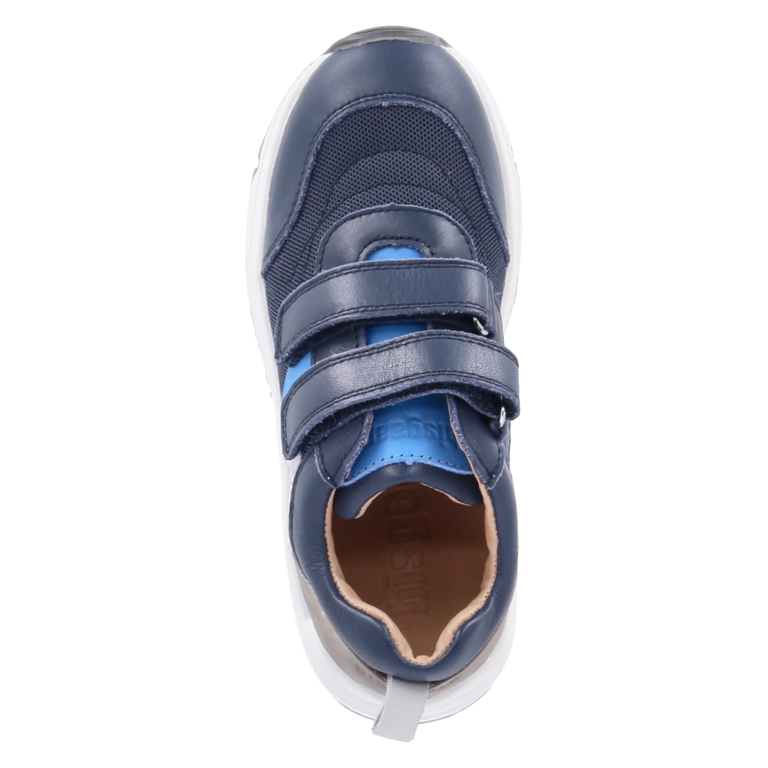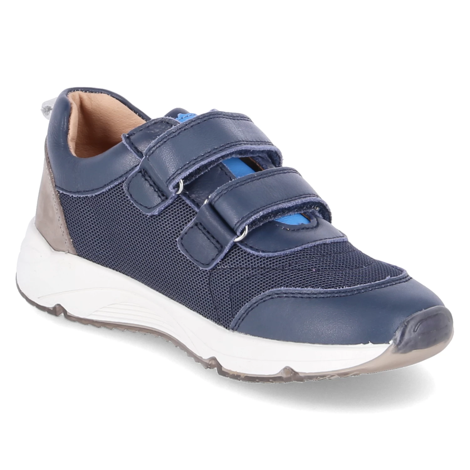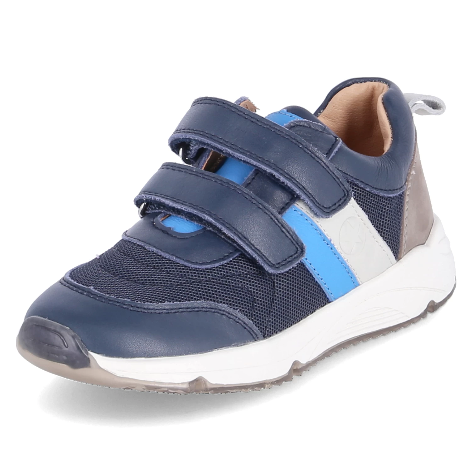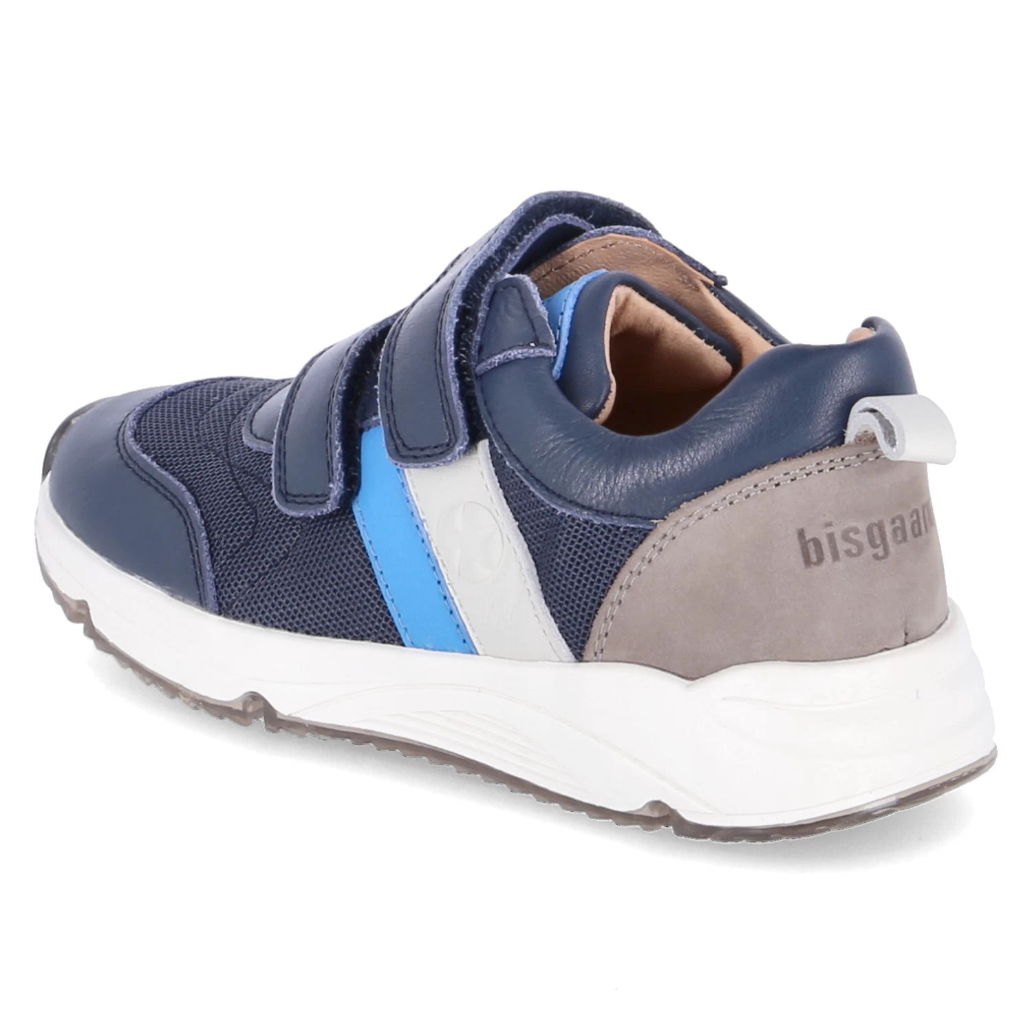 Bisgaard Kinder Klettschuhe/ Low Sneaker MATTI Blau Leder-Textil-Mix – 2 praktische KlettverschlĂĽsse – Logo auf der AuĂźenseite – zwei Streifen auf der AuĂźenseite – verstärkter Zehen- und Fersenbereich – gepolsterter Einstieg – praktische Anziehlasche – gepolsterte und herausnehmbare Lederdecksohle – profilierte Laufsohle mit rutschhemmenden Eigenschaften