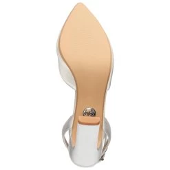Buffalo Damen Spangenpumps/ Brautschuhe JUDY ICE Silber Textil – elegantes Design – geringes Gewicht – glitzernde Schmucksteine – Knöchelriemen mit Schnalle und Dornverschluss – gepolsterte Lederdecksohle – flexible, rutschhemmende Laufsohle mit leichtem Profil – schmaler Blockabsatz