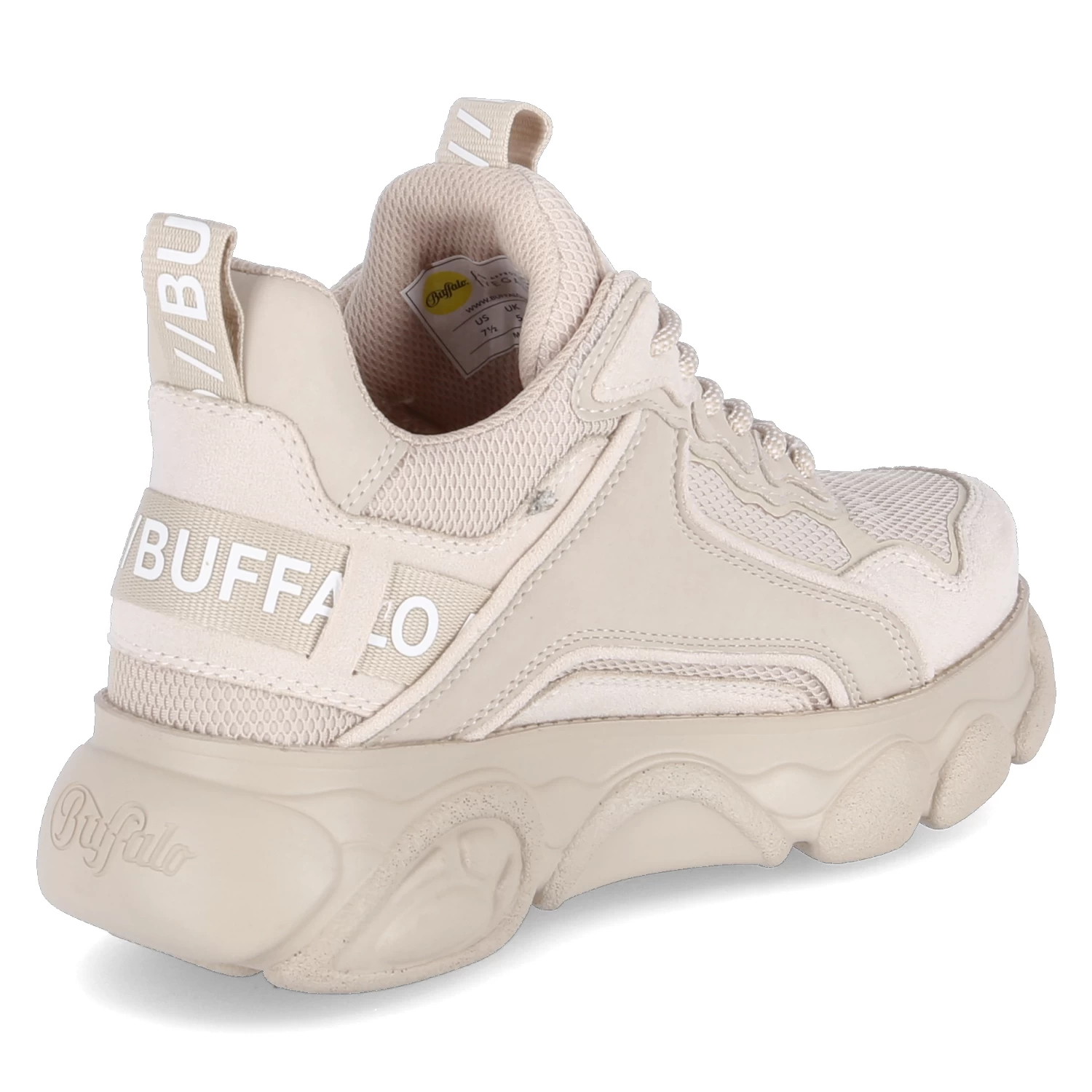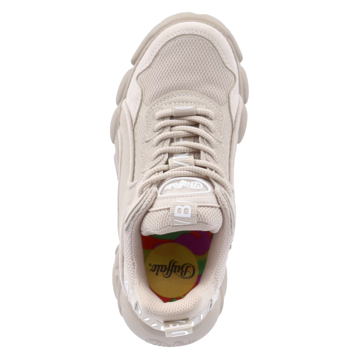 Buffalo Damen LowSneaker/ SchnĂĽrschuhe CLD CHAI Beige (cream) Textil-Synthetik-Mix – geringes Gewicht -klassischer SchnĂĽrverschluss fĂĽr optimale Anpassung – Logo auf der AuĂźenseite – breites Band mit Schriftzug im Fersenbereich – verstärkter Zehen- und Fersenbereich – gepolsterter Einstieg – praktische Anziehlaschen mit Schriftzug – gepolsterte und herausnehmbare Decksohle – Keilsohle mit Logo im Fersenbereich – Vegan