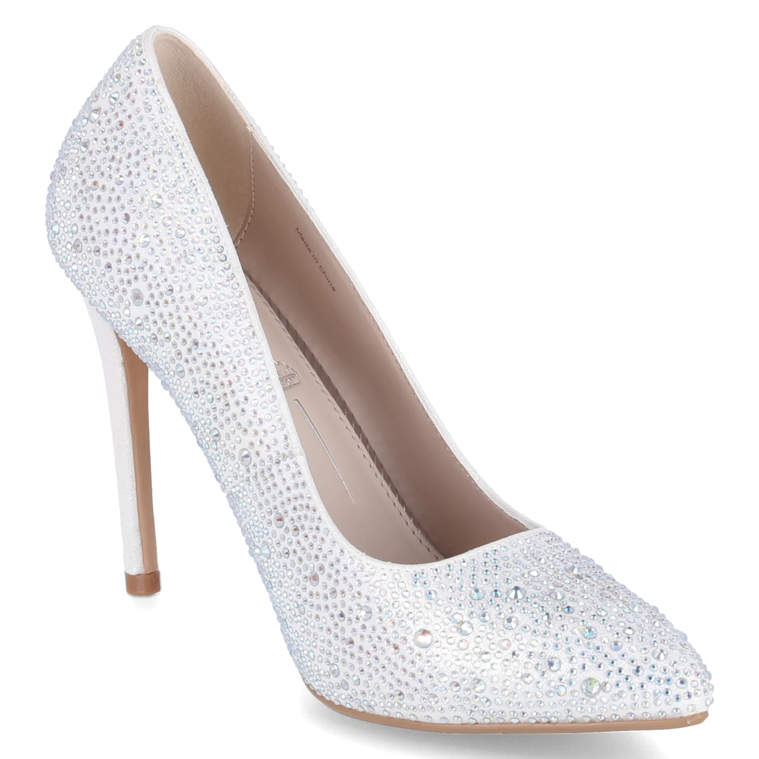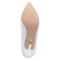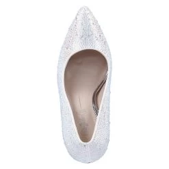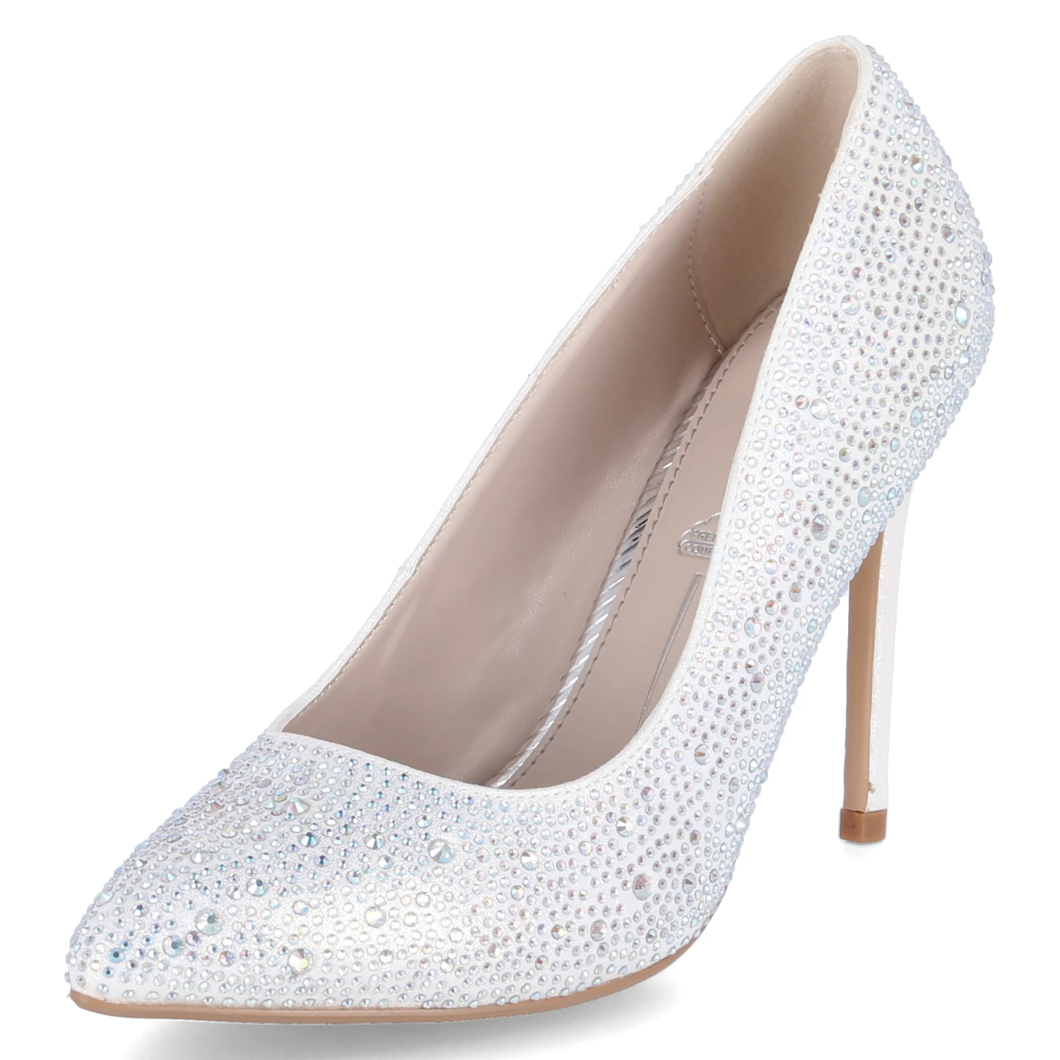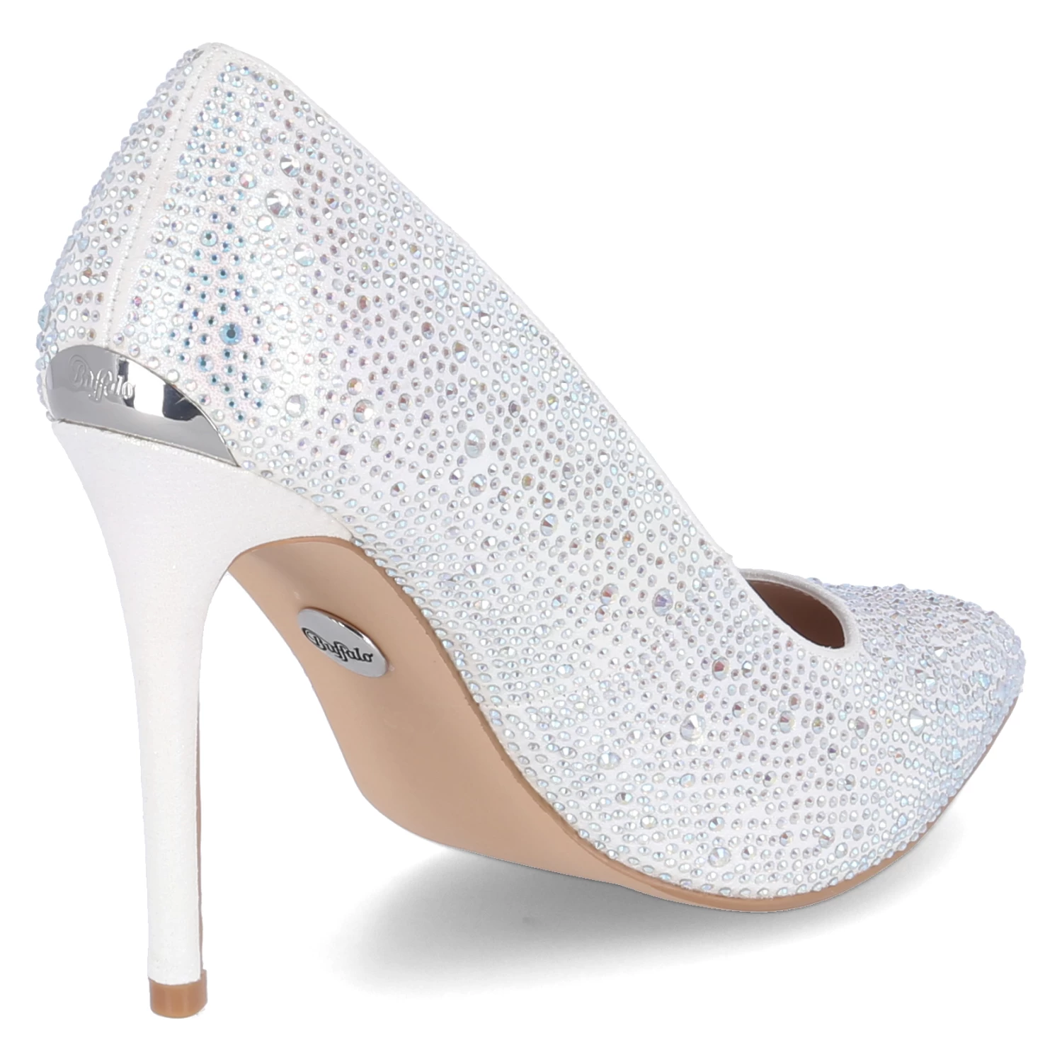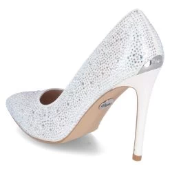 Buffalo Damen Pumps JULIETTE ICE WeiĂź-Silber Textil – vegan – glitzernder Steinbesatz – gepolsterte Decksohle – schimmernder, hoher Stilettoabsatz (High Heel)