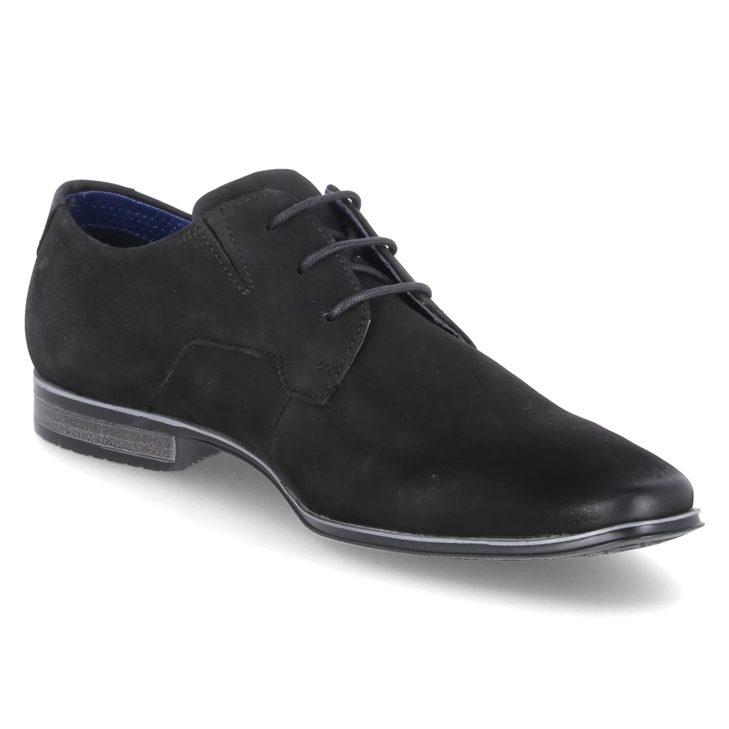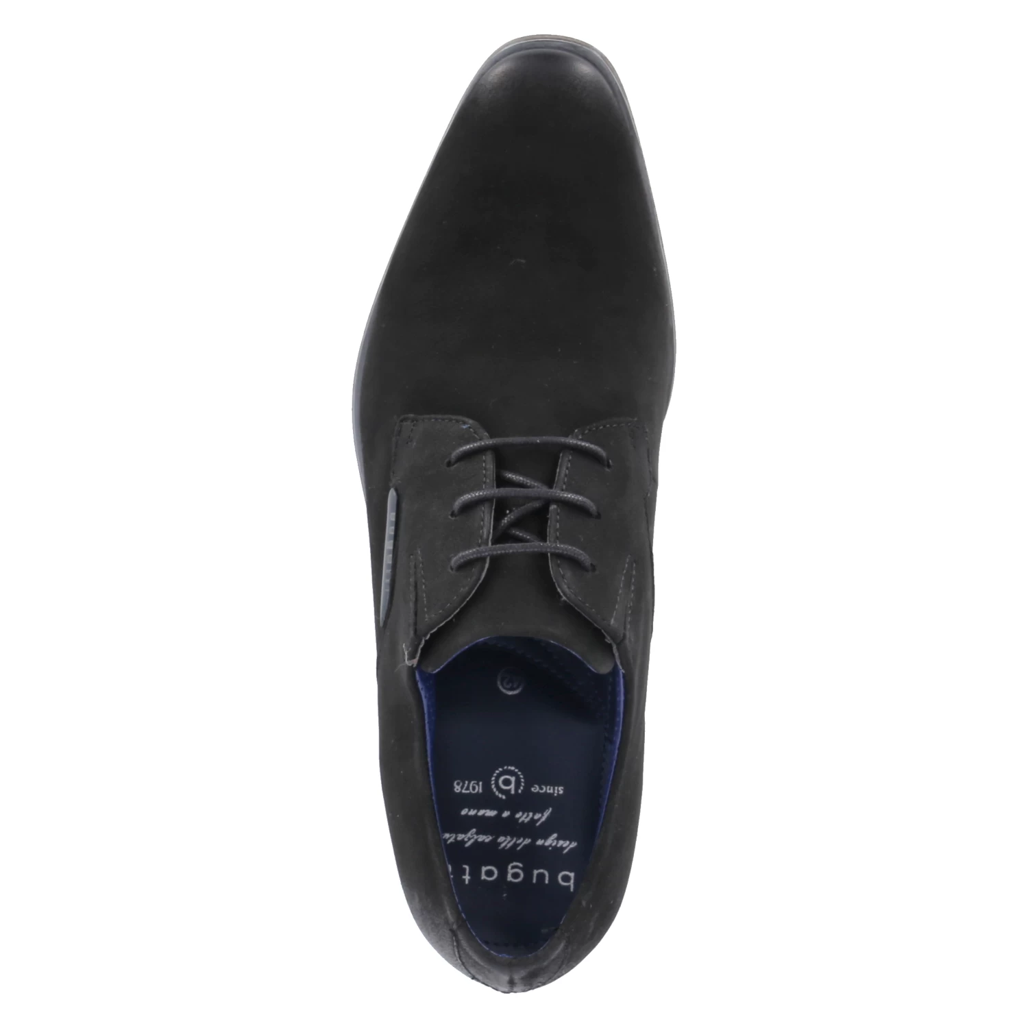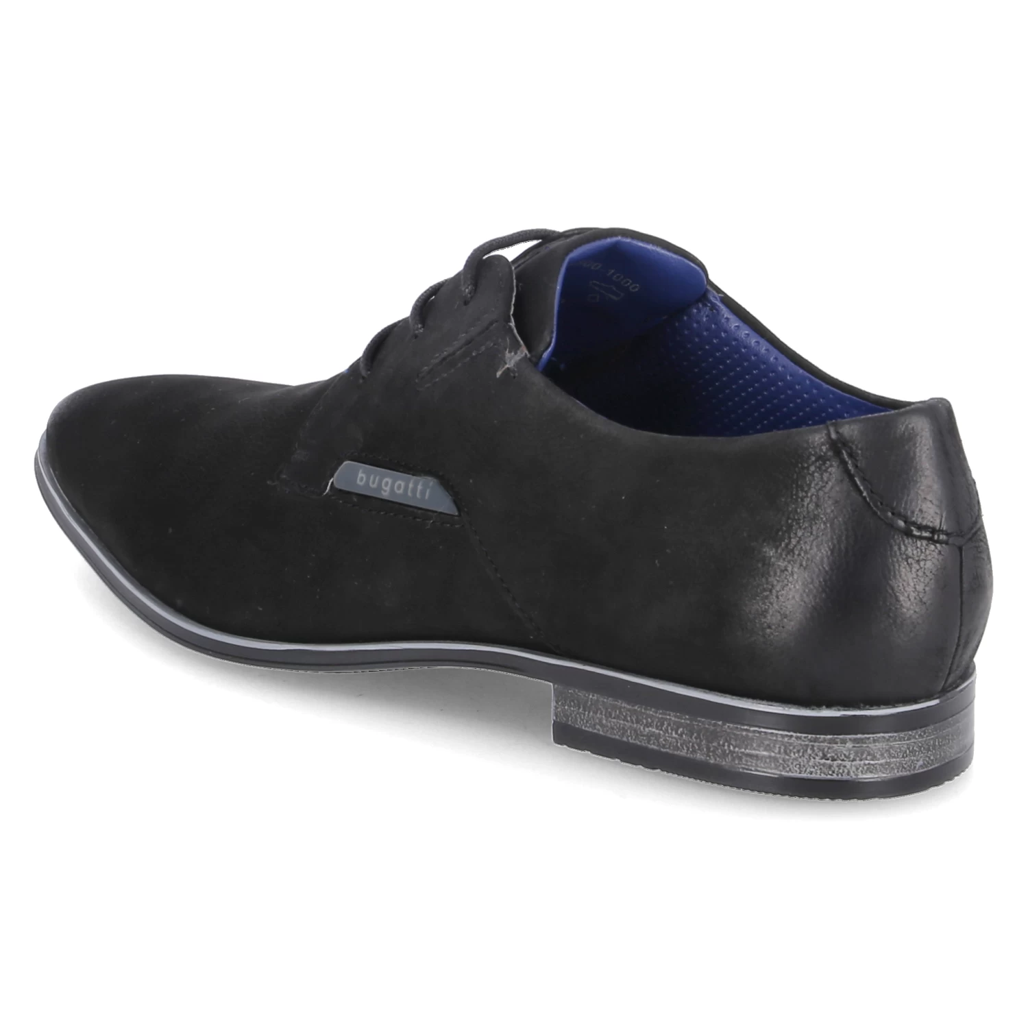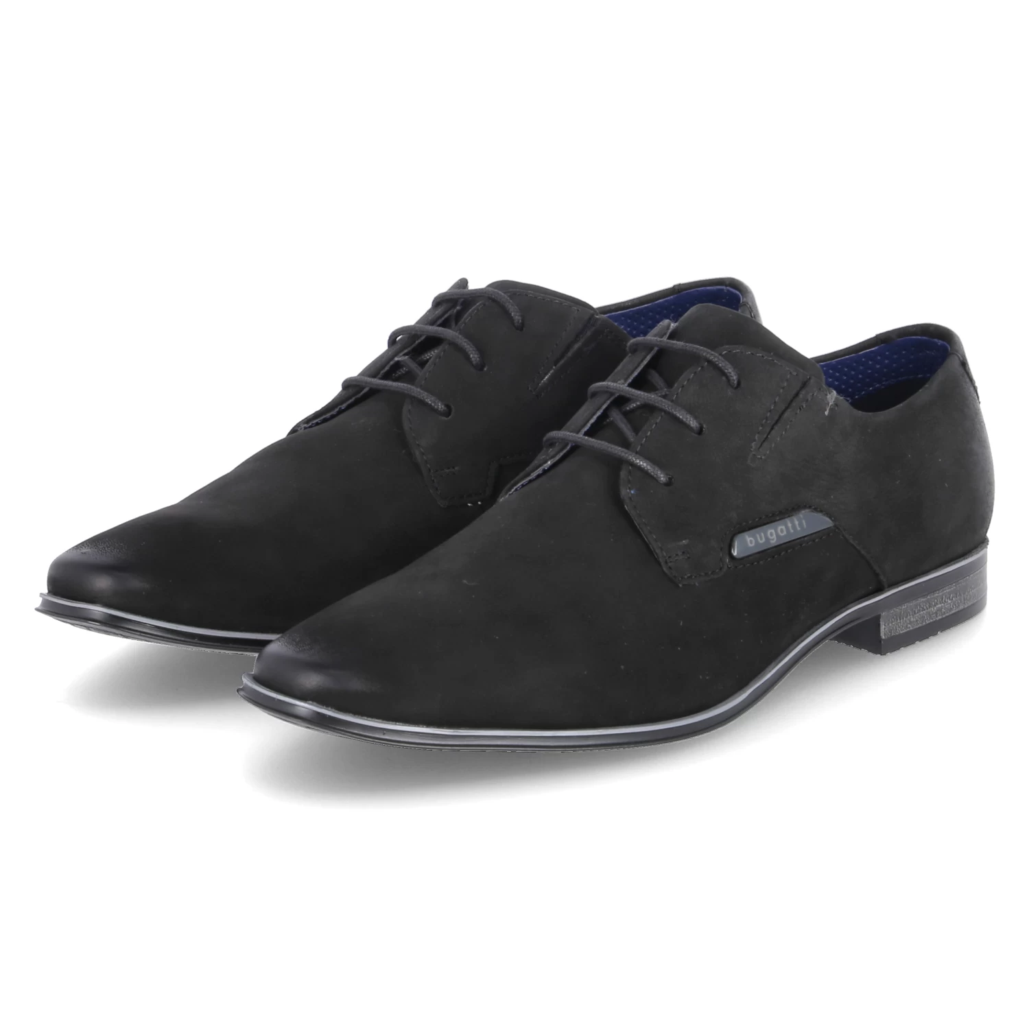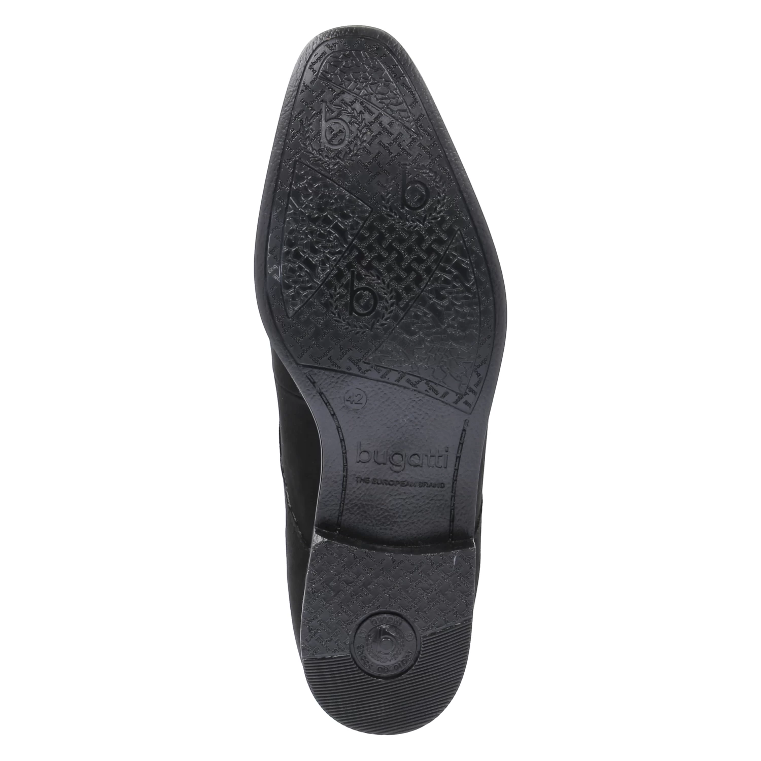 Bugatti Herren SchnĂĽrschuhe/ Businessschuhe/ Halbschuhe MORINO I Schwarz Rauleder – zwei Elastikkeile – weicher Einstiegsbereich – gepolstertes FuĂźbett – flexible Laufsohle mit rutschhemmenden Elementen – Seitenlabel -Blockabsatz