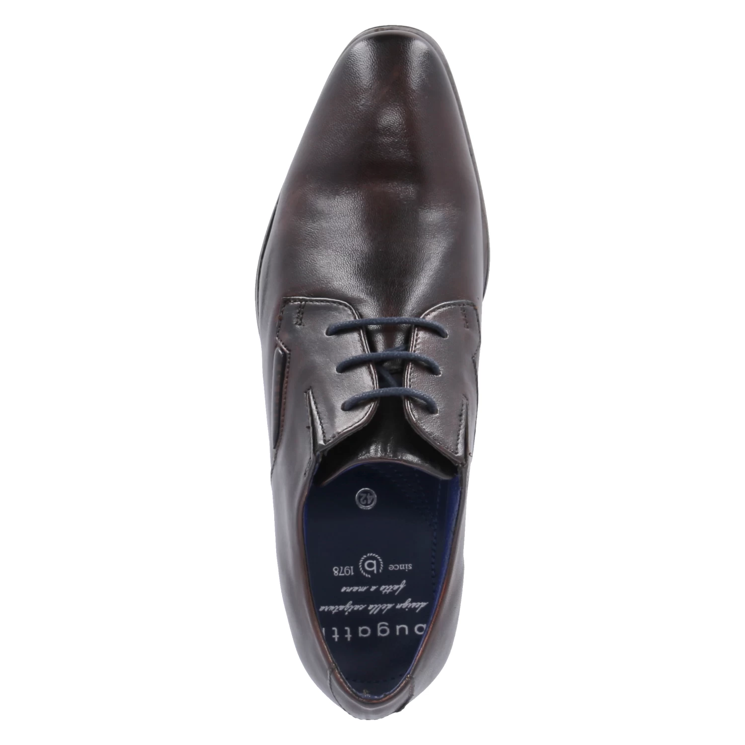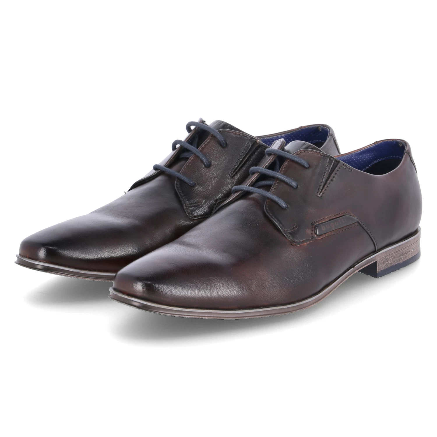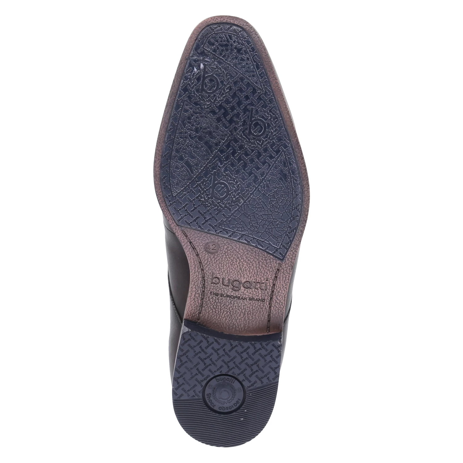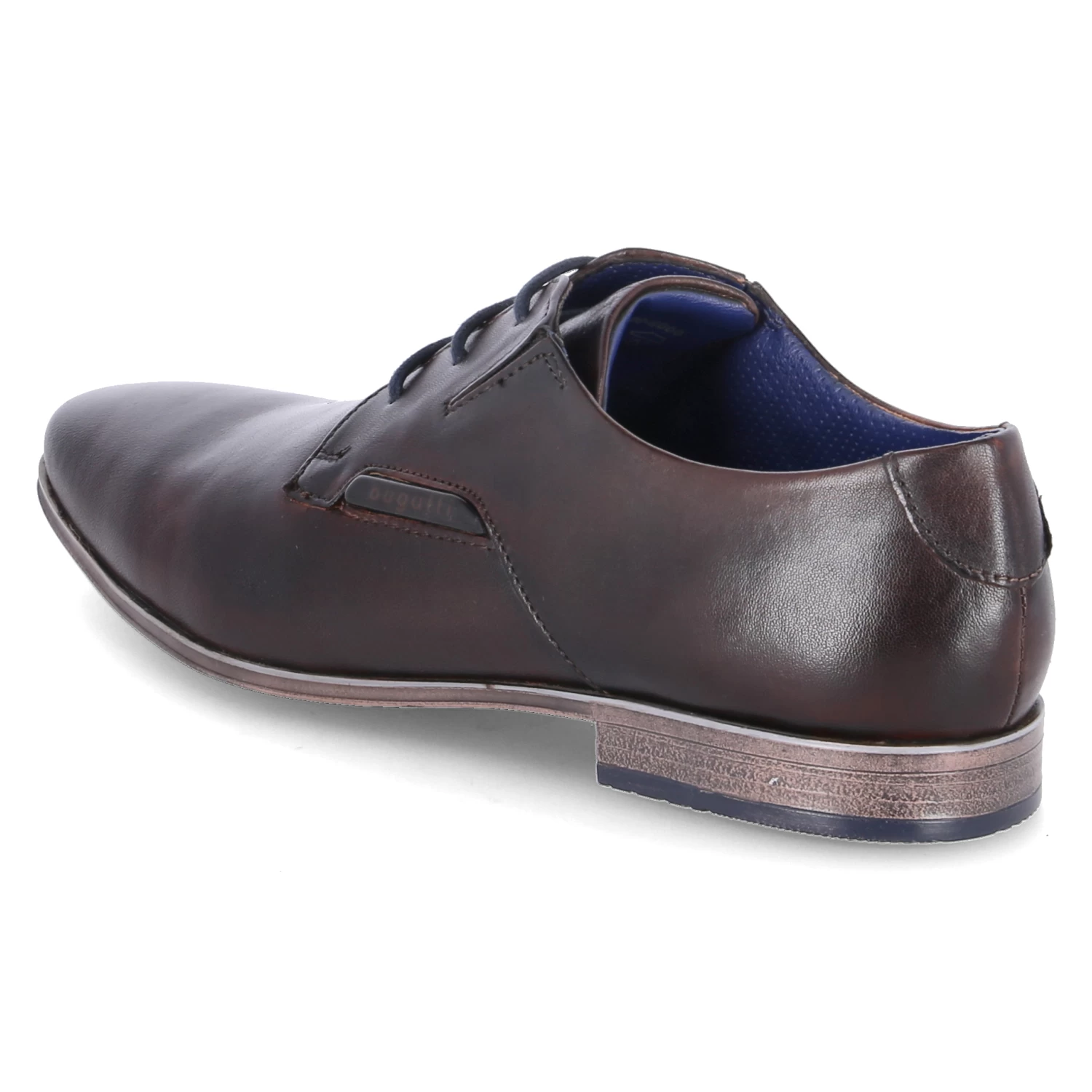 Bugatti Herren SchnĂĽrschuhe/ Businessschuhe/ Halbschuhe MORINO I Braun Glattleder – zwei Elastikkeile – weicher Einstiegsbereich – gepolstertes FuĂźbett – flexible Laufsohle mit rutschhemmenden Elementen – Seitenlabel -Blockabsatz