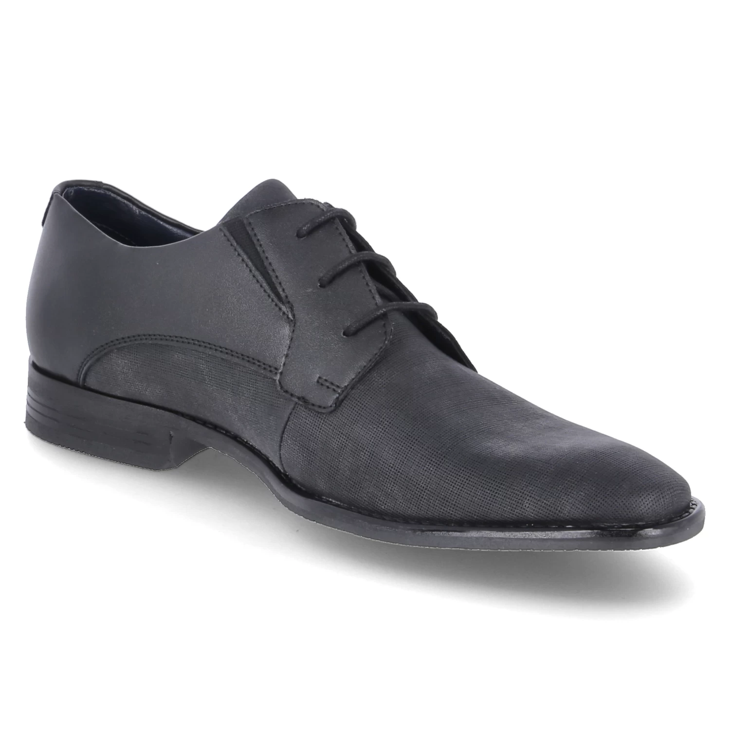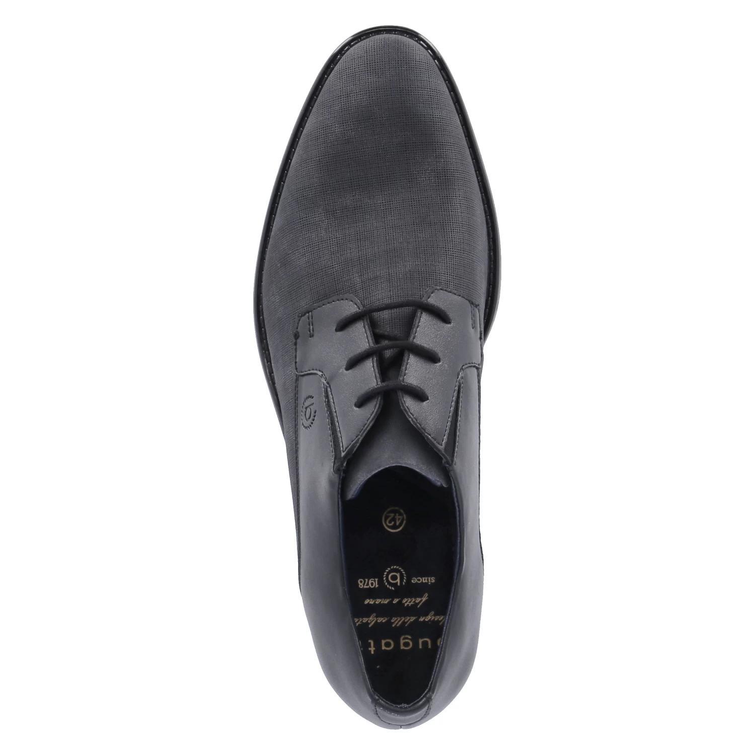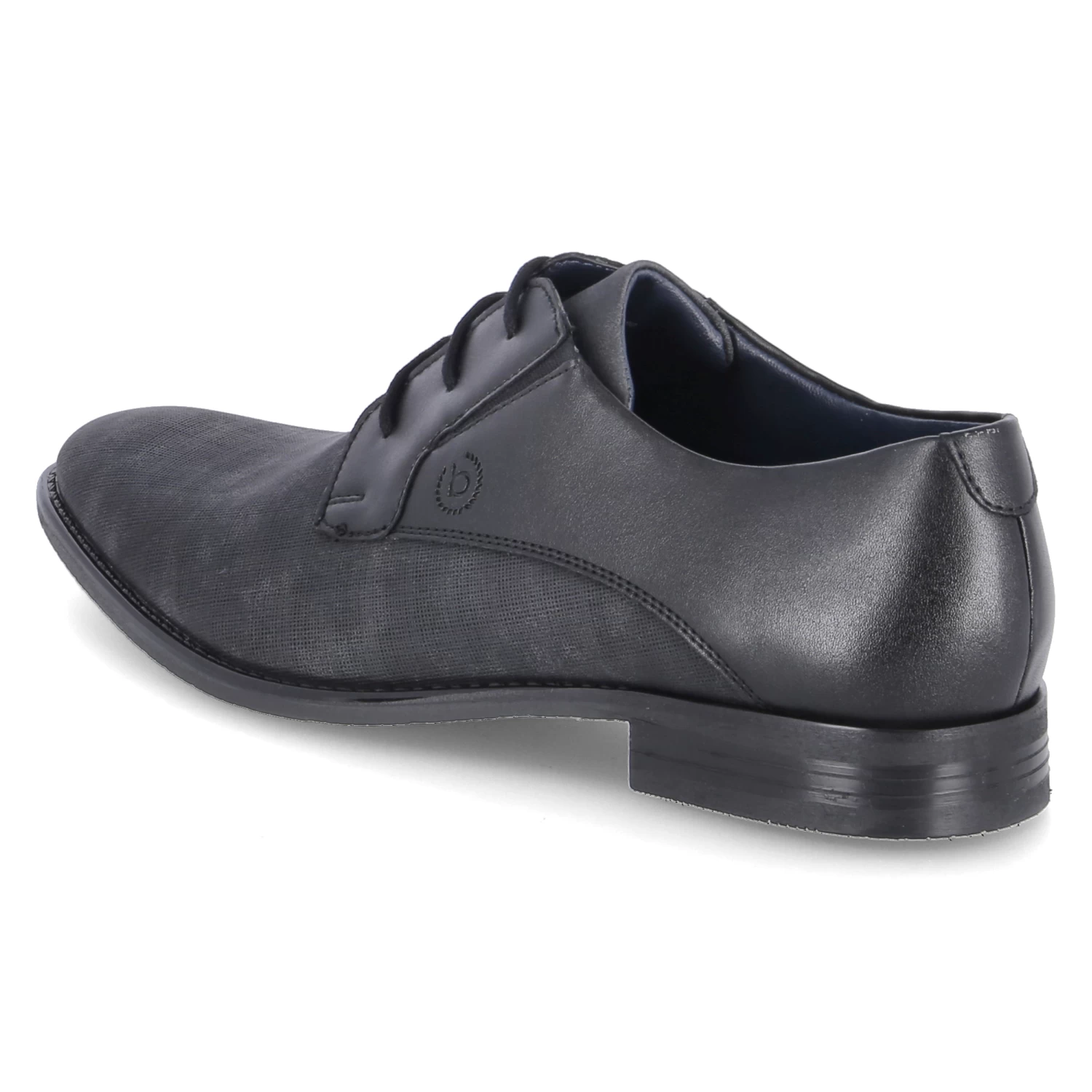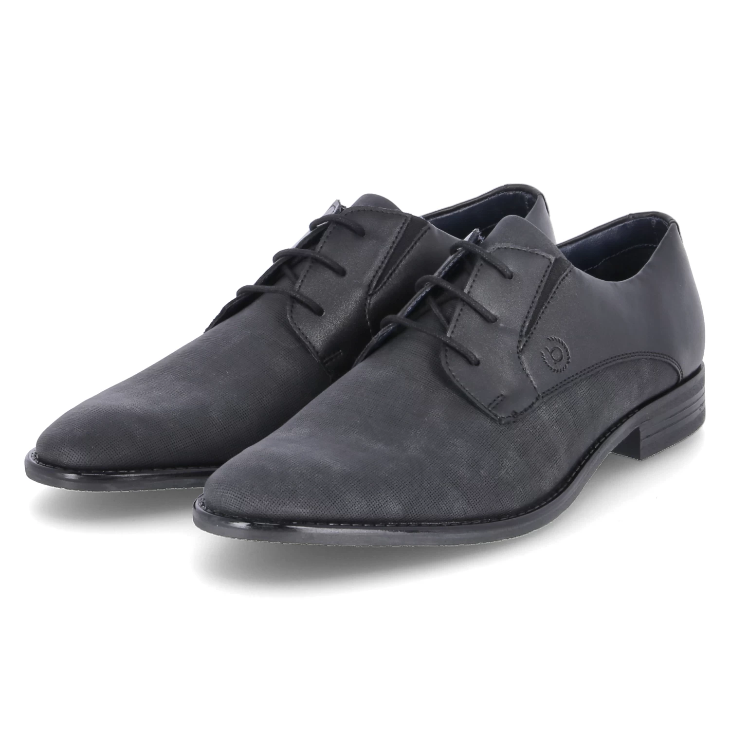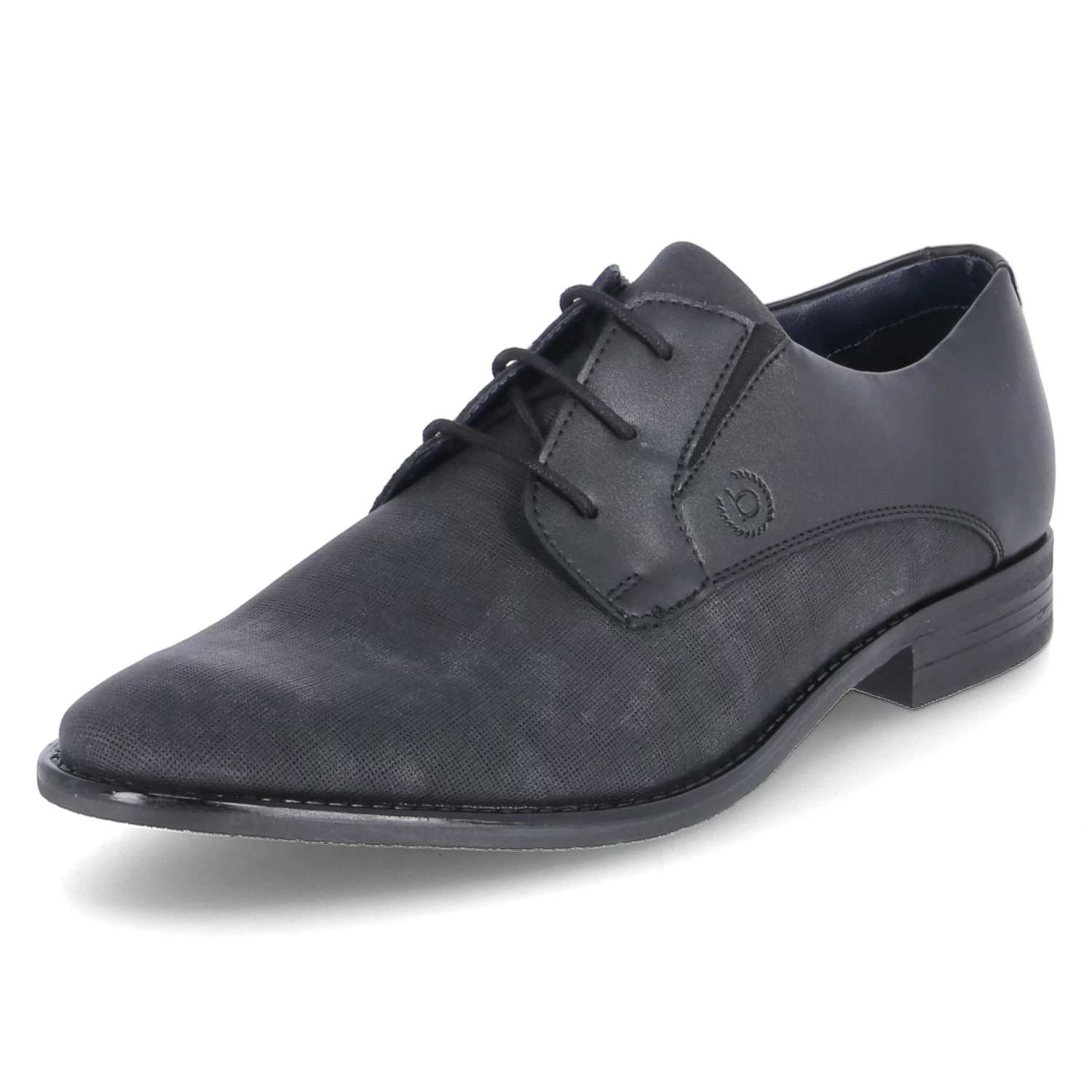 Bugatti Herren SchnĂĽrschuhe/ Businessschuhe/ Halbschuhe RINALDO ECO Schwarz Kunstleder – geprägter Spannbereich – verstärkte Ferse – Ziernähte – gepolsterte Decksohle – dezente, seitliche Elastikkeile – flexible, rutschhemmende Laufsohle mit leichtem Profil