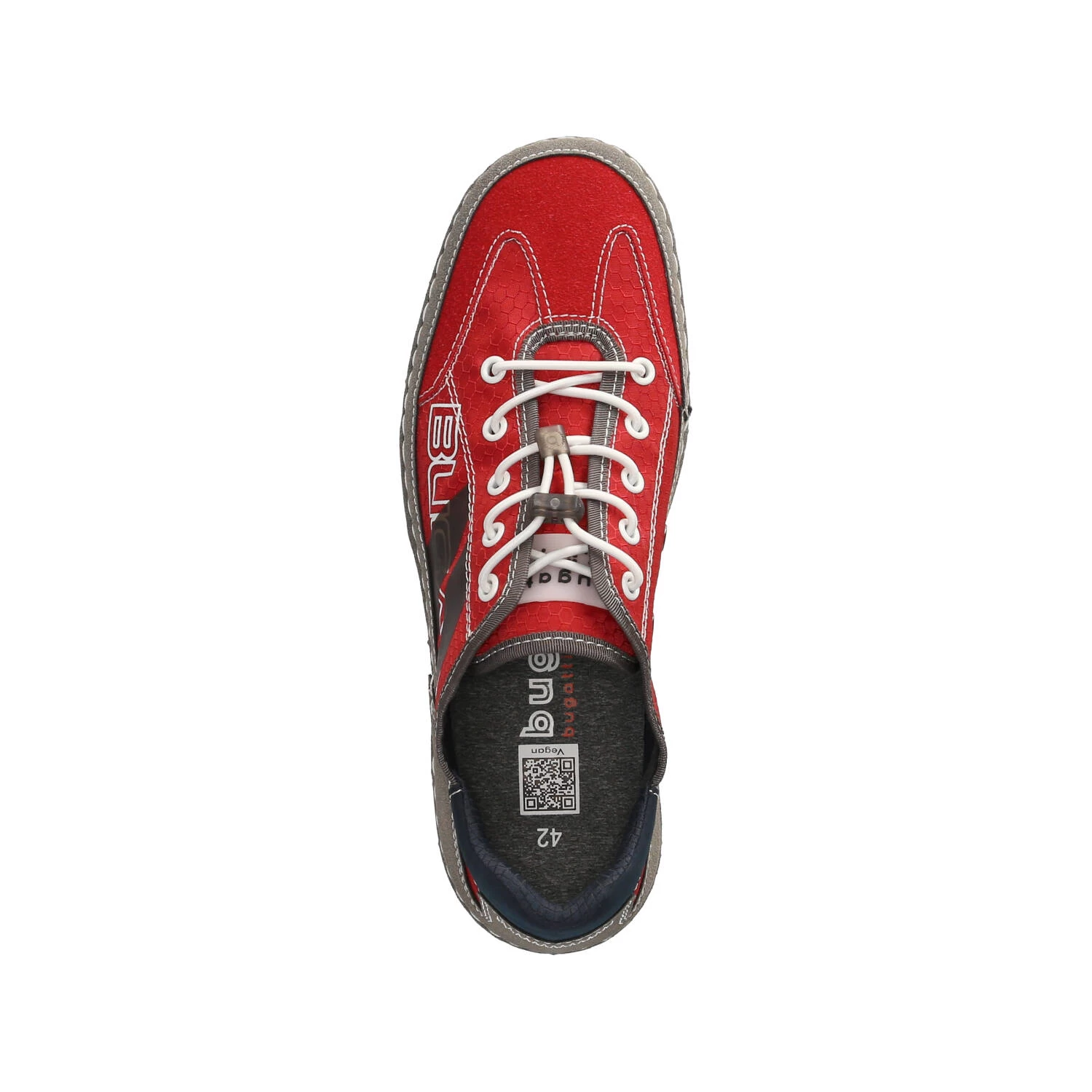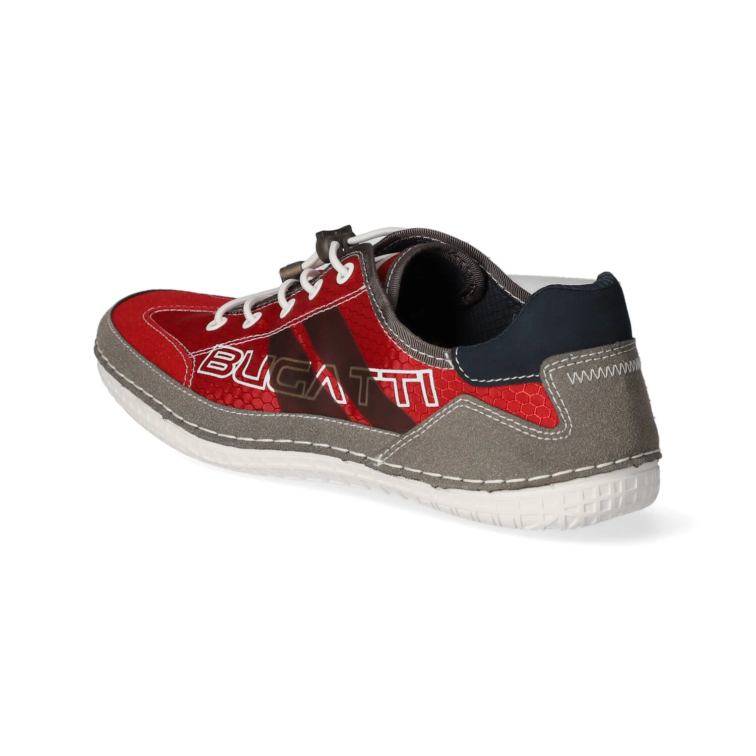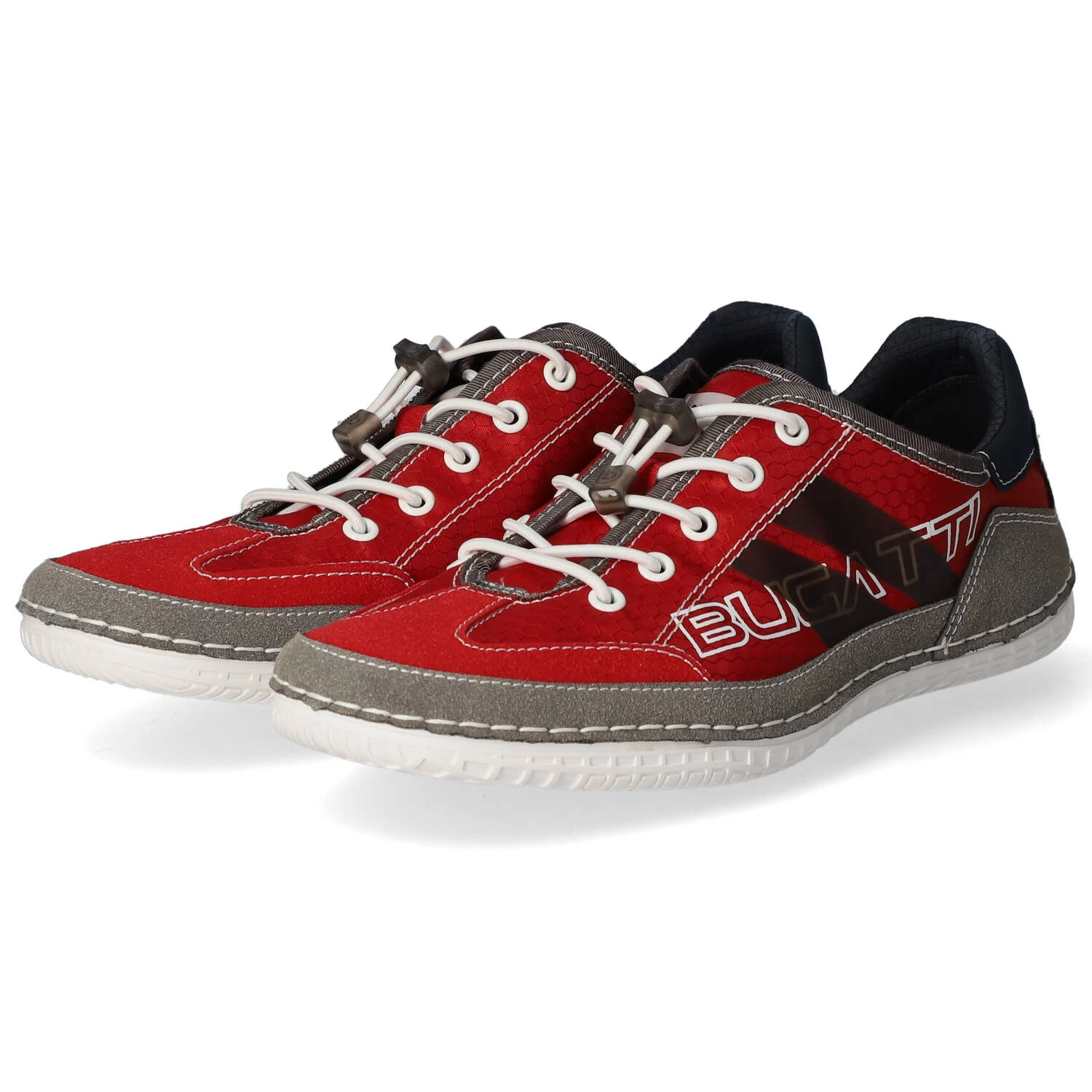 Bugatti Herren Low Sneaker BIMINI Rot Textil-Synthetik-Mix – sportliches Design – modische Ziernähte – typische Markendetails – Schnellverschluss – verstärkter Zehen- und Fersenbereich – leichtes Textilfutter – gepolsterte Wechseldecksohle – flexible, rutschhemmende Profilsohle