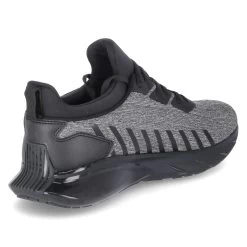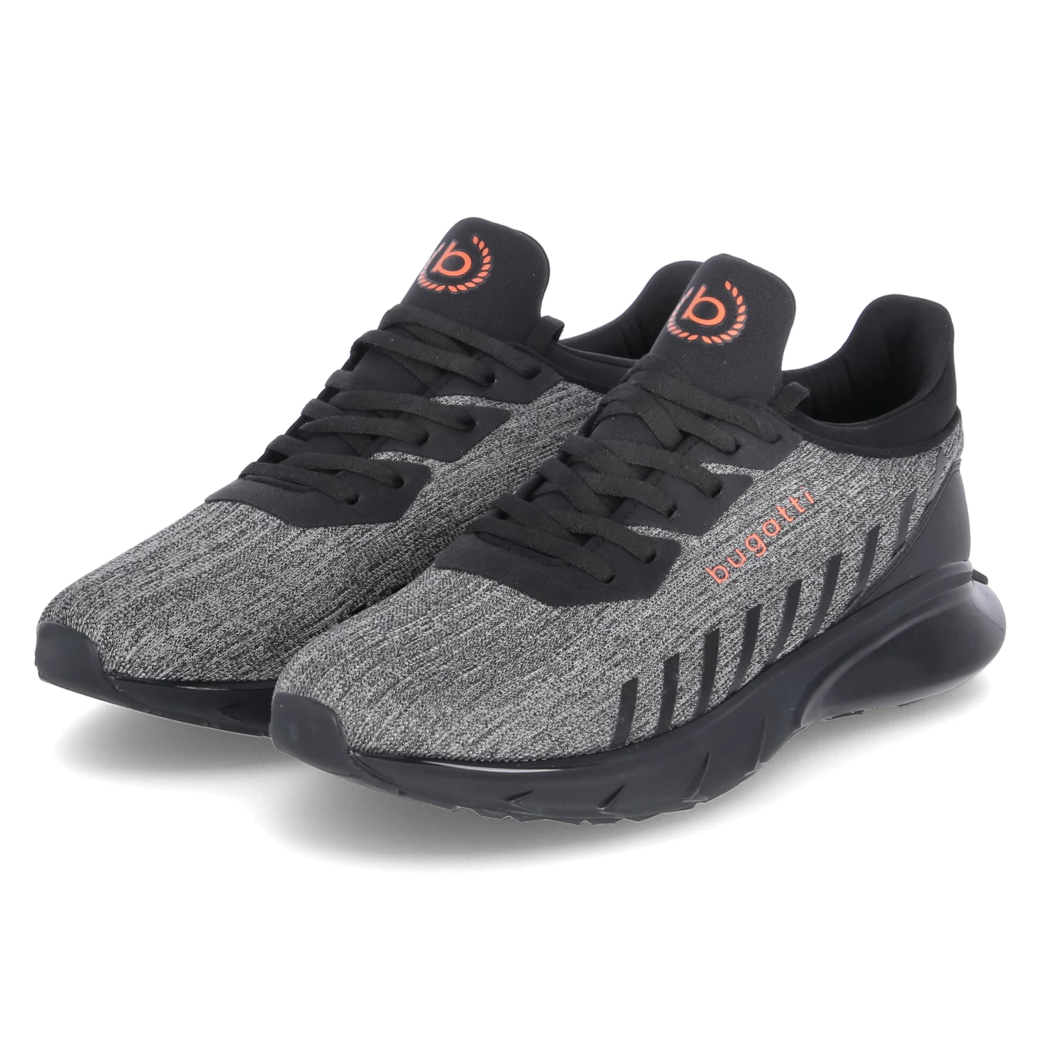 Bugatti Herren SchnĂĽrschuhe/ Low Sneaker ONDRAY Grau-Schwarz Textil – verstärkter Fersenbereich – gepolsterter Einstieg – gelabelt – gepolstertes WechselfuĂźbett – Zierstreifen – rutschhemmende Laufsohle