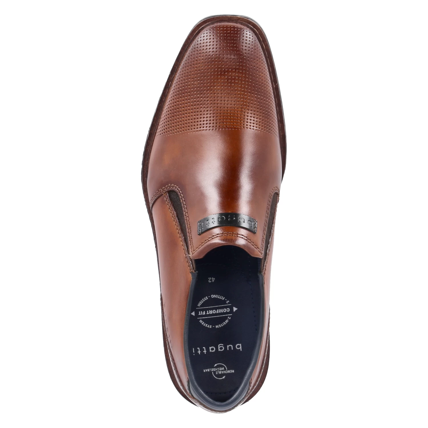 Bugatti Herren Slipper MAIK EXKO Braun Leder – geprägtes Vorderteil – Markendetails – Stretcheinsätze seitlich vom Spann – herausnehmbare, gepolsterte Decksohle – flexible, rutschhemmende Laufsohle – verstärkte Ferse