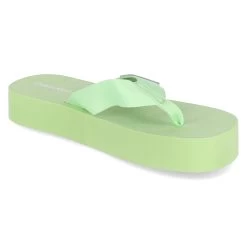 Calvin Klein Jeans Damen Pantoletten/ Zehentrenner GrĂĽn Textil – breiter Riemen mit groĂźem Frontlogopatch – geringes Gewicht – trendige Plateausohle mit weiĂźem Markenschriftzug