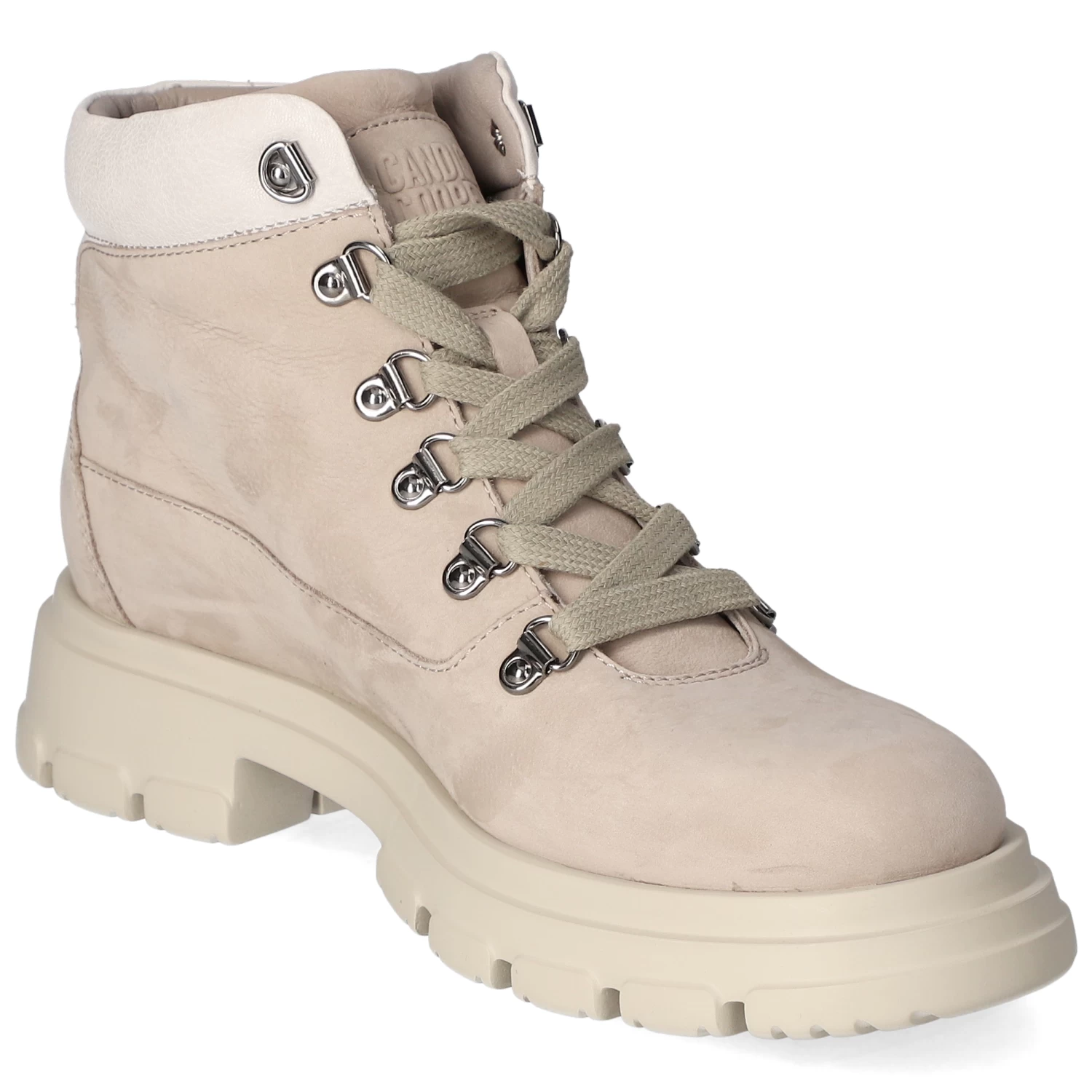 Candice Cooper Damen Stiefeletten CHADO HIKE Grau Rauleder – SchnĂĽrung – gelabelt – metallische Details – gepolsterter Einstieg – Lederfutter – herausnehmbare, gepolsterte Lederdecksohle – verstärkter Fersenbereich – leicht rutschhemmende Profillaufsohle – ca. 4 cm Blockabsatz