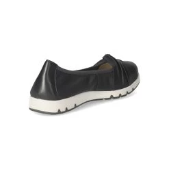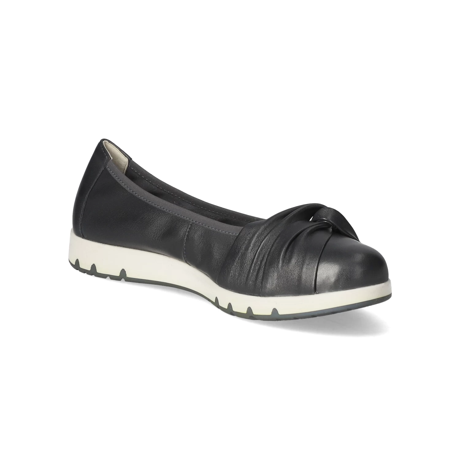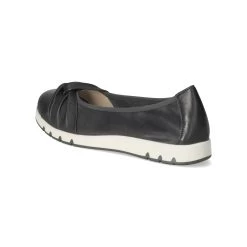 Caprice Damen Ballerinas Blau Glattleder – modisch geknotete Riemchen – verstärkte Ferse – gepolsterte Lederdecksohle – flexible, rutschhemmende Laufsohle mit leichtem Profil – kann bei entsprechender Beleuchtung schwarz wirken