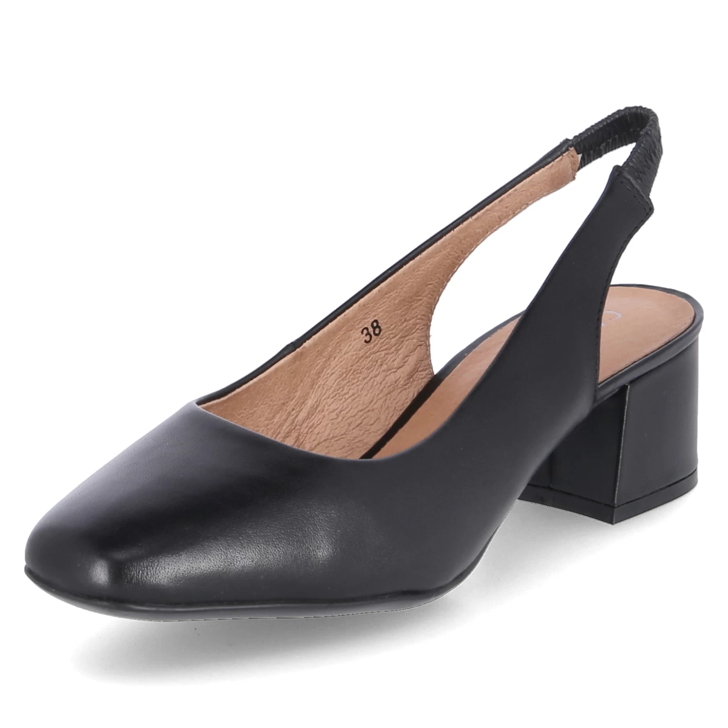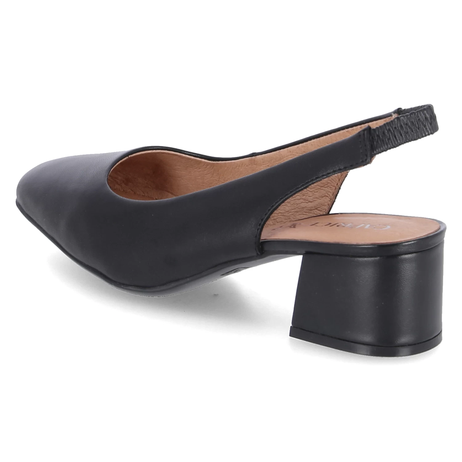 Caprice Damen Sling- Pumps Schwarz Glattleder – klassisches Design – Sling mit Elastikeinsatz – ca. 5 cm hoher Blockabsatz – Lederfutter und ~fuĂźbett – flexible Laufsohle