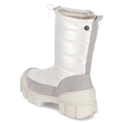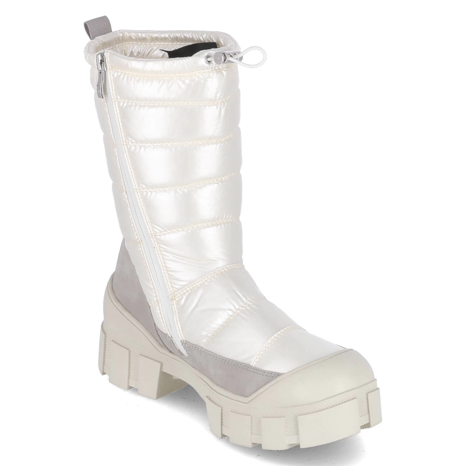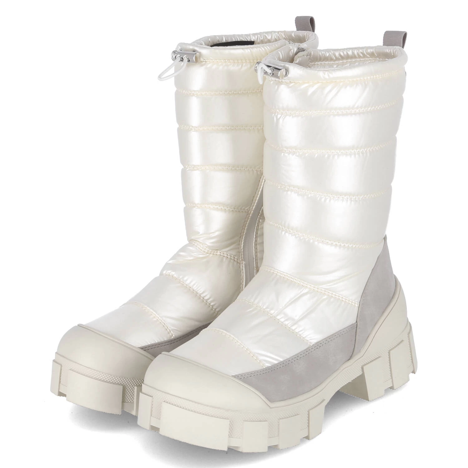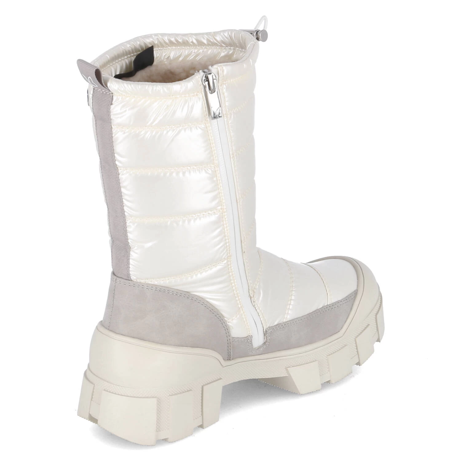 Caprice Damen Winterstiefeletten/ Snowboots WeiĂź Synthetik – wasserabweisend und atmungsaktiv – vegan – wattierter Querstepp – ReiĂźverschluss – warmes Textilfutter – starke, rutschhemmende Profillaufsohle – gepolstertes WechselfuĂźbett