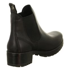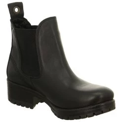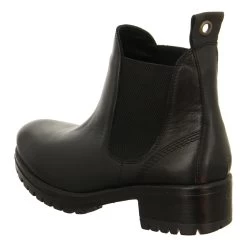 Empor Damen Stiefeletten/ Chelsea Boots Schwarz Glattleder – Elastikeinsätze am Schaft – Ziernähte – leichtes Futter fĂĽr kĂĽhle Tage – Anziehlasche mit Niete – verstärkter Zehen- und Fersenbereich – gepolstertes Decksohle – rutschhemmende Laufsohle – ca. 4 cm Blockabsatz