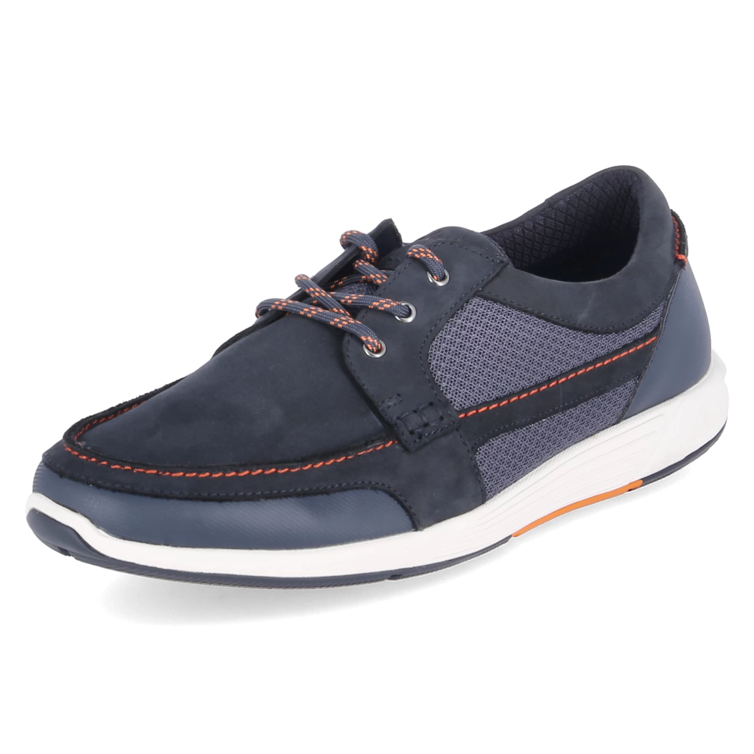 Clarks Herren Halbschuhe/ sportliche Schnürschuhe SAIL WEST Blau Leder-Textil-Mix – Ziertreifen – dezent gelocht – verstärkter Zehen- und Fersenbereich – gepolsterter Einstieg – gelabelt – gepolstertes Wechselfußbett – flexible, rutschhemmende Laufsohle
