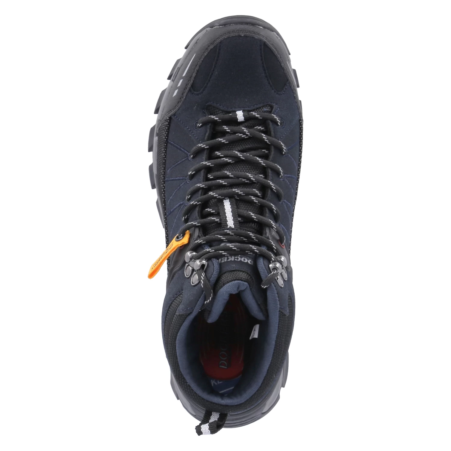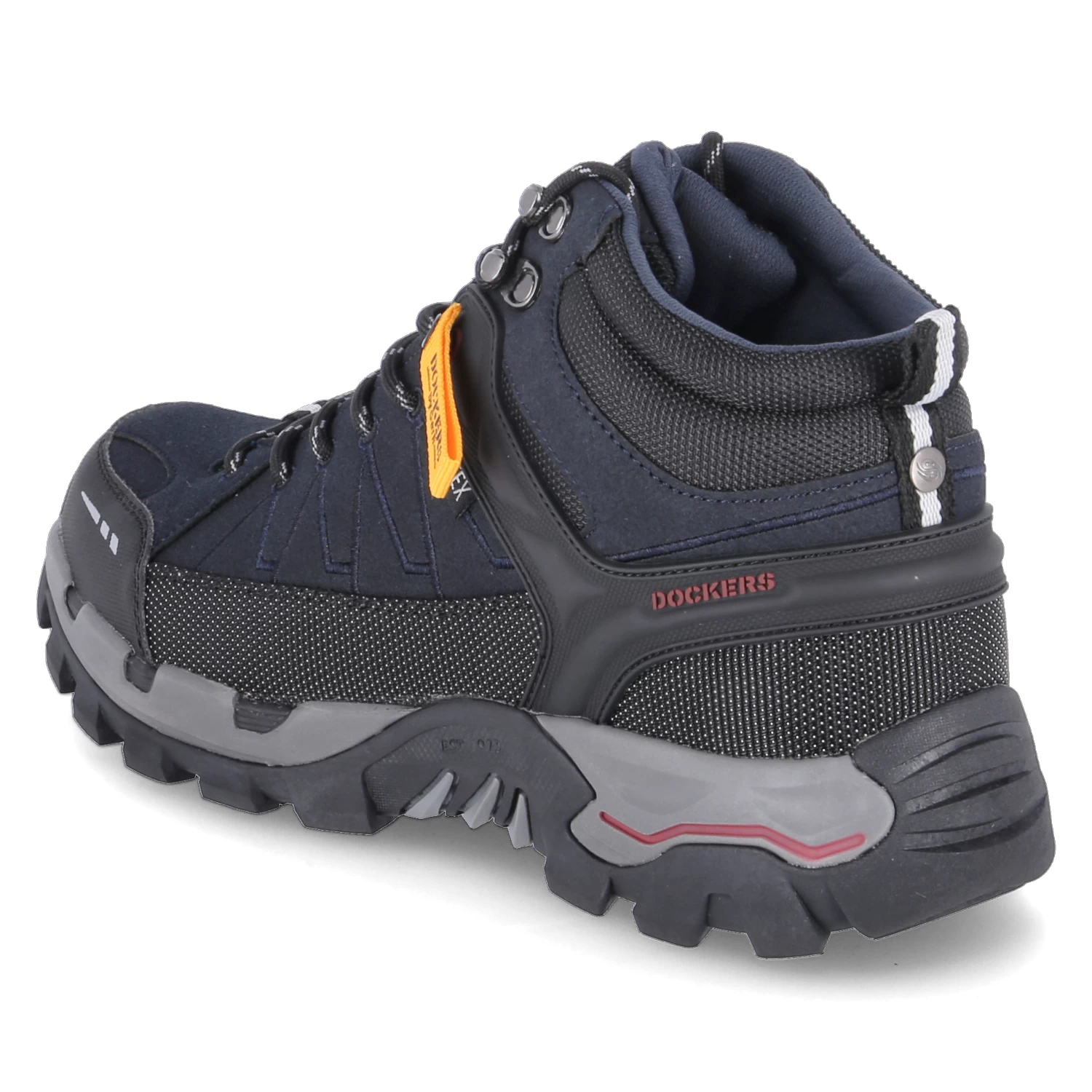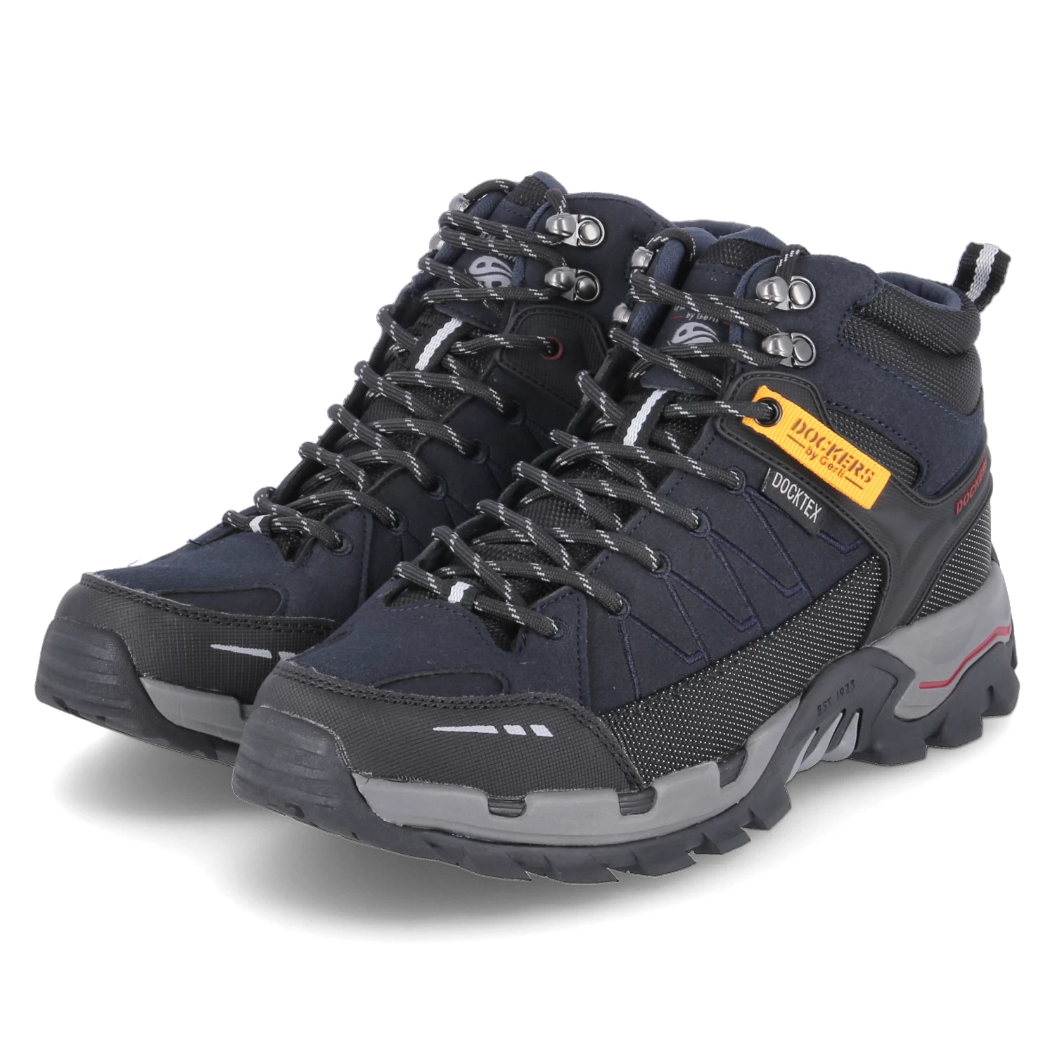 Dockers Herren Outdoorschuhe/ SchnĂĽrboots Blau/Schwarz Textil-Synthetik-Mix – geringes Gewicht – gepolsterter Einstieg – gepolstertes WechselfuĂźbett – verstärkter FuĂźrahmen – rutschhemmende Profillaufsohle – Anziehlasche – Docktex (wasserfest, winddicht, isolierend, atmungsaktiv)