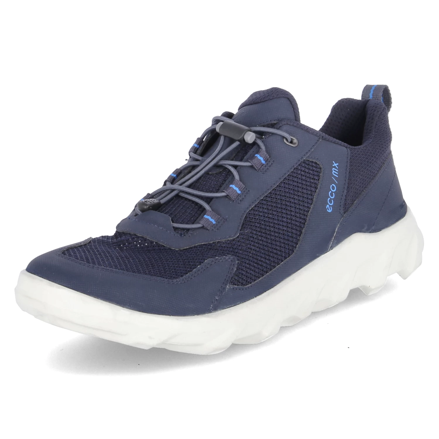 Ecco Herren Low Sneaker MX M Blau Textil – sportliches Design – Schnellverschluss – Anziehlasche – weiches Textilfutter – gepolsterte Wechseldecksohle – verstärkter Zehen- und Fersenbereich – stabile, rutschhemmende Laufsohle mit leichtem Profil