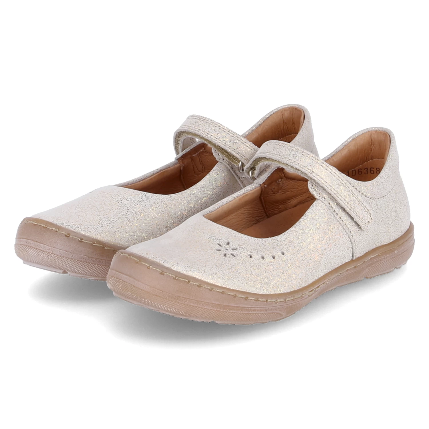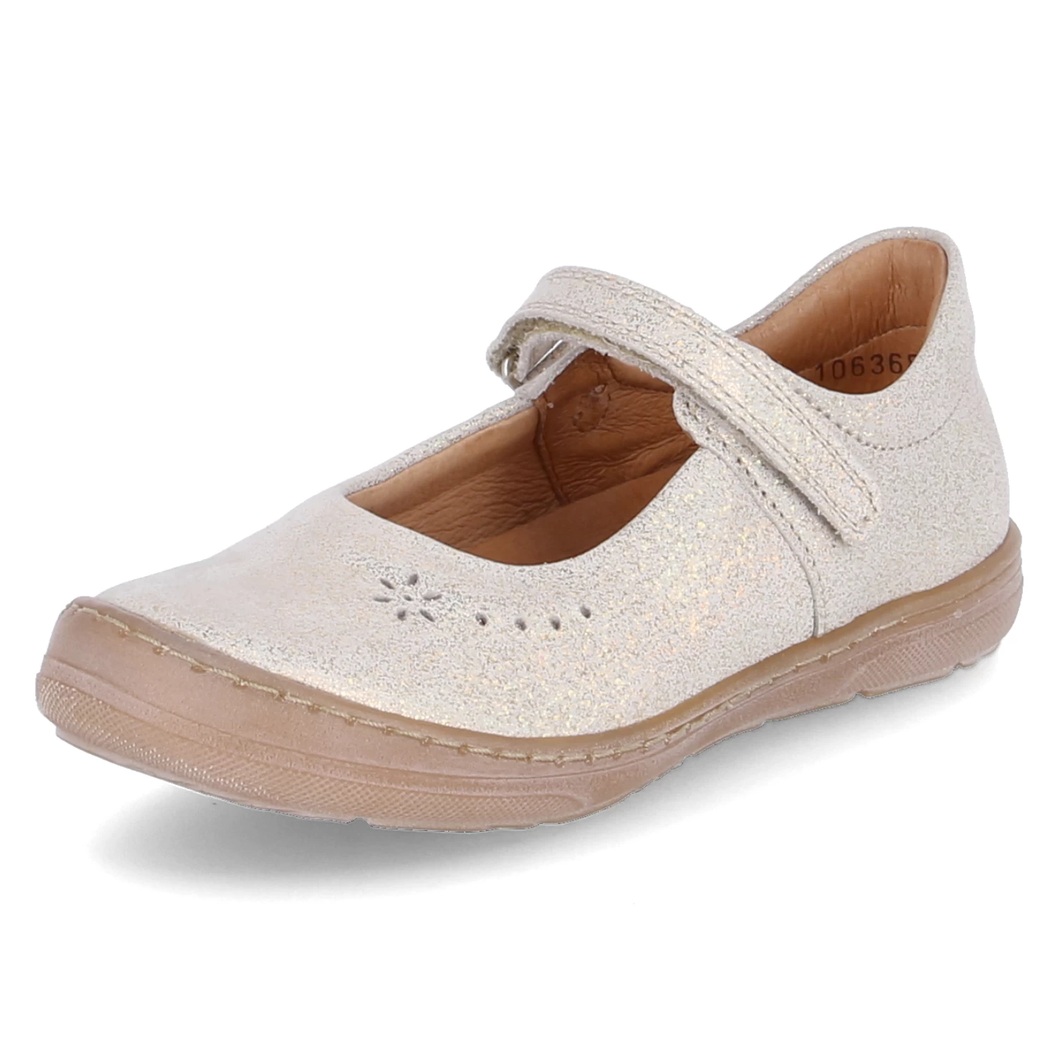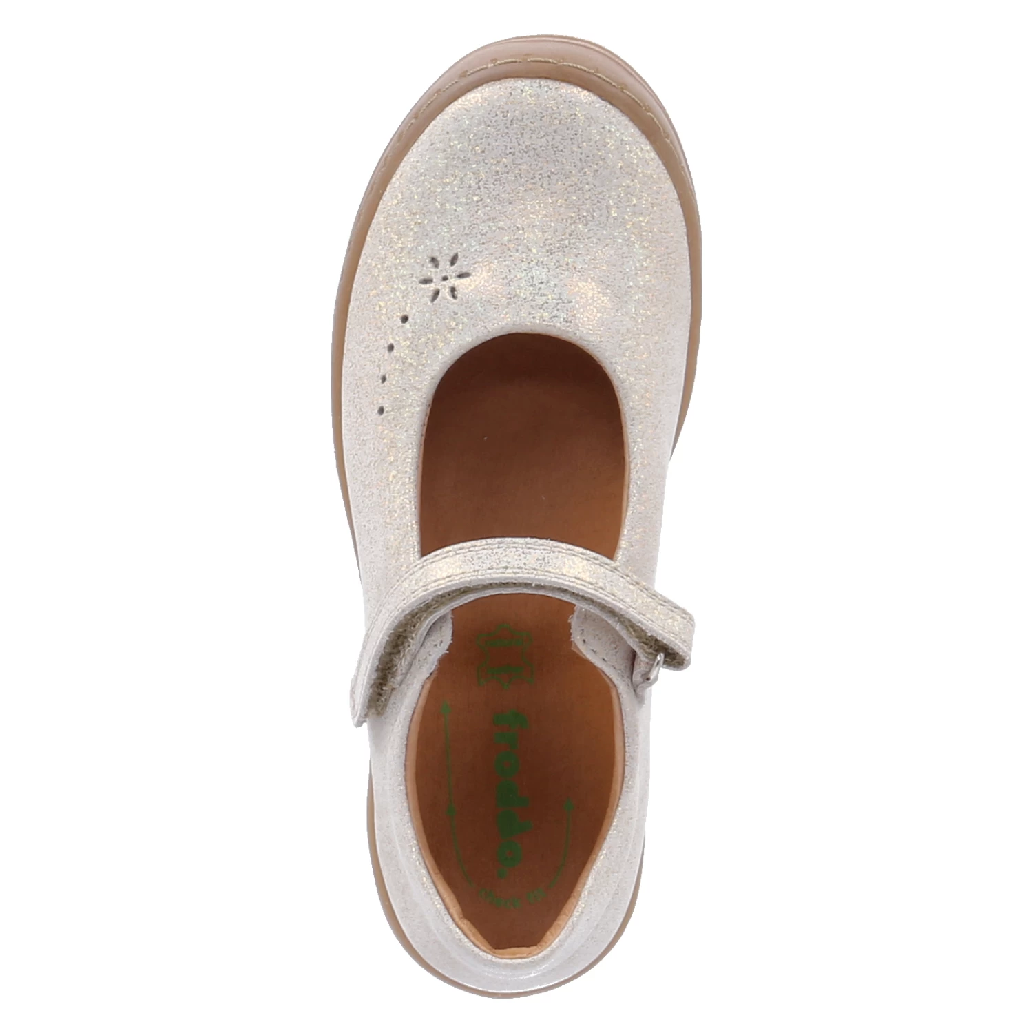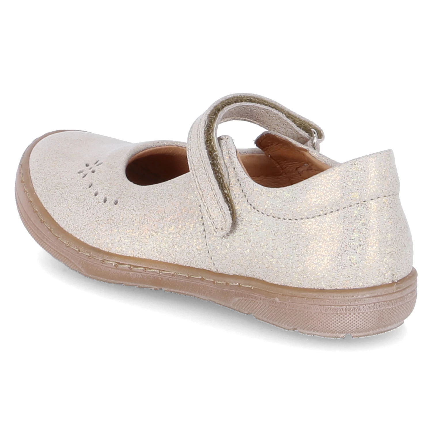 Froddo Mädchen Ballerinas MARY F Gold Glattleder – gepolsterter Einstieg – Riemen mit Klettverschluss – schimmernde Oberfläche – verstärkter Fersen- und Zehenbereich – gepolstertes WechselfuĂźbett aus Leder – dezentes Stanzmuster – flexible Laufsohle mit rutschhemmenden Eigenschaften
