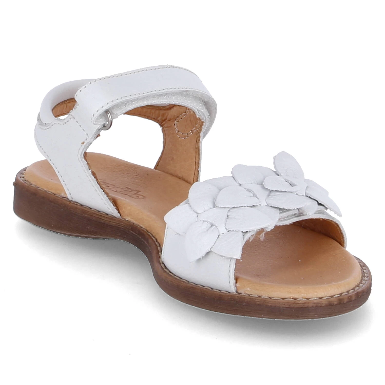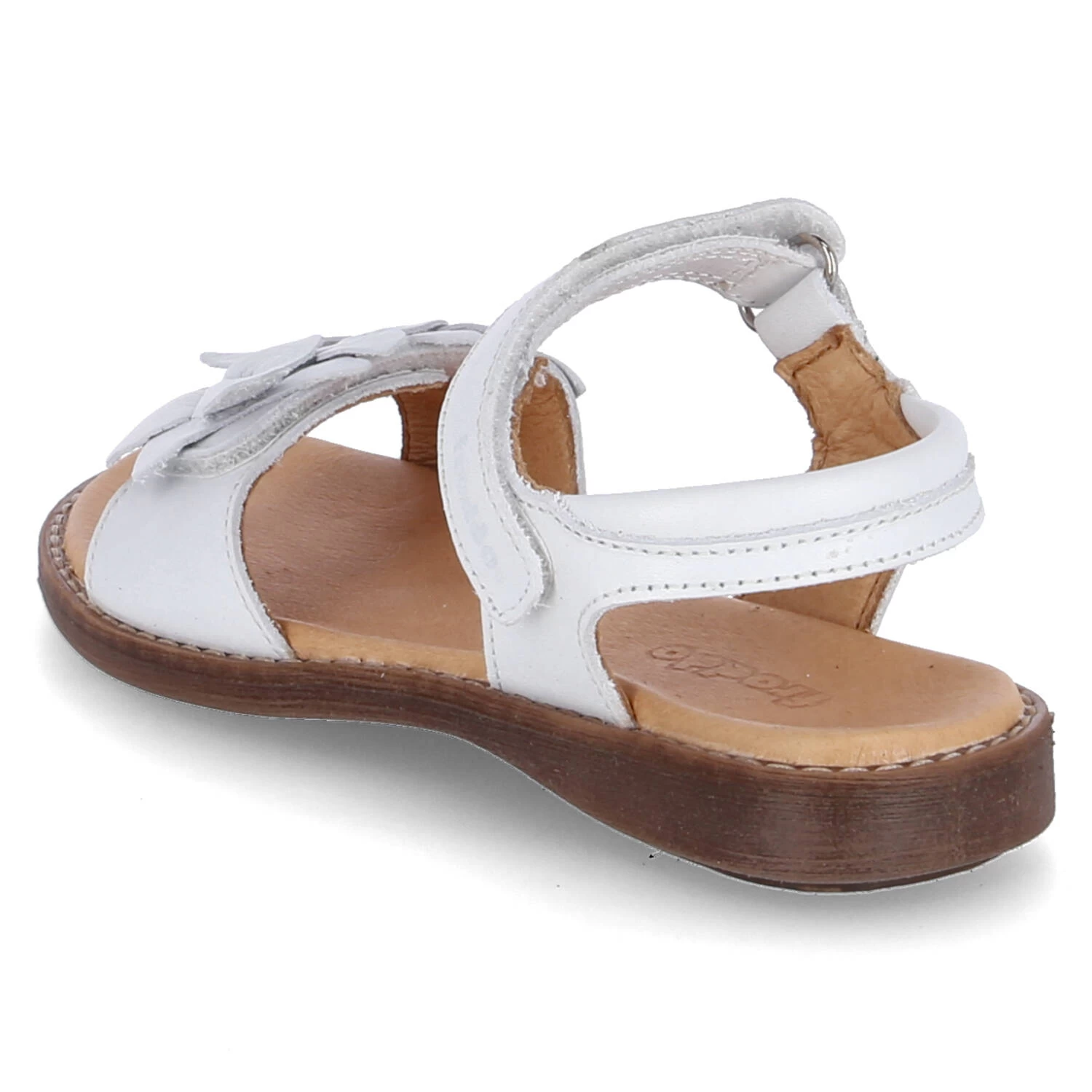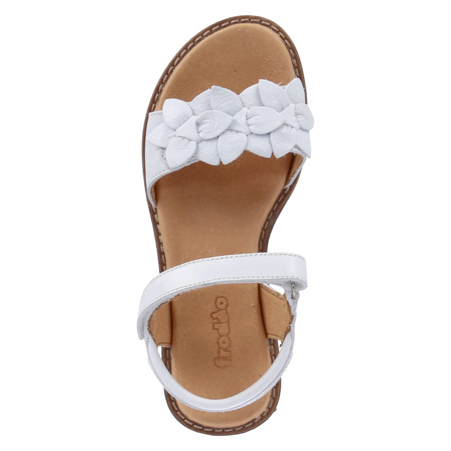 Froddo Mädchen Sandalen LORE FLOWERS WeiĂź Glattleder – leicht gepolsterter Fersenriemen – zwei Riemen mit Klettverschluss (vorderer mit Blumenapplikation) – dämpfende Lederdecksohle – flexible Laufsohle mit rutschhemmenden Eigenschaften