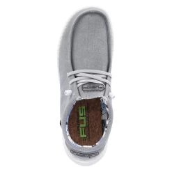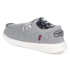 Fusion Herren Slipper/ Halbschuhe Grau Textil – geringes Gewicht – Elastikband in SchnĂĽroptik – gepolsterter Einstiegsbereich – verstärkte Ferse – Ziernähte – seitliche LĂĽftungsnieten – herausnehmbare Decksohle – flexible, rutschhemmende Laufsohle mit leichtem Profil – waschbar