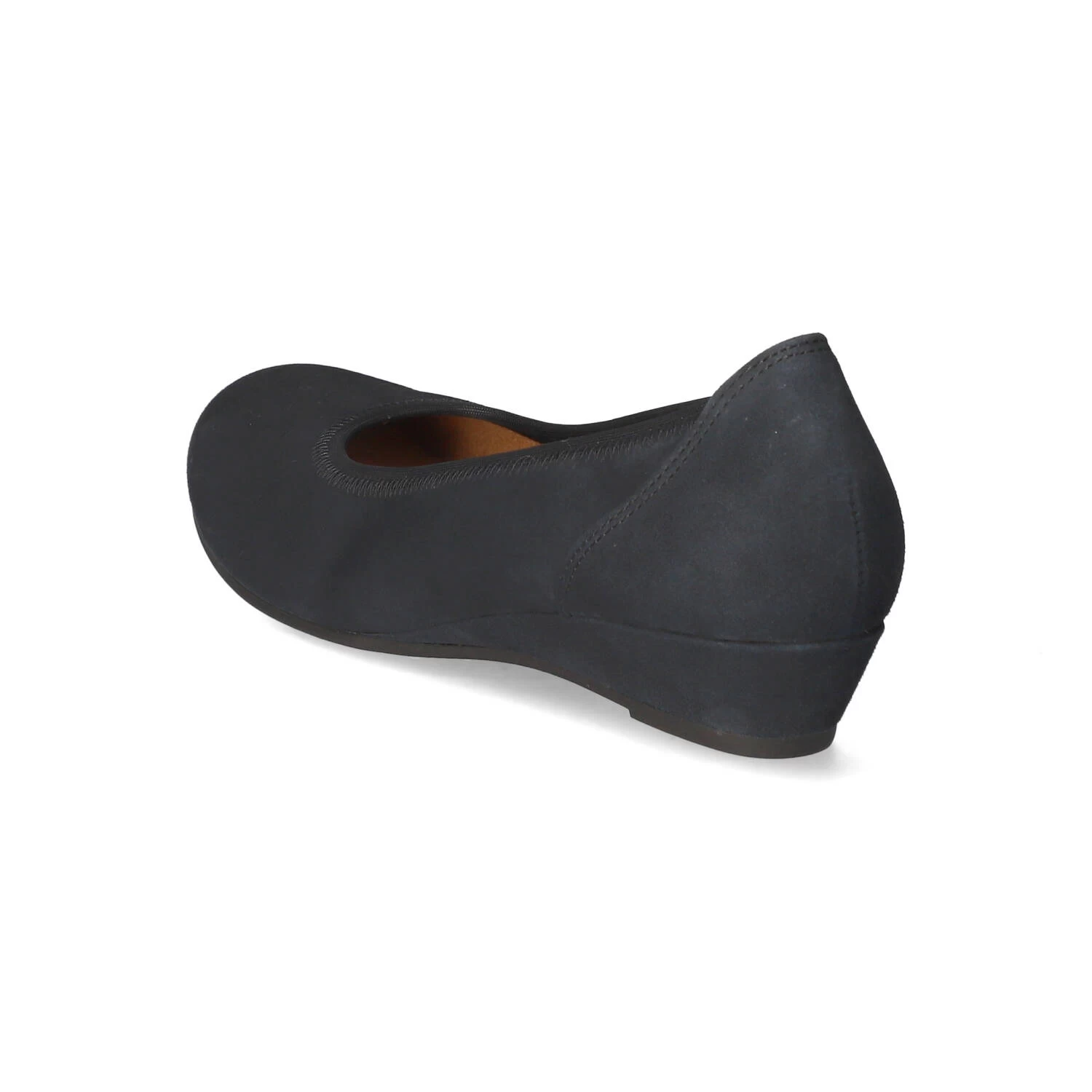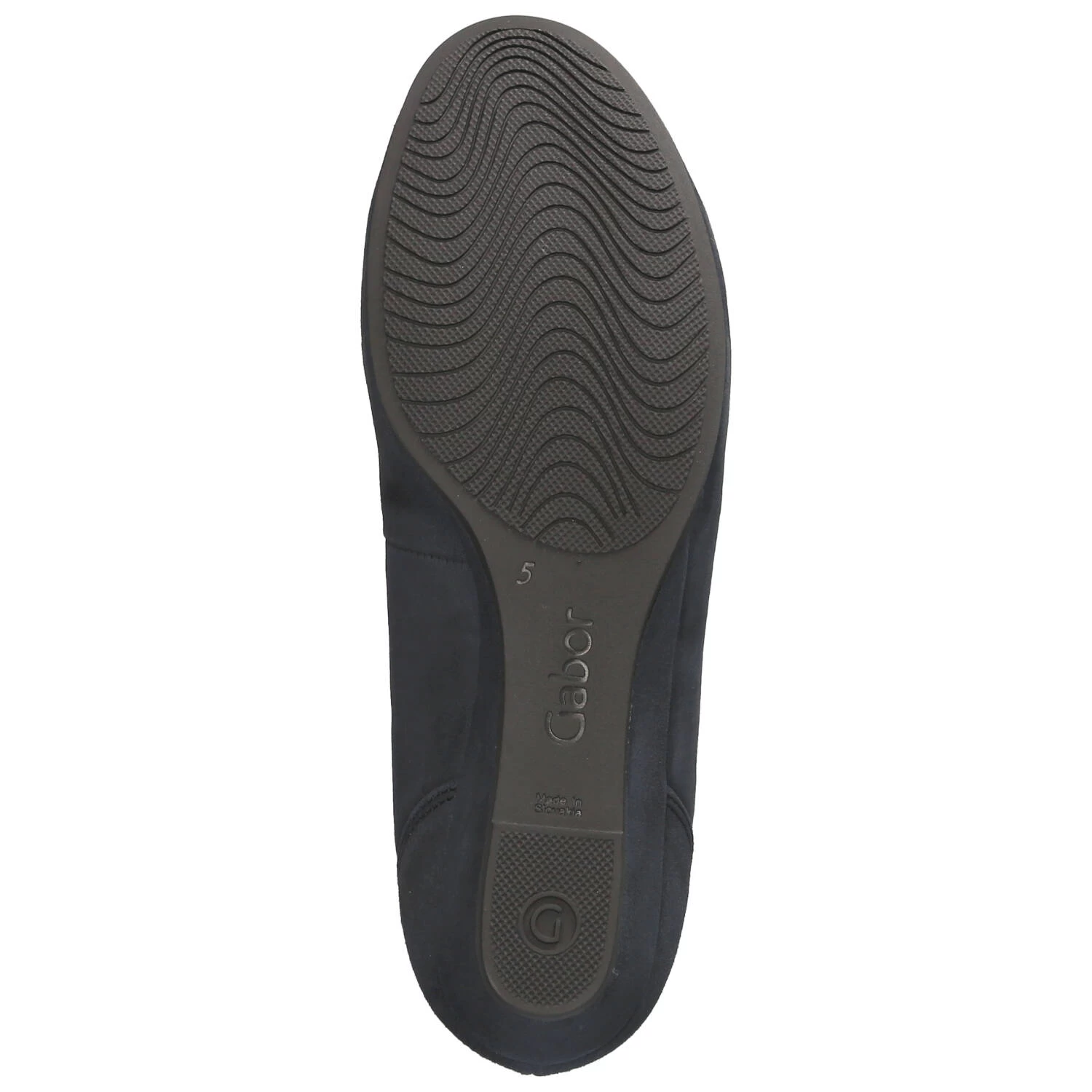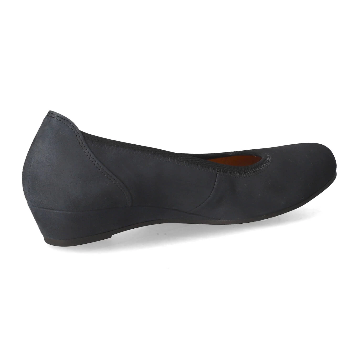 Gabor Damen Ballerinas/ Keil-Ballerinas Blau Rauleder – modische Ziernähte – verstärkte Ferse – angenehmes Leder-Textilfutter – gepolsterte Lederdecksohle – flexible, rutschhemmende Laufsohle mit leichtem Profil – stabiler Keilabsatz