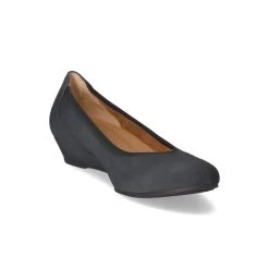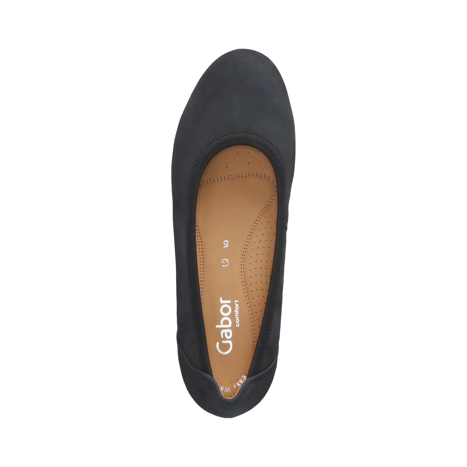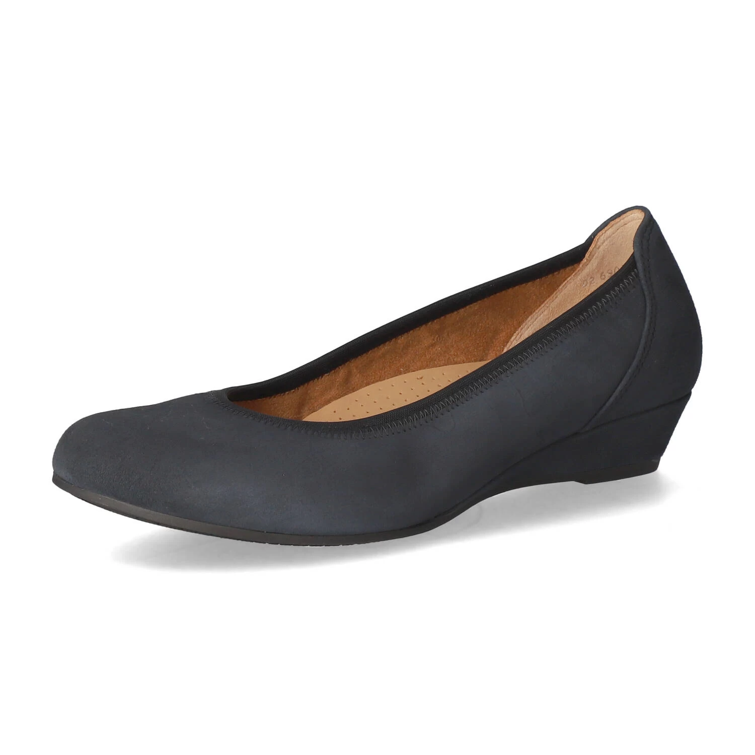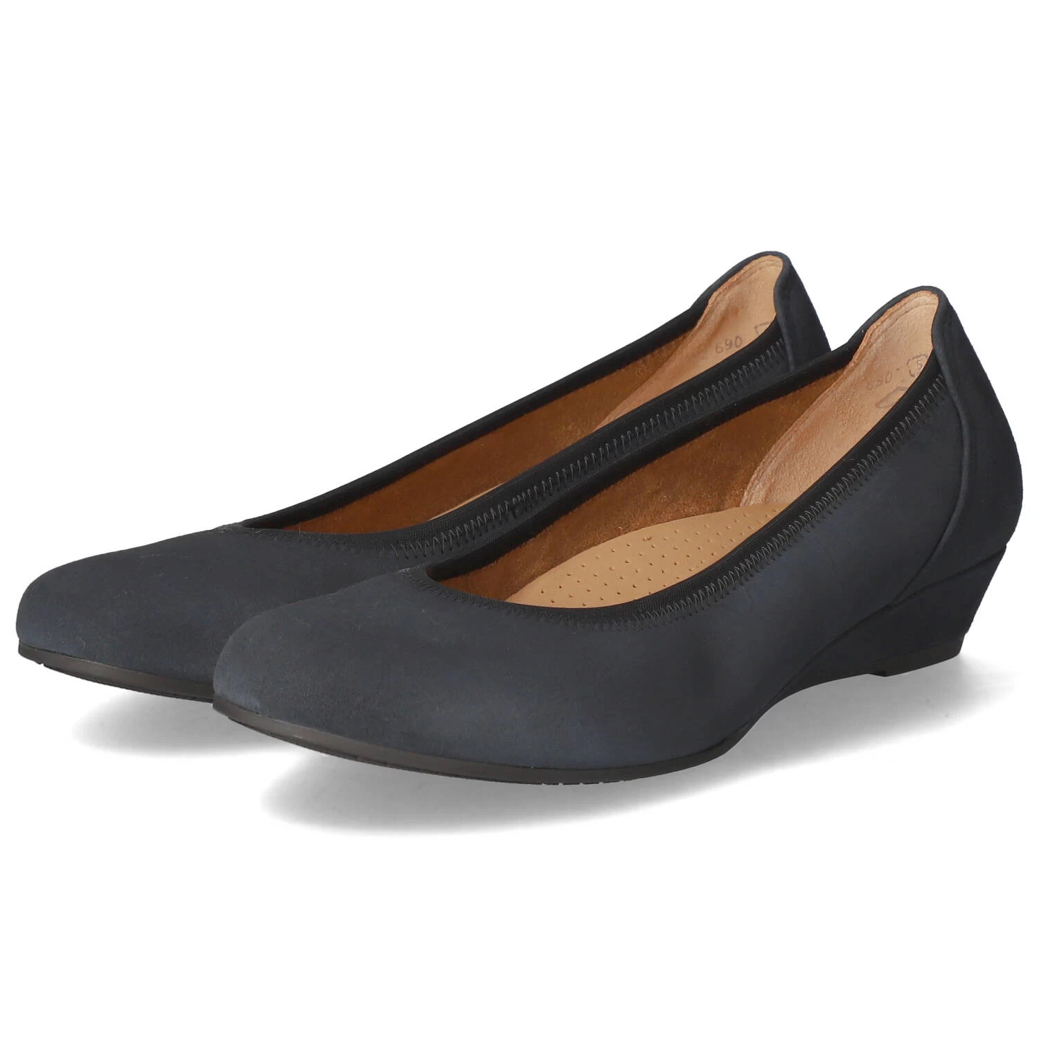 Gabor Damen Ballerinas/ Keil-Ballerinas Blau Rauleder – modische Ziernähte – verstärkte Ferse – angenehmes Leder-Textilfutter – gepolsterte Lederdecksohle – flexible, rutschhemmende Laufsohle mit leichtem Profil – stabiler Keilabsatz