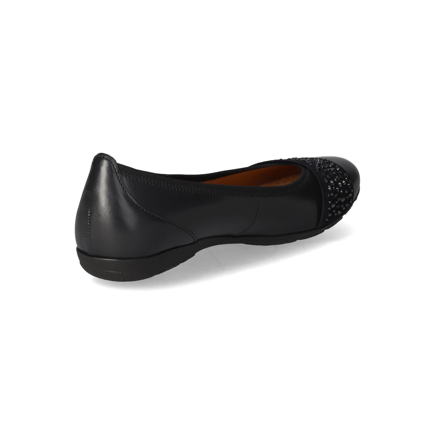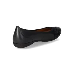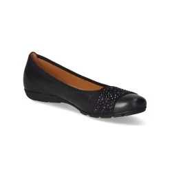 Gabor Damen Ballerinas Blau Leder – glitzernde Ziersteine – verstärkte Ferse – leichtes Textilfutter – gepolsterte Lederdecksohle – flexible, rutschhemmende Laufsohle mit leichtem Profil – Farbe kann je nach Beleuchtung schwarz wirken