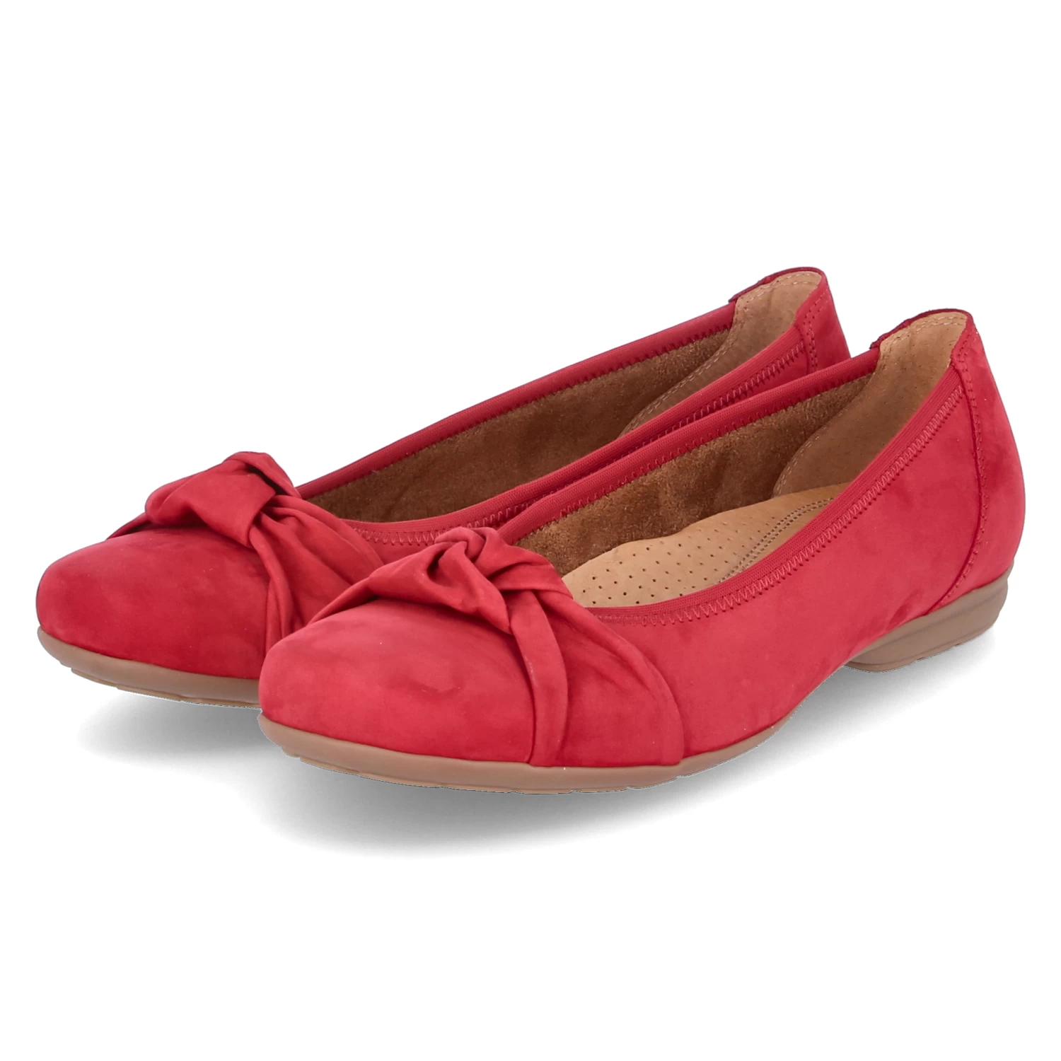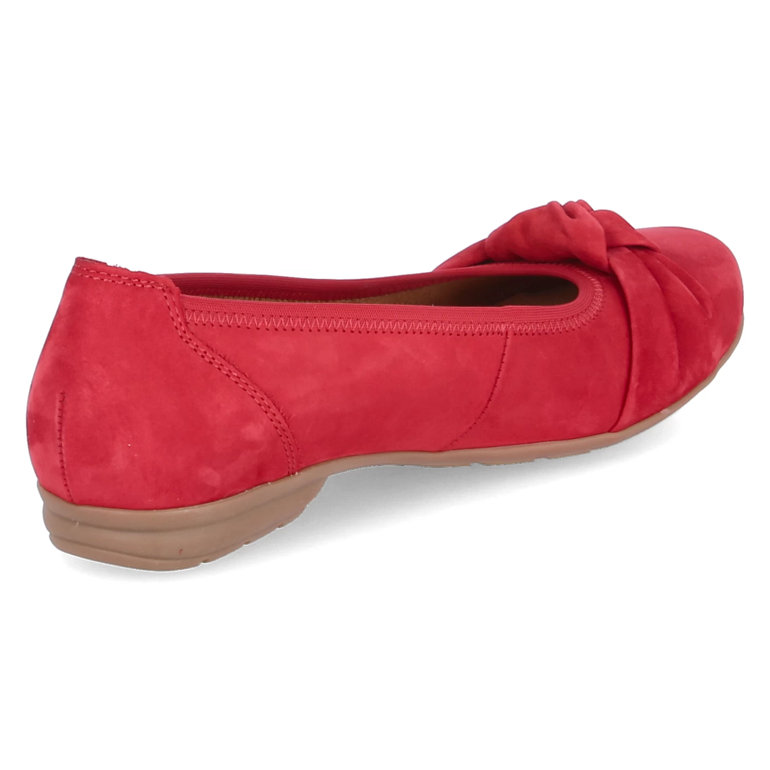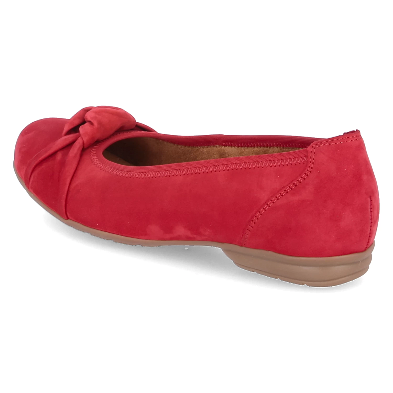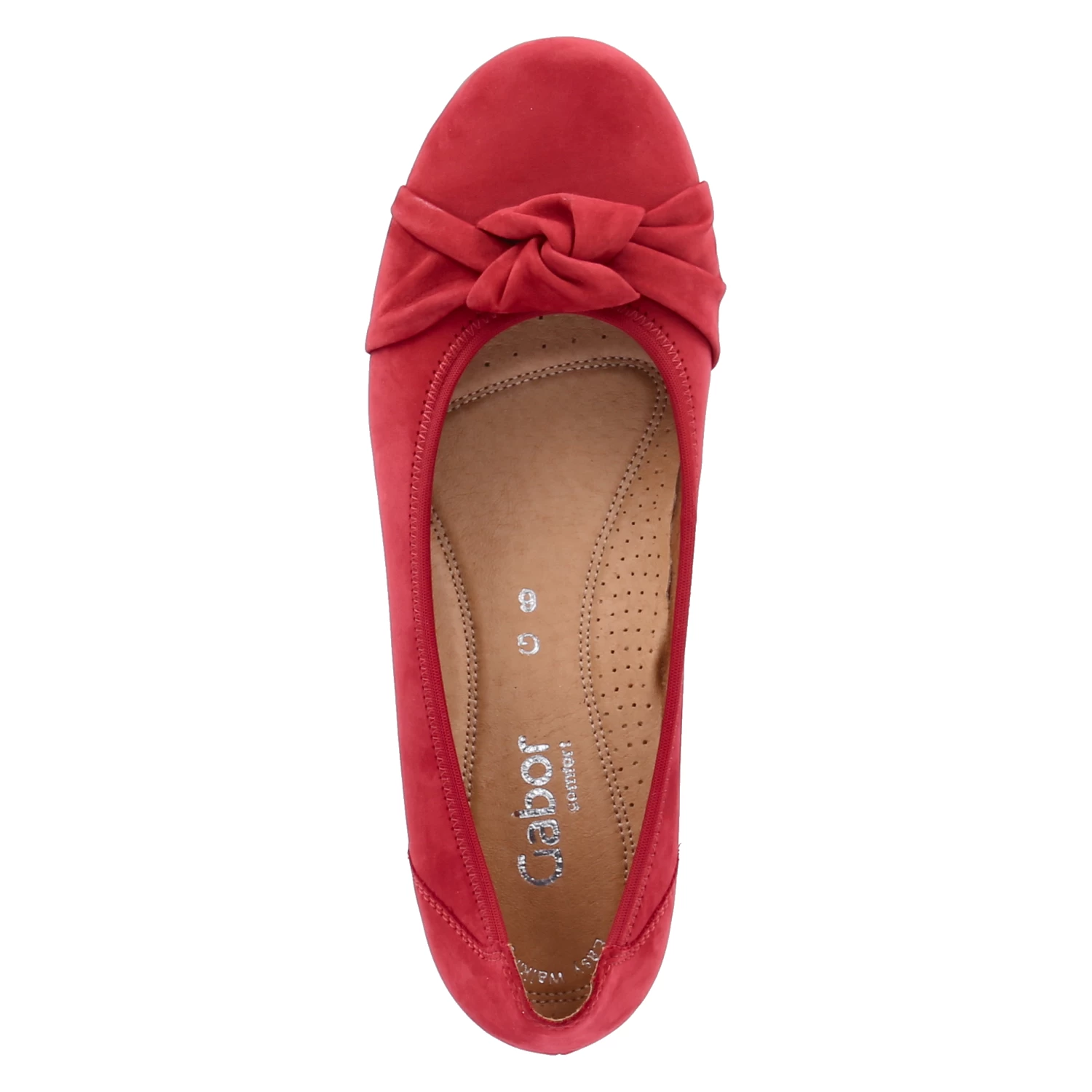 Gabor Damen Ballerinas Rot Rauleder – modisches Knotenelement – verstärkte Ferse – leichtes Textilfutter – gepolsterte Lederdecksohle – flexible, rutschhemmende Laufsohle mit leichtem Profil