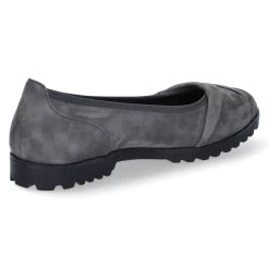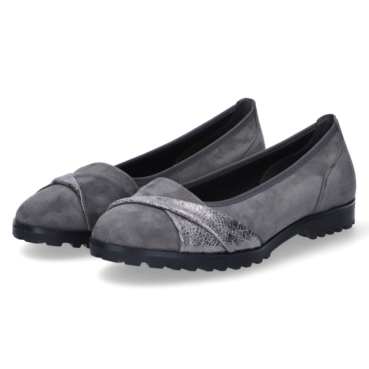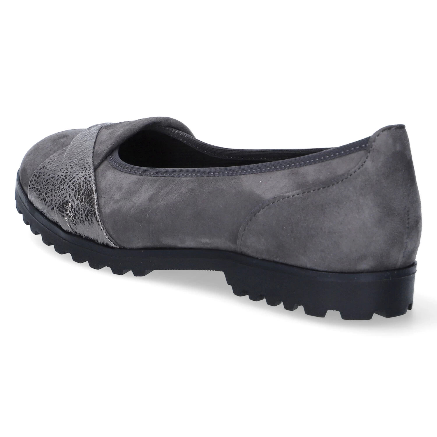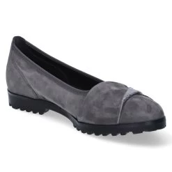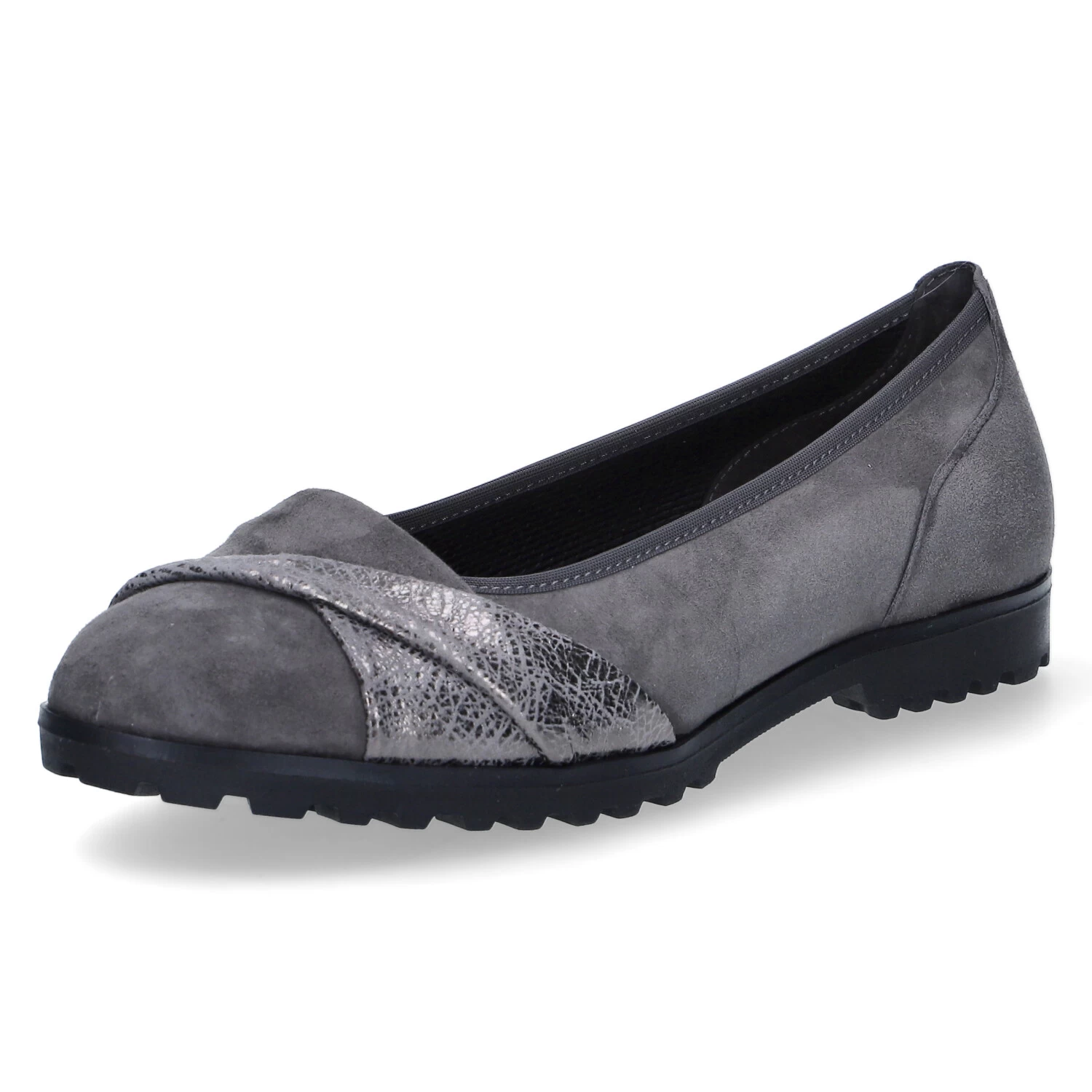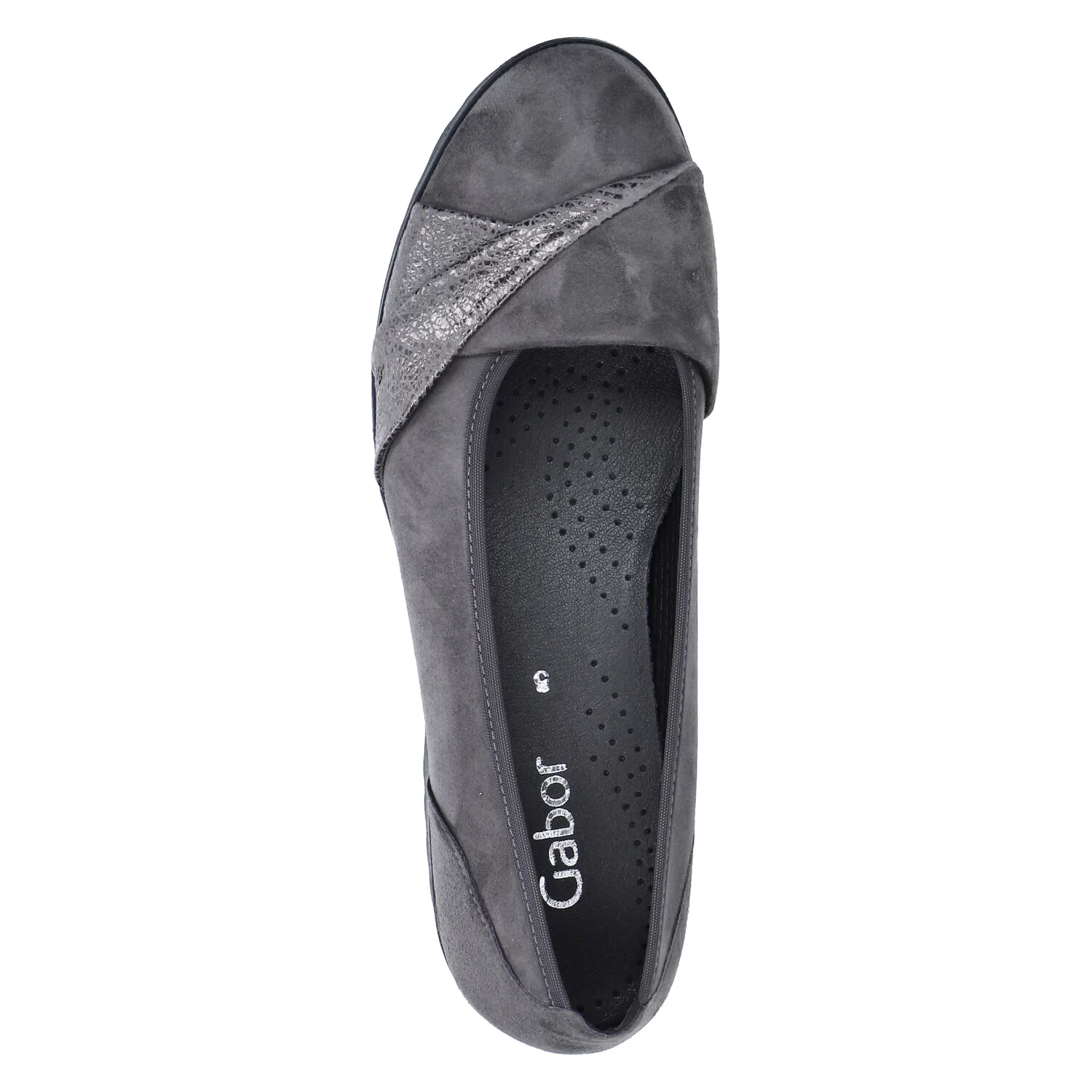 Gabor Damen Ballerinas Grau Rauleder – schimmernde Akzente – verstärkte Ferse – gepolsterte Decksohle – flexible, rutschhemmende Laufsohle mit Profil