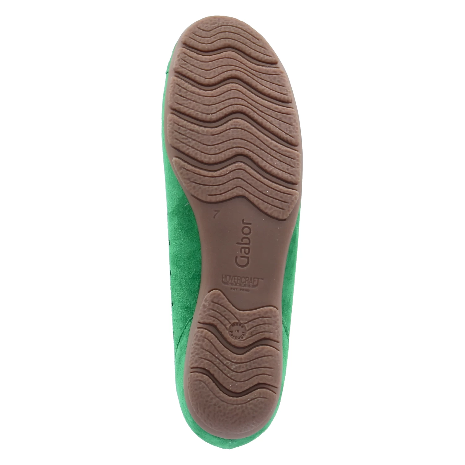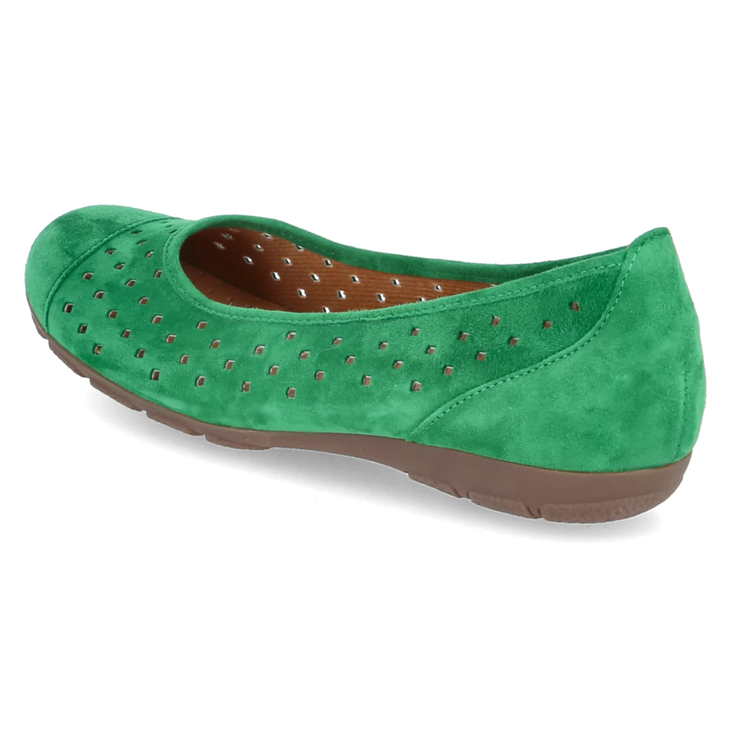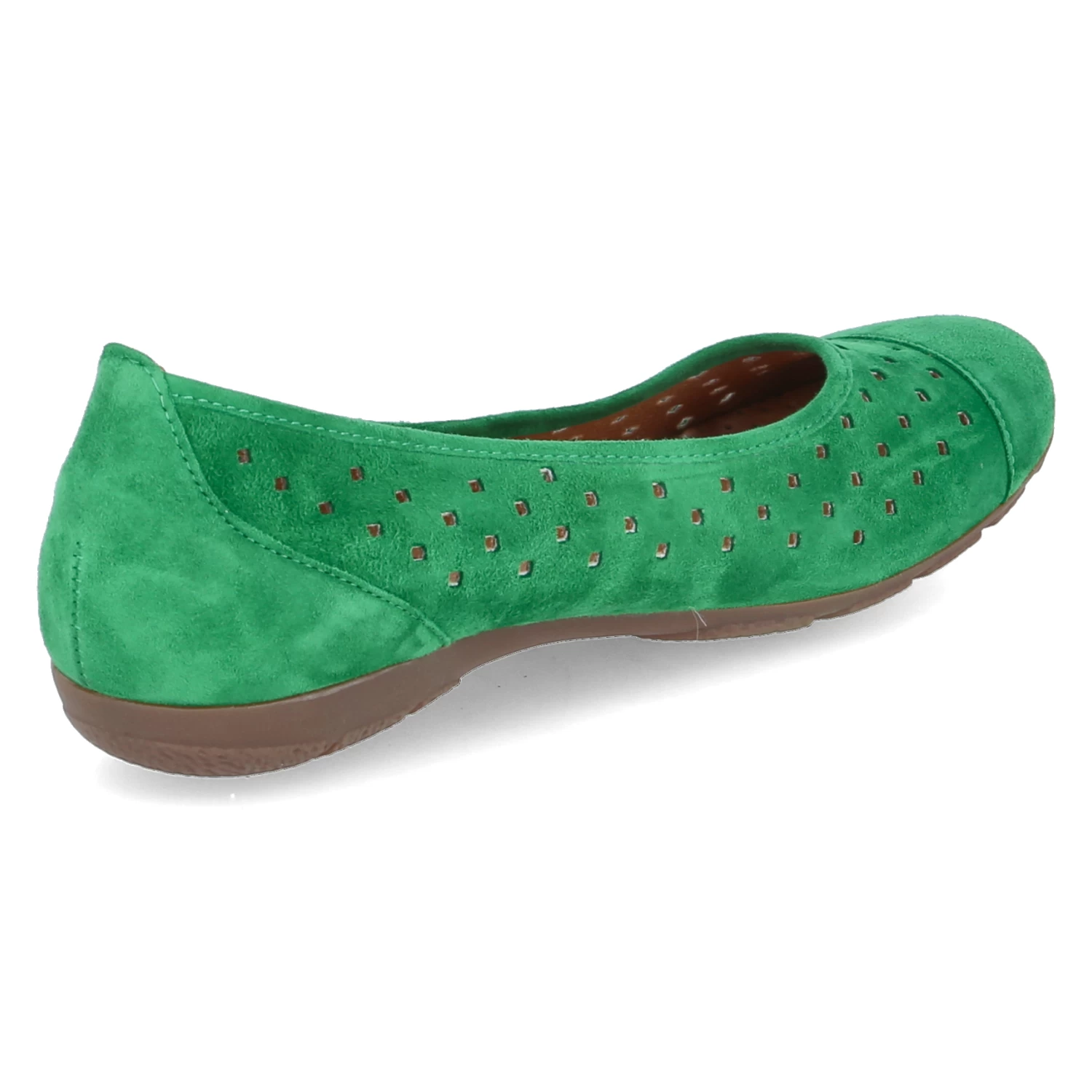 Gabor Damen Ballerinas Grün Rauleder – moderner Lochstanz – verstärkter Zehen- und Fersenbereich – leichtes Leder-Textilfutter – gepolsterte Lederdecksohle – flexible, rutschhemmende Laufsohle mit leichtem Profil