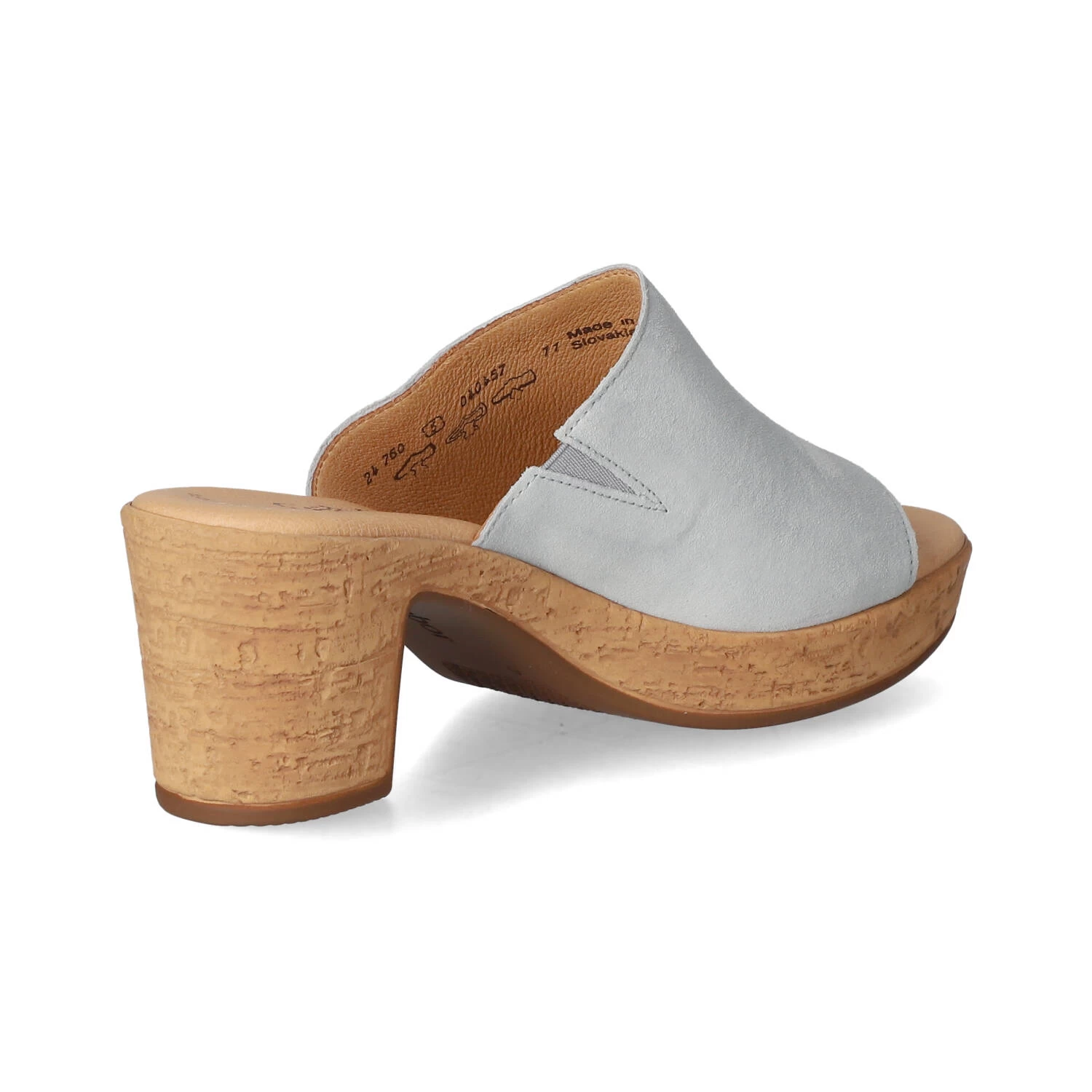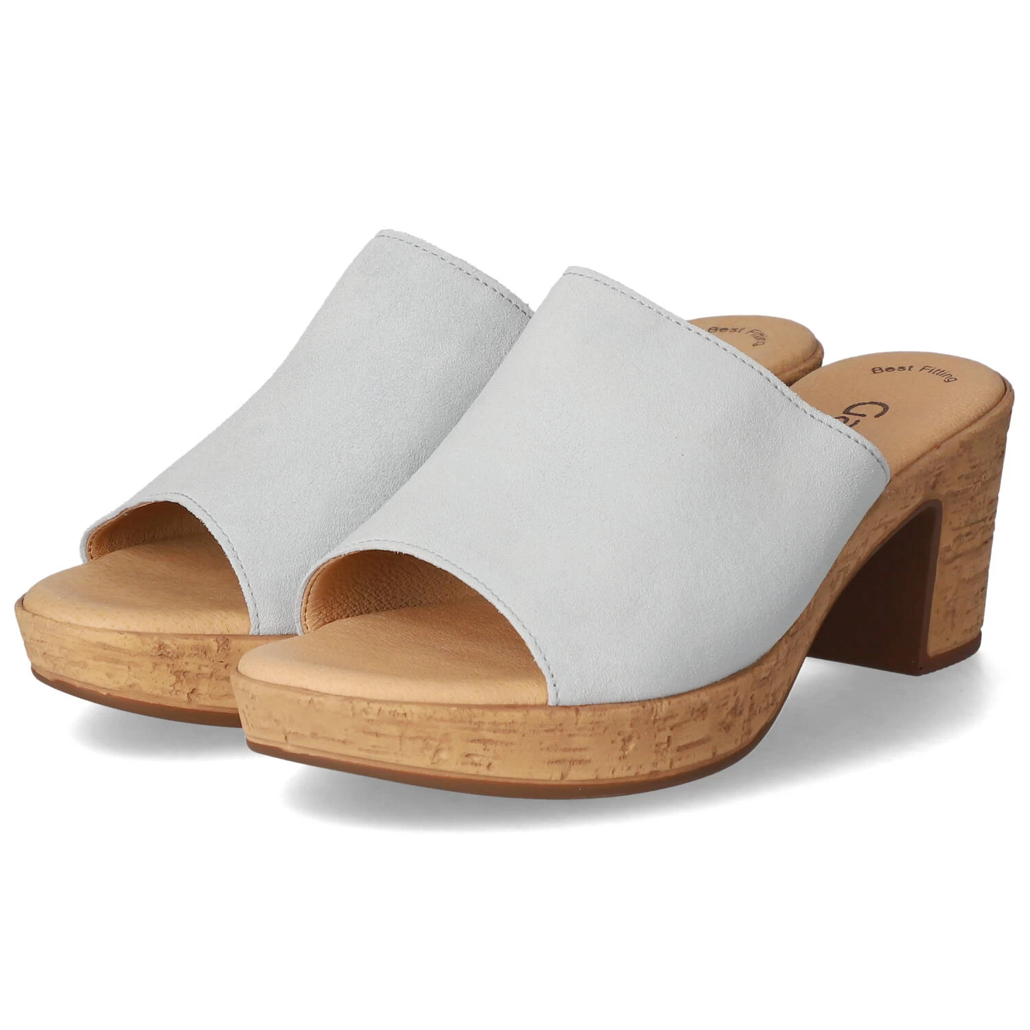 Gabor Damen Pantoletten/ Clogs Blau Rauleder – seitliche Elastikeinsätze – gepolsterte Lederdecksohle – robuste Laufsohle mit leichtem Profil – stabiler Blockabsatz