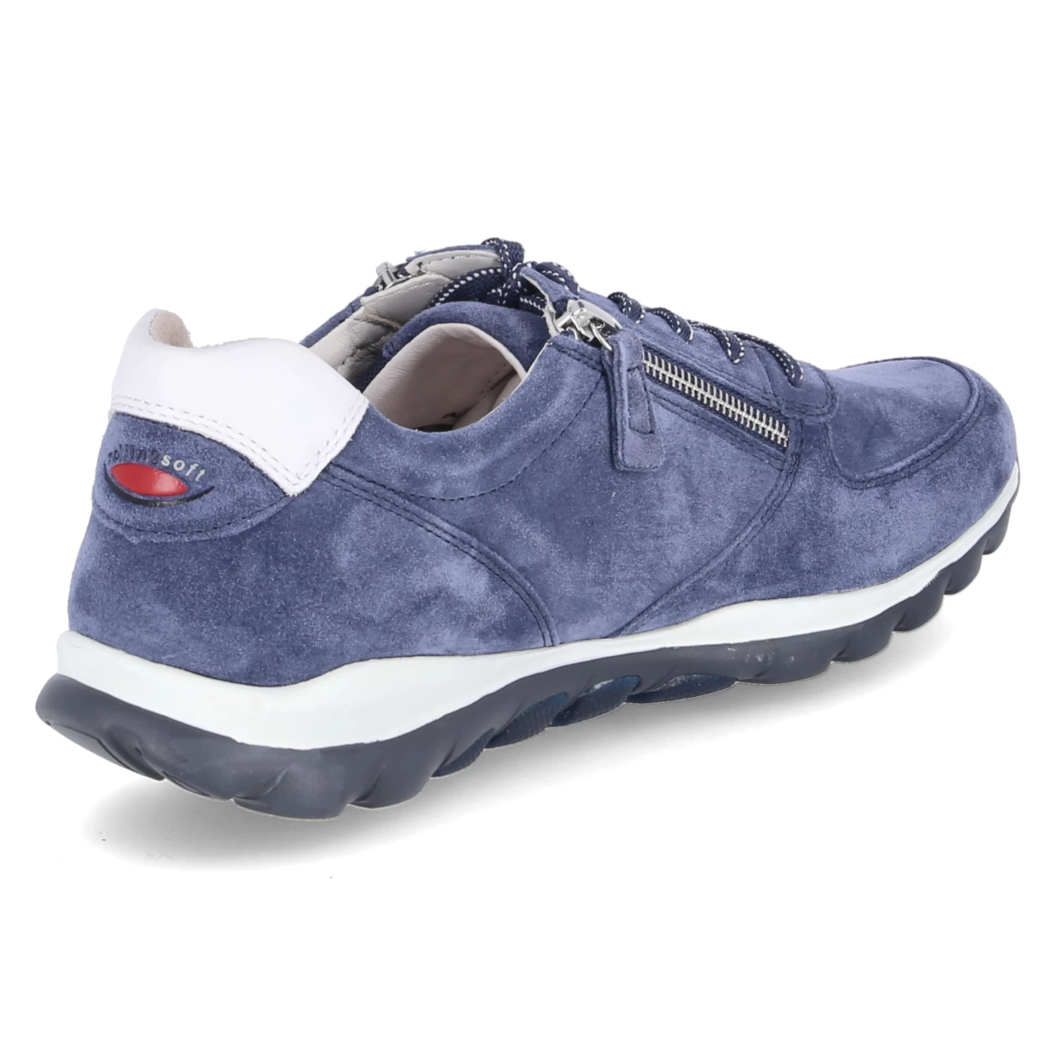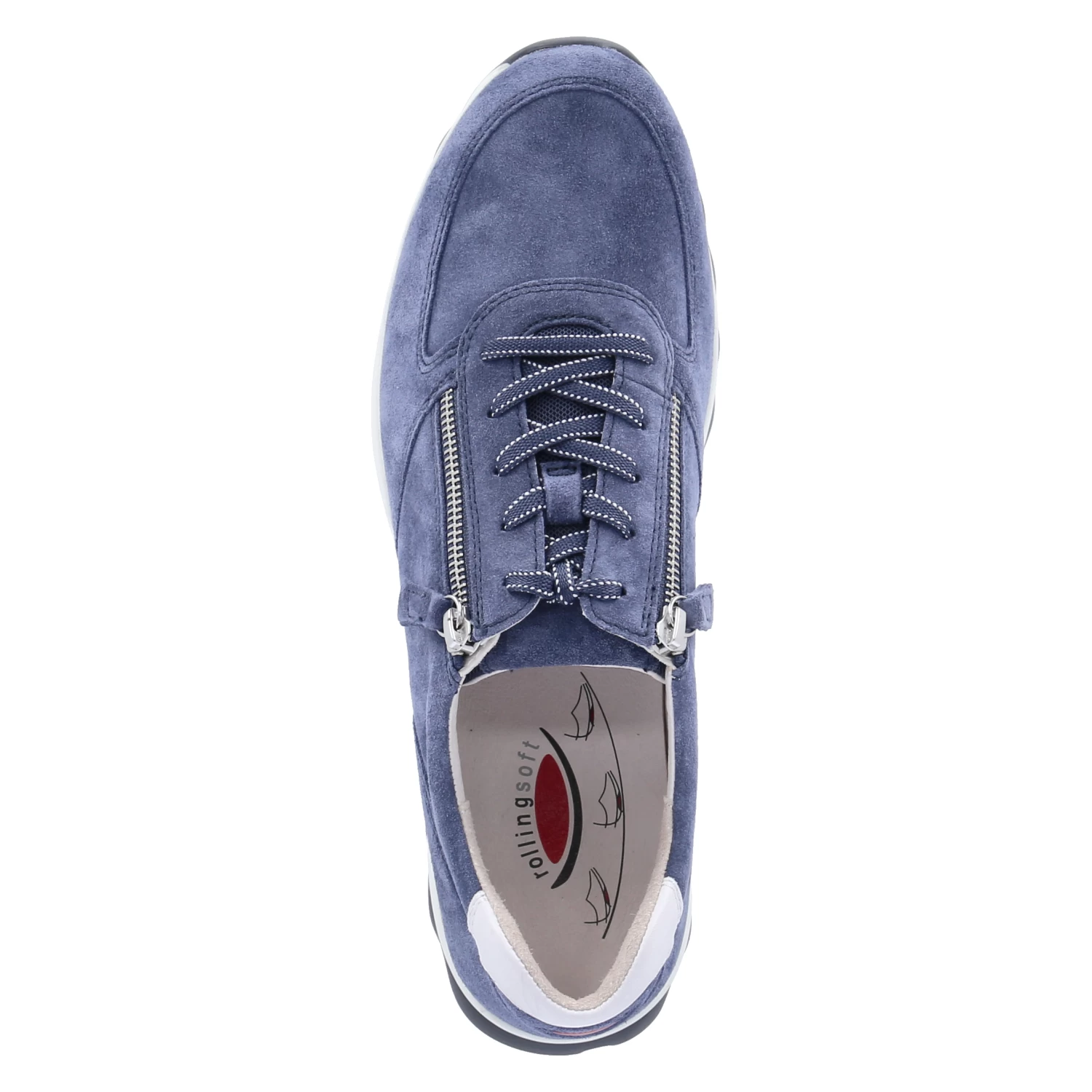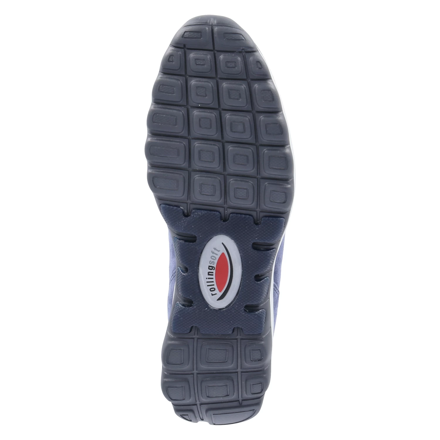 Rollingsoft Damen SchnĂĽrschuhe/ Halbschuhe Blau Rauleder-Textil-Mix – sportliche Zierstreifen – dezente Markendetails – SchnĂĽrsenkel – zwei ReiĂźverschlĂĽsse – verstärkter Zehen- und Fersenbereich – gepolsterter Einstieg – gepolsterte Wechseldecksohle – flexible, rutschhemmende Profilsohle