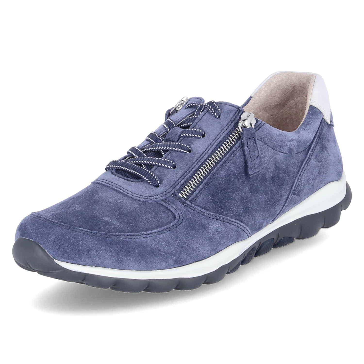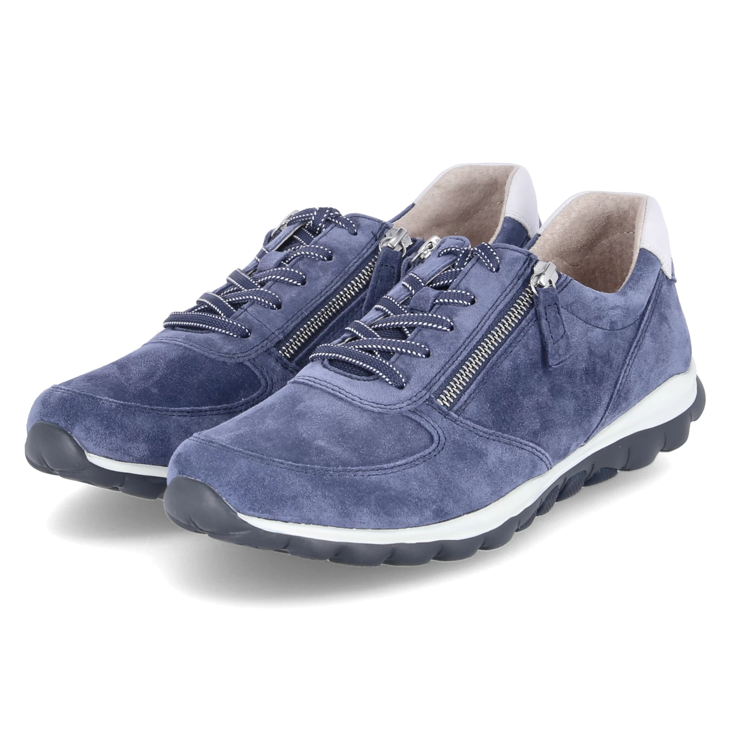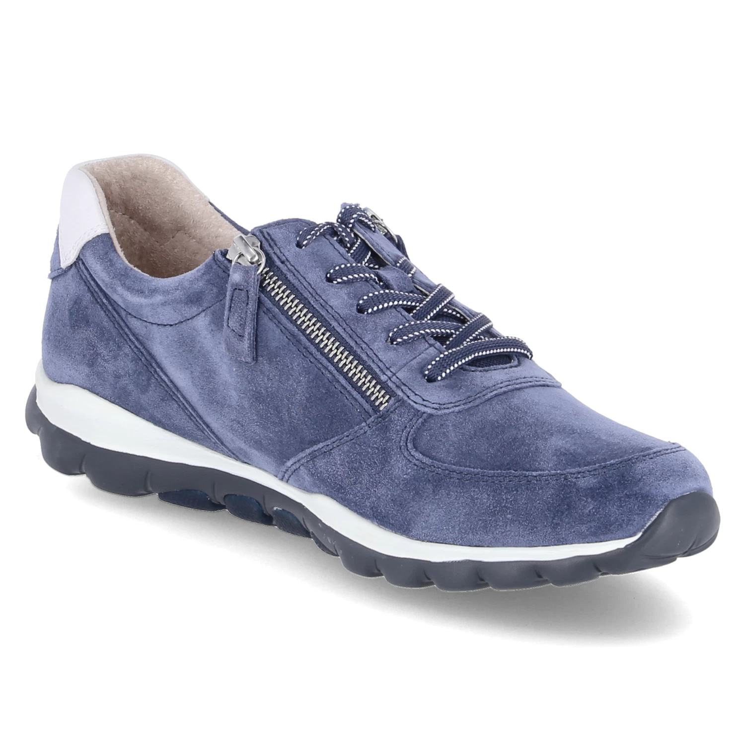 Rollingsoft Damen SchnĂĽrschuhe/ Halbschuhe Blau Rauleder-Textil-Mix – sportliche Zierstreifen – dezente Markendetails – SchnĂĽrsenkel – zwei ReiĂźverschlĂĽsse – verstärkter Zehen- und Fersenbereich – gepolsterter Einstieg – gepolsterte Wechseldecksohle – flexible, rutschhemmende Profilsohle