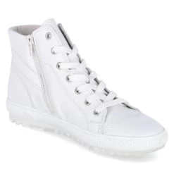 Gabor Damen High Sneaker WeiĂ Glattleder – sportliches Design – SchnĂŒrung und ReiĂverschluss – verstĂ€rkte Fersenbereich – dezent gepolsterter Einstieg – leichtes Textilfutter – gepolsterte Wechseldecksohle – flexible, rutschhemmende Profilsohle
