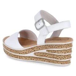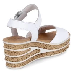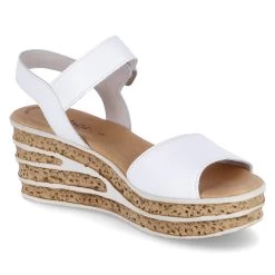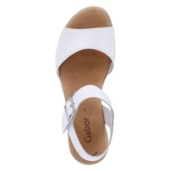 Gabor Damen Sandaletten/ Keilsandaletten/ Wedges WeiĂź Glattleder – Klettverschluss mit Zierschnalle – angenehmes Lederfutter – gepolsterte Lederdecksohle – robuste, rutschhemmende Laufsohle – stabiler Keilabsatz mit kleinem Plateau in Korkoptik